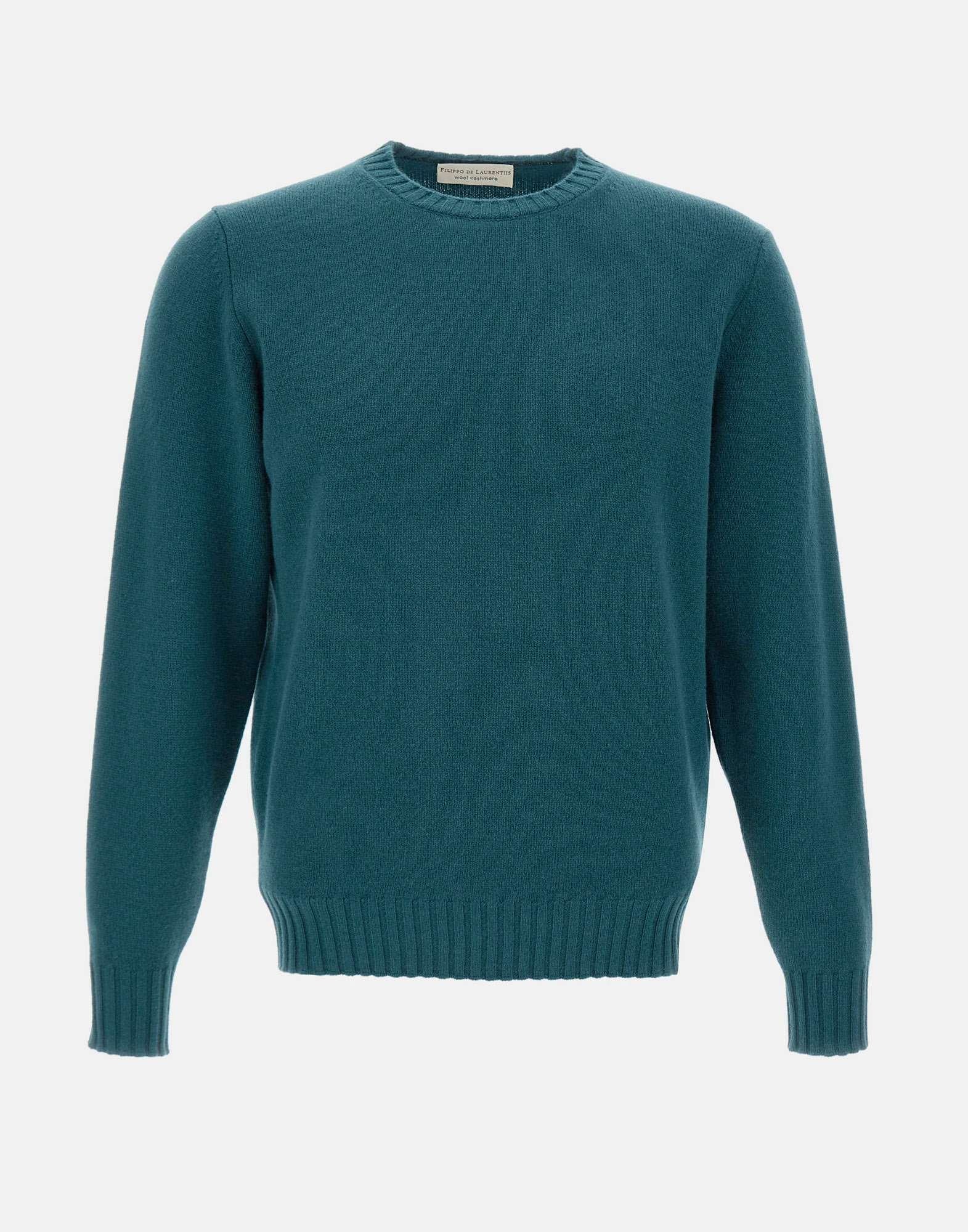 Maglia uomo Filippo De Laurentiis in pregiato misto lana e cashmere, colore ottanio. Presenta girocollo classico, maniche lunghe e orli a costine che valorizzano la vestibilità regular. Un capo Made in Italy dal fascino raffinato, ideale per look casual chic e stratificazioni eleganti.