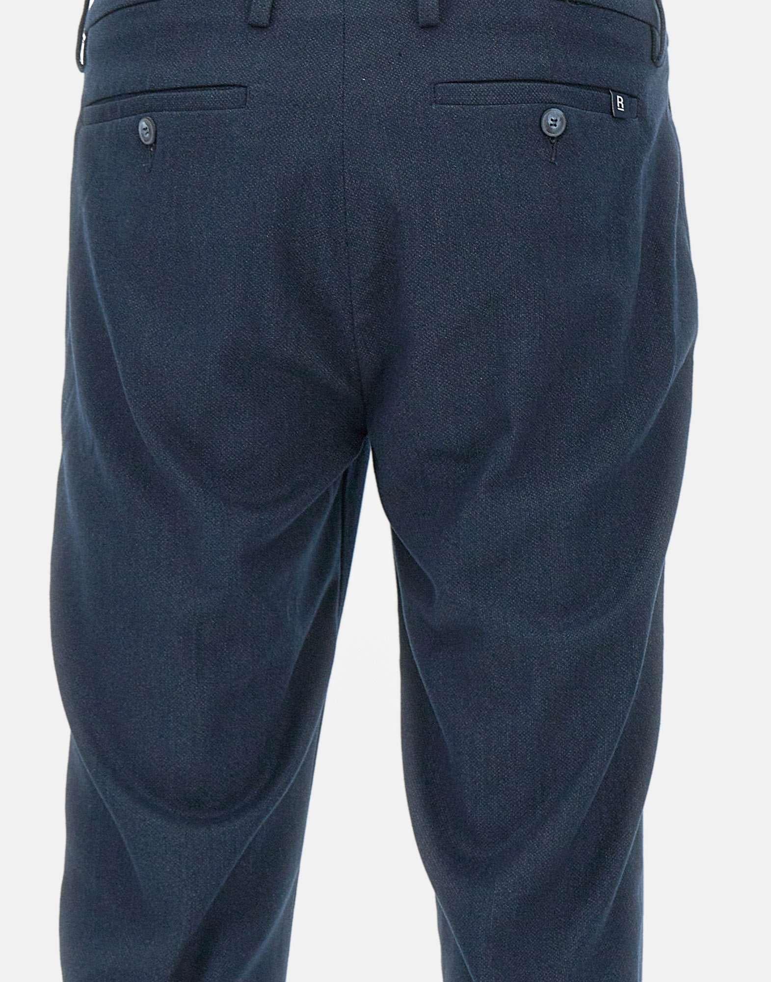 Pantaloni Re-Hash "New mucha" uomo, blu, tessuto misto cotone stretch su trama operata, extra comofrt al tatto e all'indosso, chiusura con bottone e zip, tasche laterali a filo, mini taschino frontale a destra, tasche posteriori con bottone, fondo 17cm e risvolto 2,5cm, slim fit, made in Italy