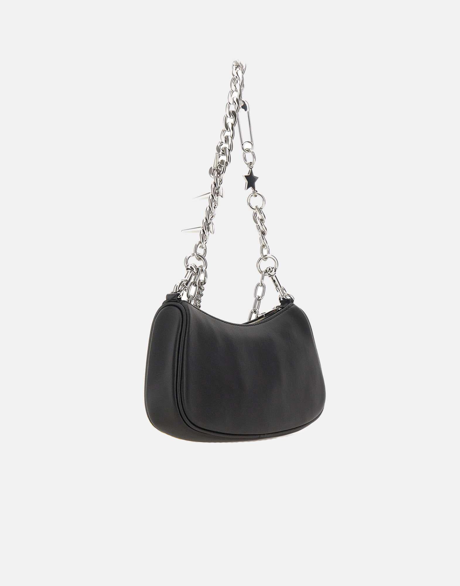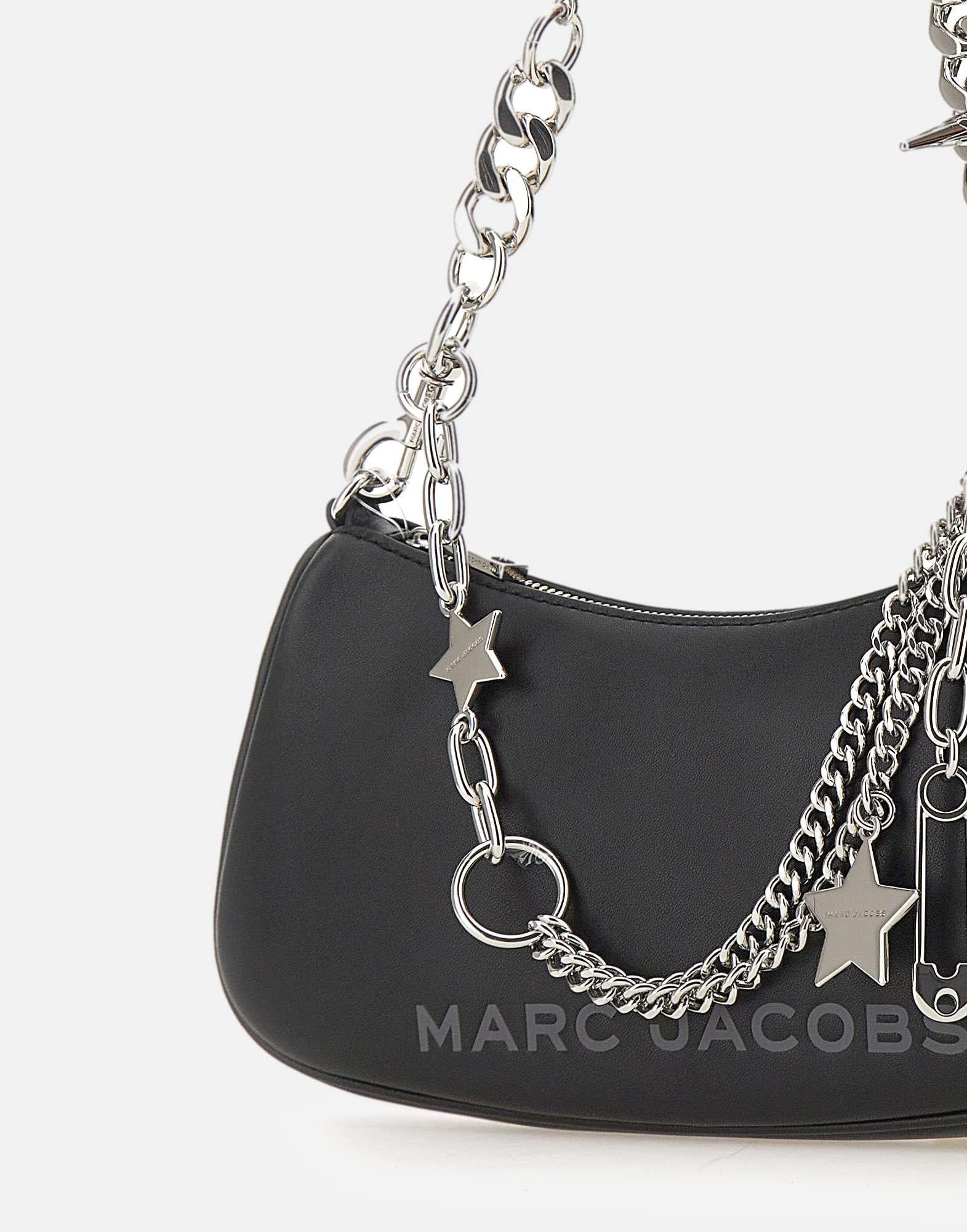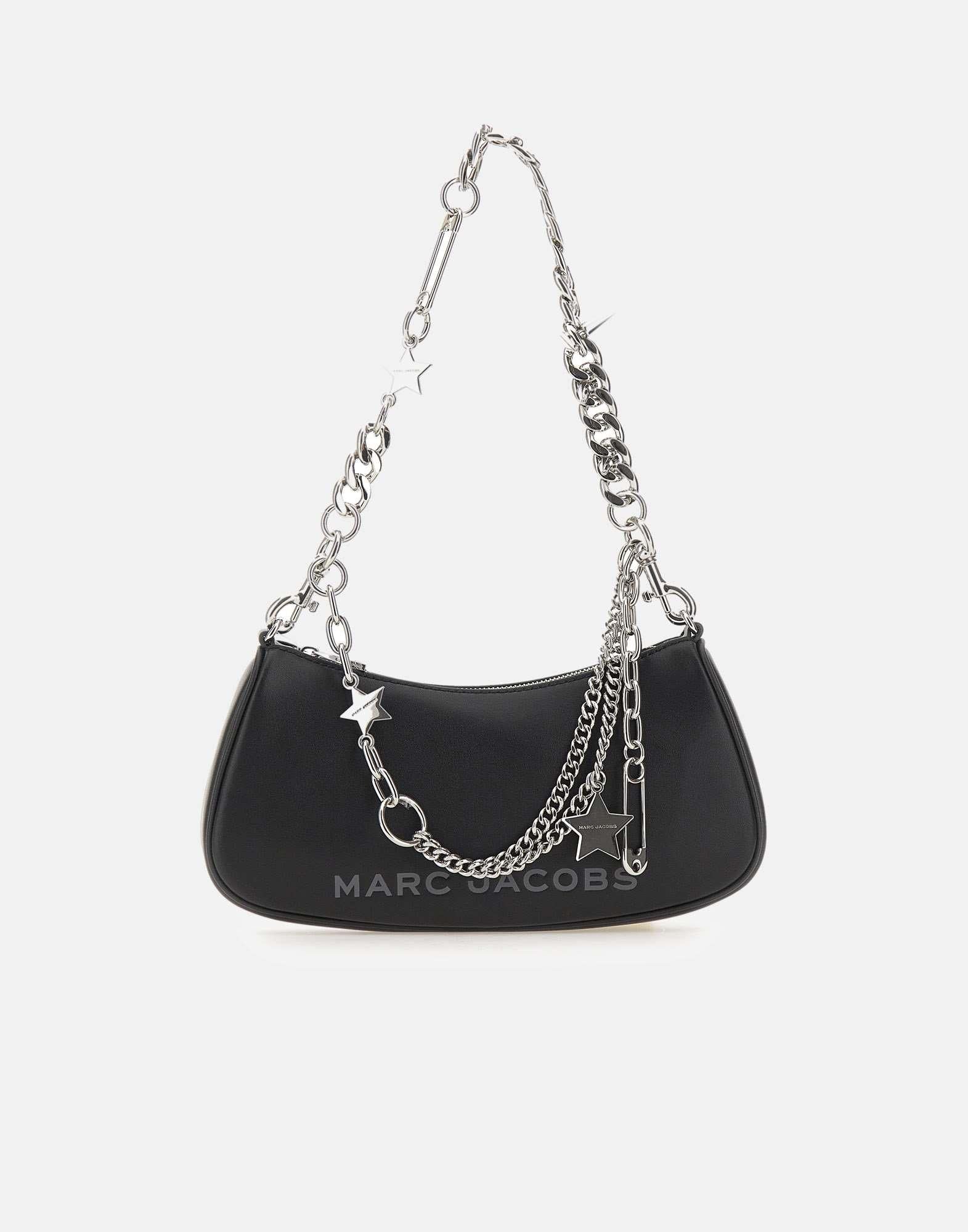 Borsa Marc Jacobs "The Star Charm" in pelle liscia nera, dal design compatto e funzionale. Il logo goffrato frontale e la metalleria argento lucido donano un tocco sofisticato. Dotata di chiusura superiore con zip, tracolla a catena multistrato con charm e tracolla in pelle removibile per un doppio styling. Interno con tasca a fessura per la massima praticità.