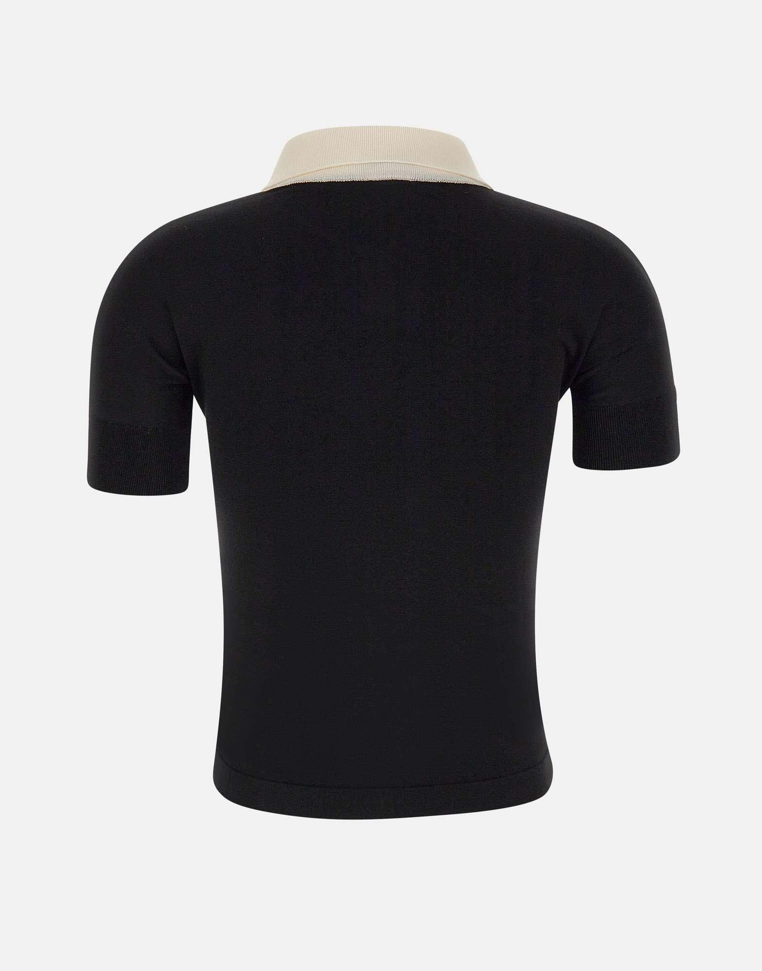 Polo da donna Vaquera colore nero con design cropped e costruzione a micro costine, pensata per un look audace e contemporaneo. Il colletto a contrasto bianco aggiunge un tocco grafico dispirazione rétro, mentre la stampa logo frontale in bianco valorizza lestetica con un segno distintivo e diretto. La vestibilità aderente e la lunghezza ridotta la rendono perfetta per abbinamenti a vita alta, tra ispirazione streetwear e attitudine ribelle.