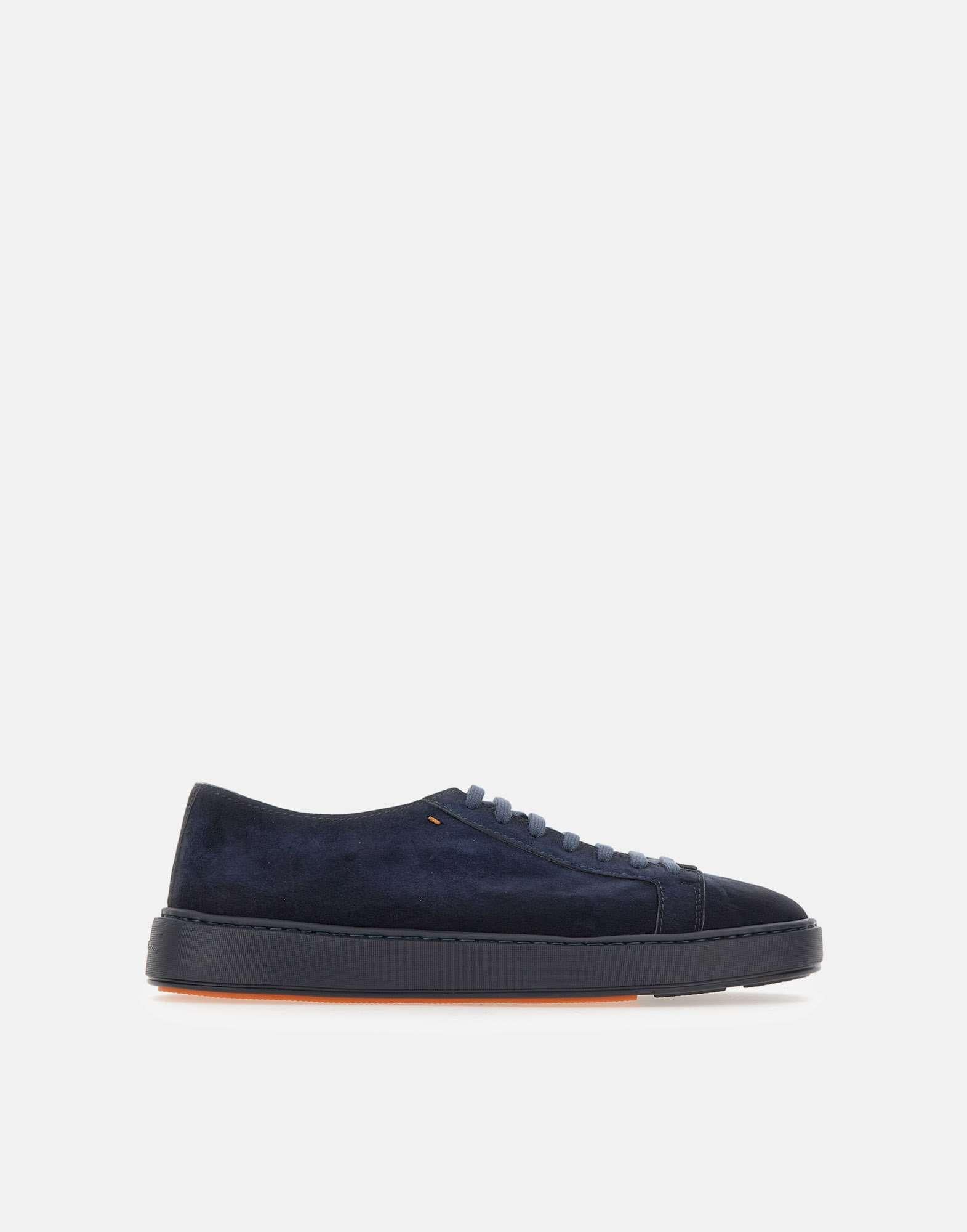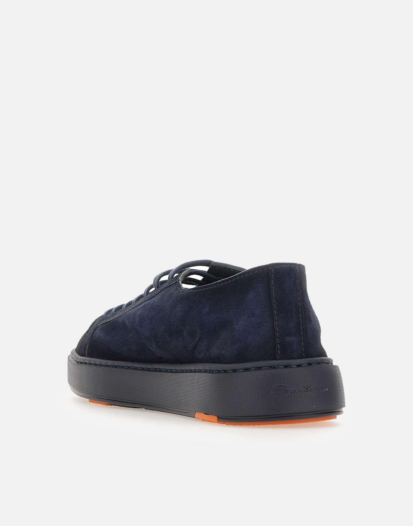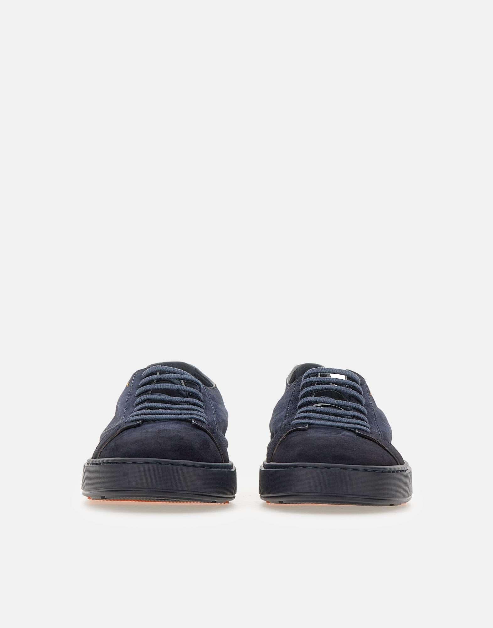 Sneakers Santoni "Ford" da uomo, realizzate in pelle scamosciata blu notte e trattate con termoformatura per un look sofisticato e durevole. Presentano lacci in cotone piatti tono su tono, battistrada arancio logato, punta tonda e impunture a vista. La suola in gomma da 3,5 cm garantisce comfort e stabilità. Dotate di custodia singola in tessuto per ciascuna scarpa. Calzata regolare. Made in Italy. Taglia UK 10 corrisponde a EU/IT 45,5.Converti la tua taglia con la tabella SANTONI CALZATURE UOMO UK. Dotate di Sistema NCF Icon: seguire le istruzioni allegate tramite scheda dedicata.