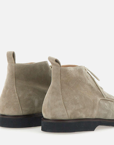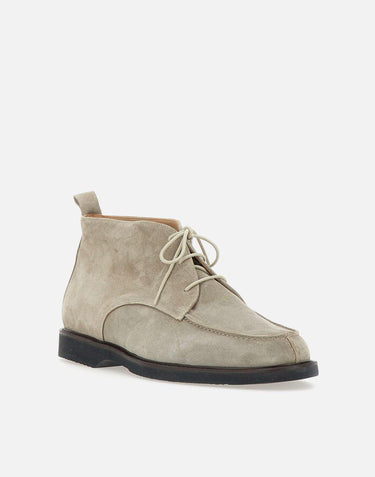 Stringate uomo Duca Degli Abruzzi "Ascanio" ,ghiaccio, in pelle scamosciata super morbida, chiusura con lacci, cuciture artigianali a vista, soletta logata, tirante sul retro per favorire la calzata, suola in gomma, tacco 2cm, made in Italy. Calzata regolare. Custodia inclusa.