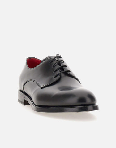 Stringate uomo Barrett "Derby" in pelle di vitello liscia extrasoft, colore nero, costruzione Blake, fodera in capra, suola in cuoio,tacco 1,5cm, calzata regolare. Custodia in tessuto.