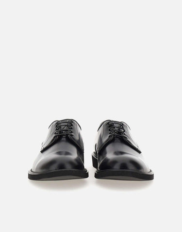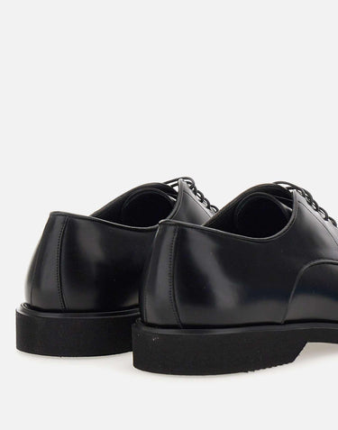 Stringate "VT03Valent Windsor" uomo Duca Degli Abruzzi in pelle spazzolata, colore nero, chiusura con lacci in tinta, impunture artigianali a vista, soletta logata in morbidissima pelle, suola in gomma ultra resistente e tono su tono, tacco 2,5cm, made in Italy. Calzata regolare