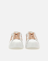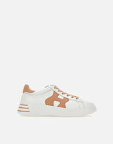 Sneakers Hogan "Rebel 564" donna, colore bianco con dettagli beige nocciola, tomaia in nappa, H laterale ondulata, soletta in memory foam 5 mm, suola extralight con scanalature in gomma altezza totale 5 cm, lacci piatti, logo impresso sulla linguetta, punta tonda.Custodia in tessuto inclusa, calzata regolare. Made in Italy. Include un paio di lacci aggiuntivi