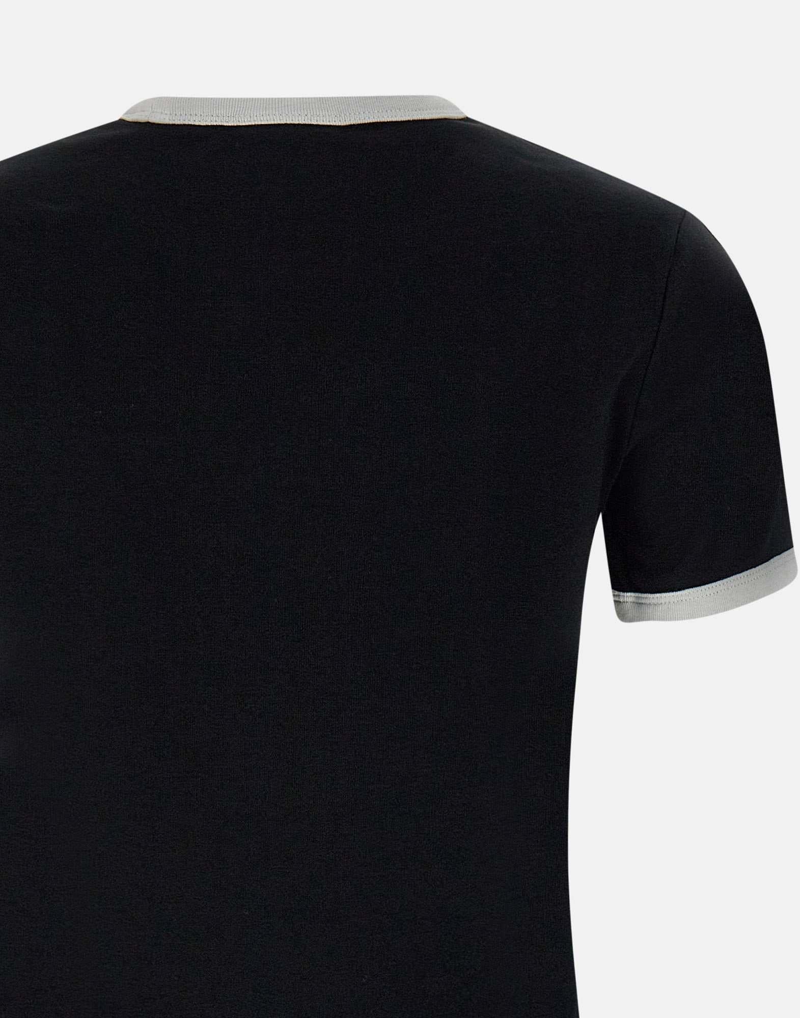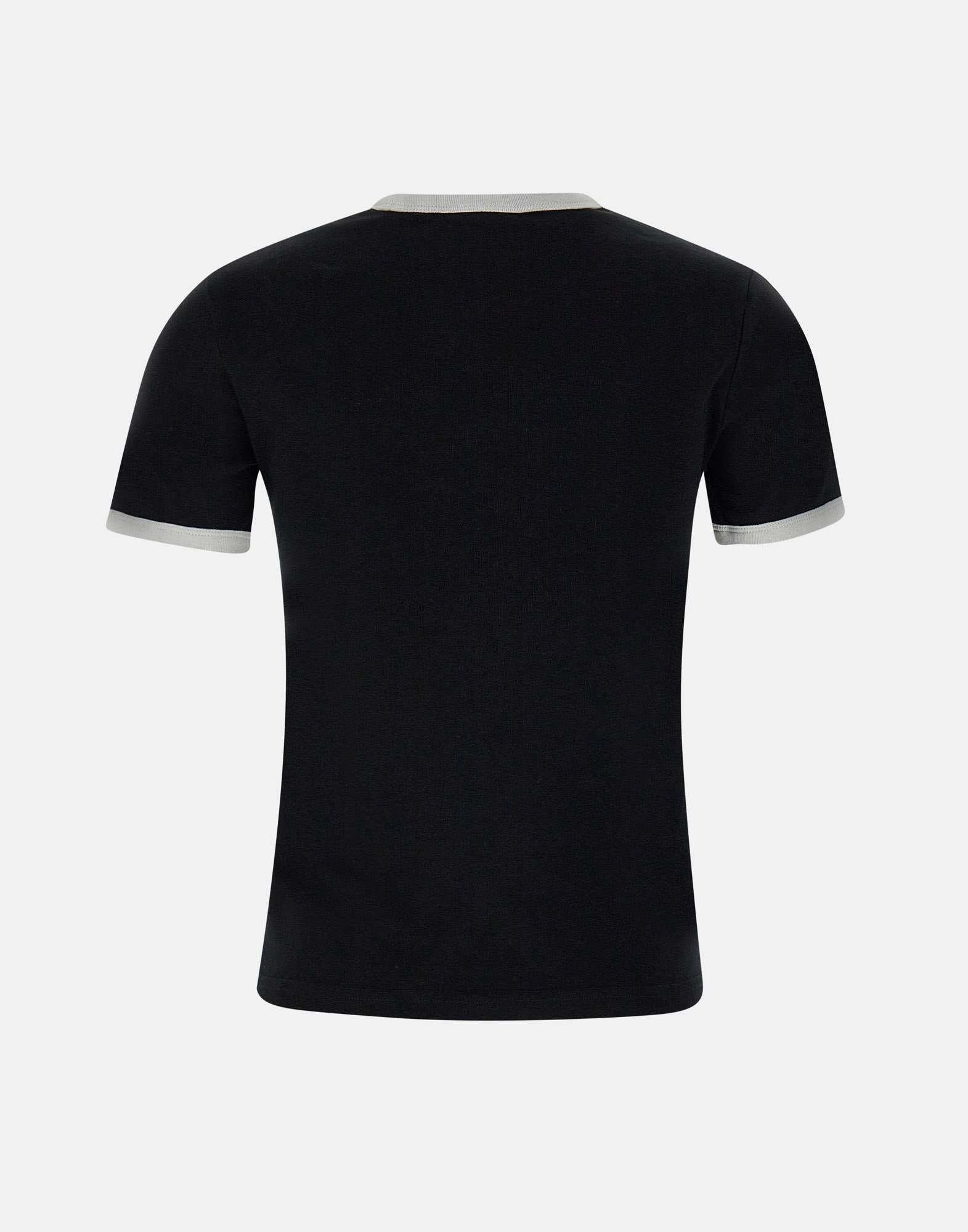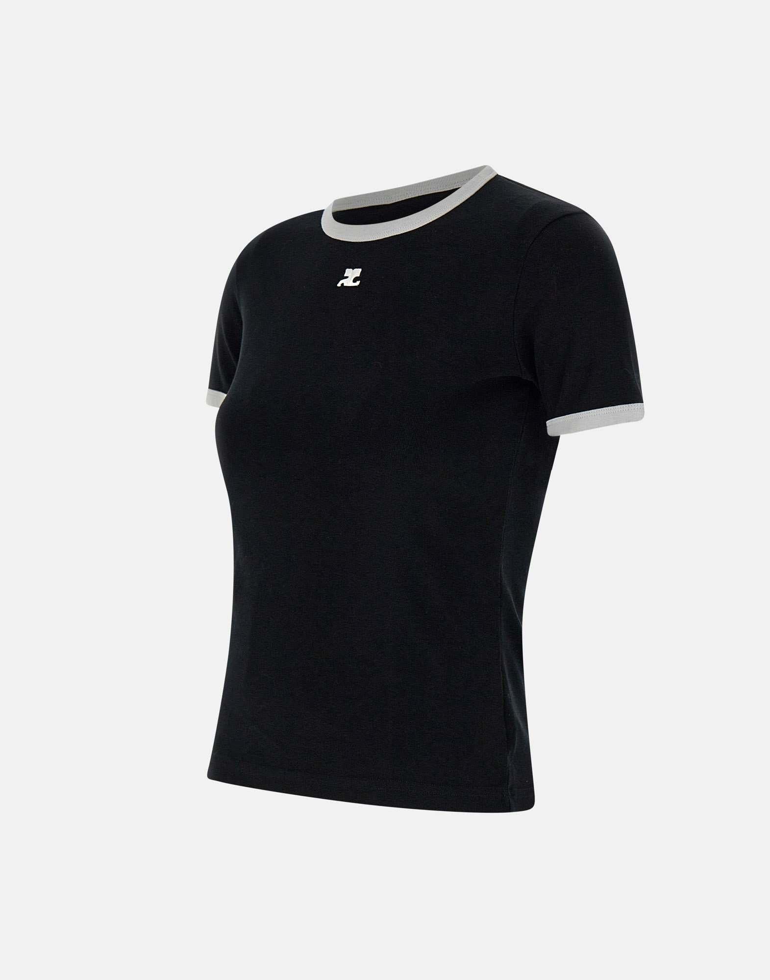 T-shirt "Signature contrast" donna Courrèges in cotone, nera con profili a contrasto colore bianco, maniche corte, girocollo con logo AC sottostante a ricamo, regular fit.