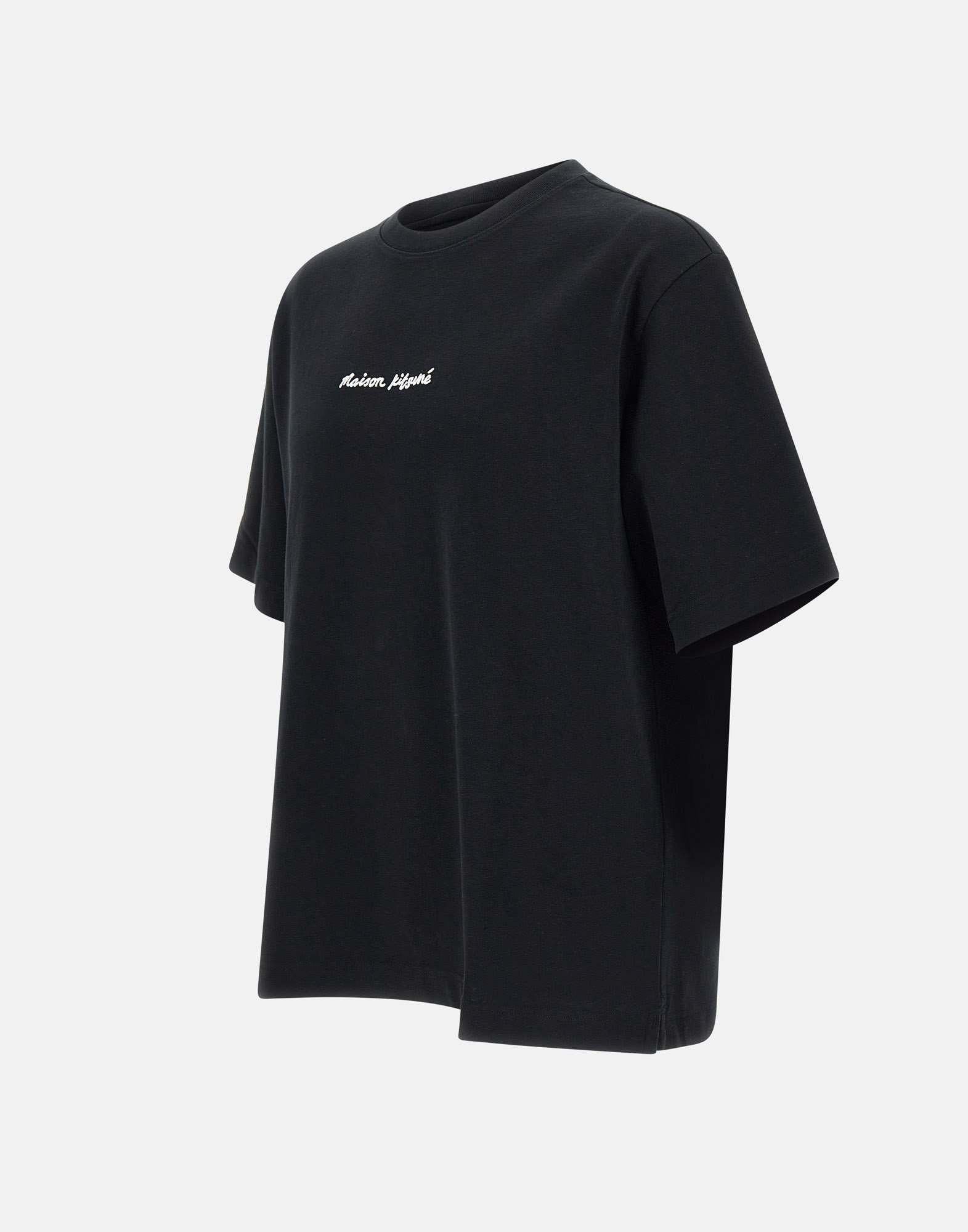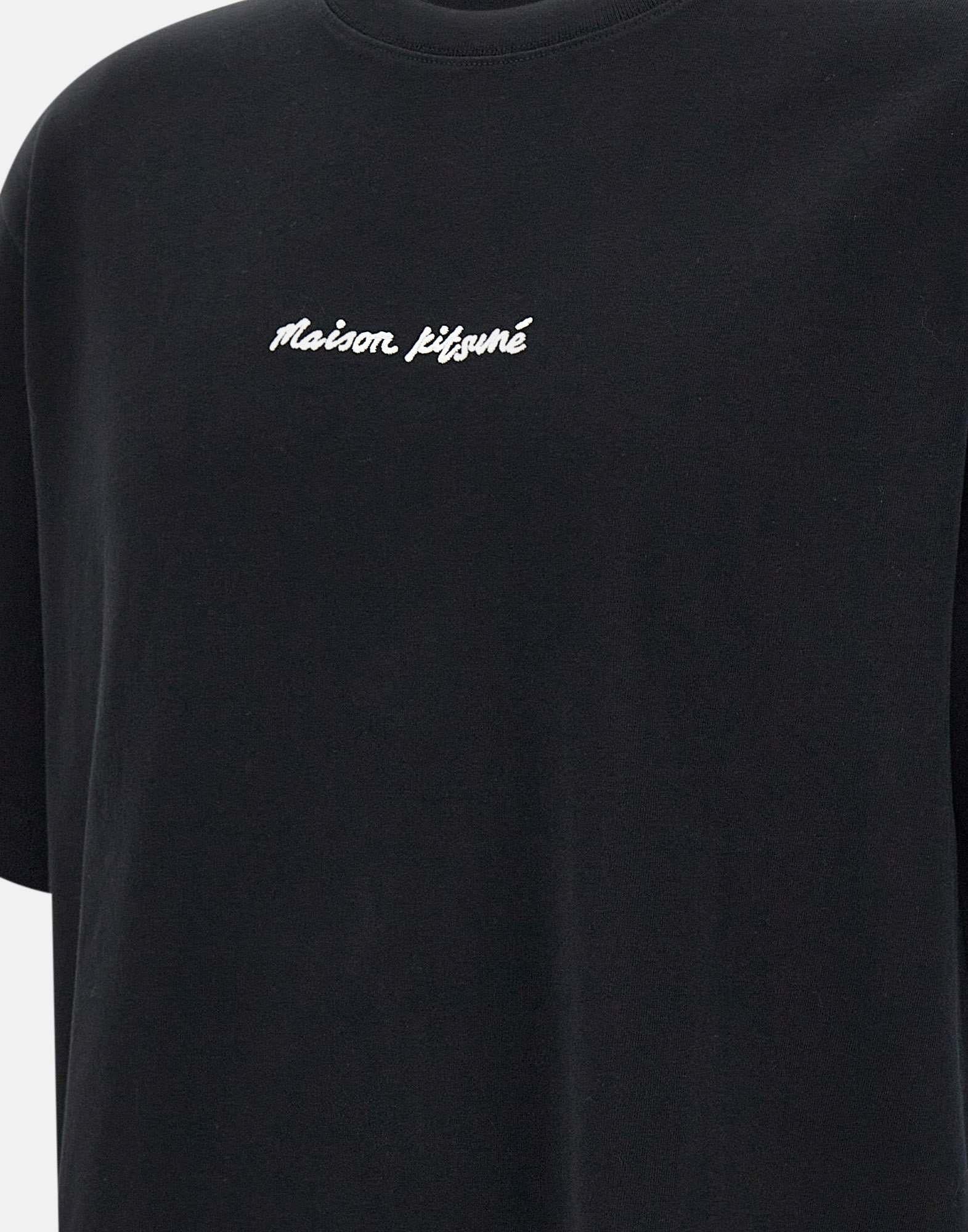 T-shirt uomo Maison Kitsunè in cotone, colore nero, maniche corte, girocollo a costine, spalle raglan, logo a contrasto di colore e ricamo sul davanti, oversize fit.