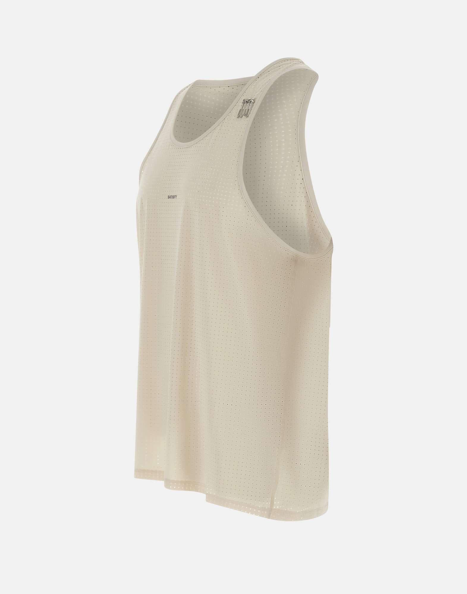 Canotta uomo Satisfy "Space-O Singlet" realizzata in micro jersey italiano Space-O color bianco con aperture traforate di precisione, studiata per offrire leggerezza, traspirabilità e performance avanzata. Il tessuto elasticizzato in quattro direzioni si adatta al movimento con naturalezza, rendendo il capo ideale per sforzi prolungati e attività ad alta intensità. Il design essenziale con girocollo è completato da quattro spille con S, pensate per fissare il pettorale il giorno della gara in modo pratico e funzionale. Il logo Satisfy riflettente sul petto e l'etichetta di manutenzione completamente rimovibile all'esterno aggiungono dettagli tecnici distintivi. Vestibilità regolare.