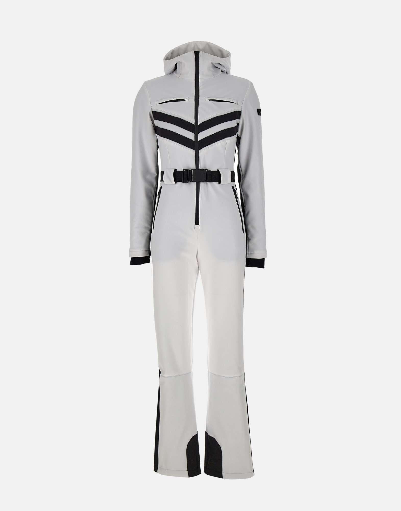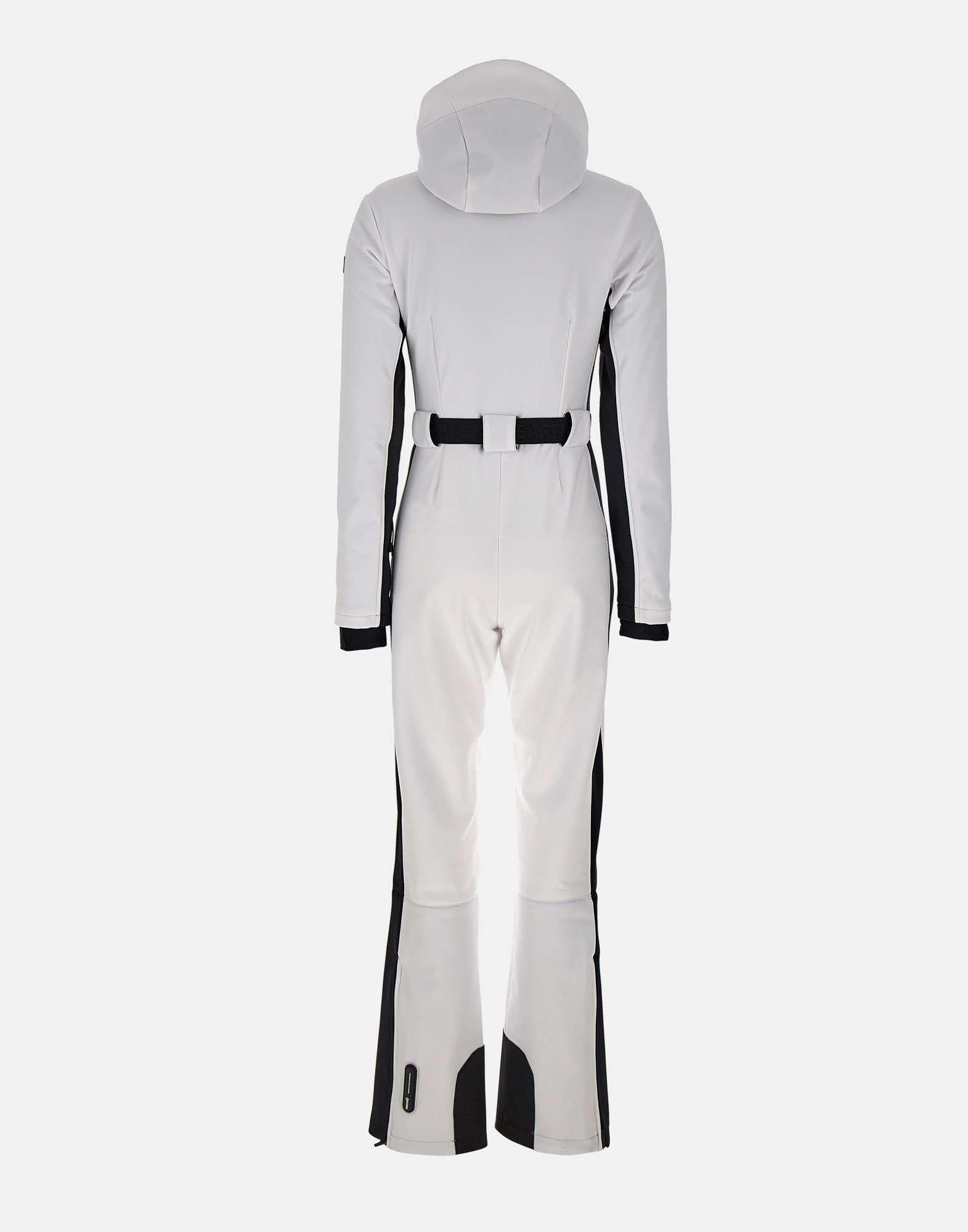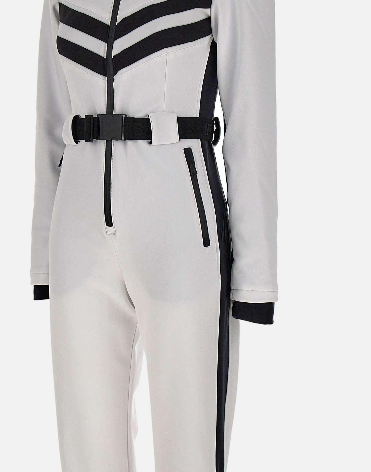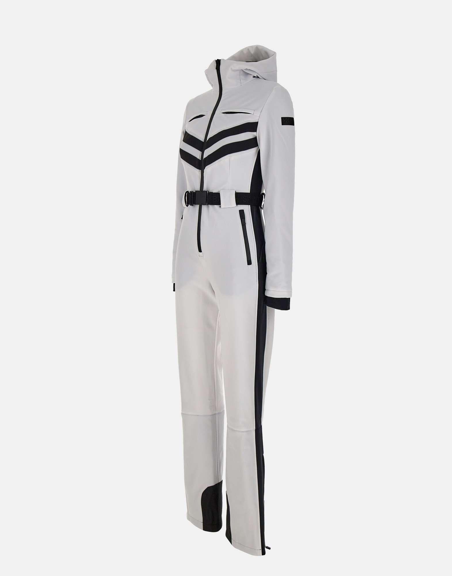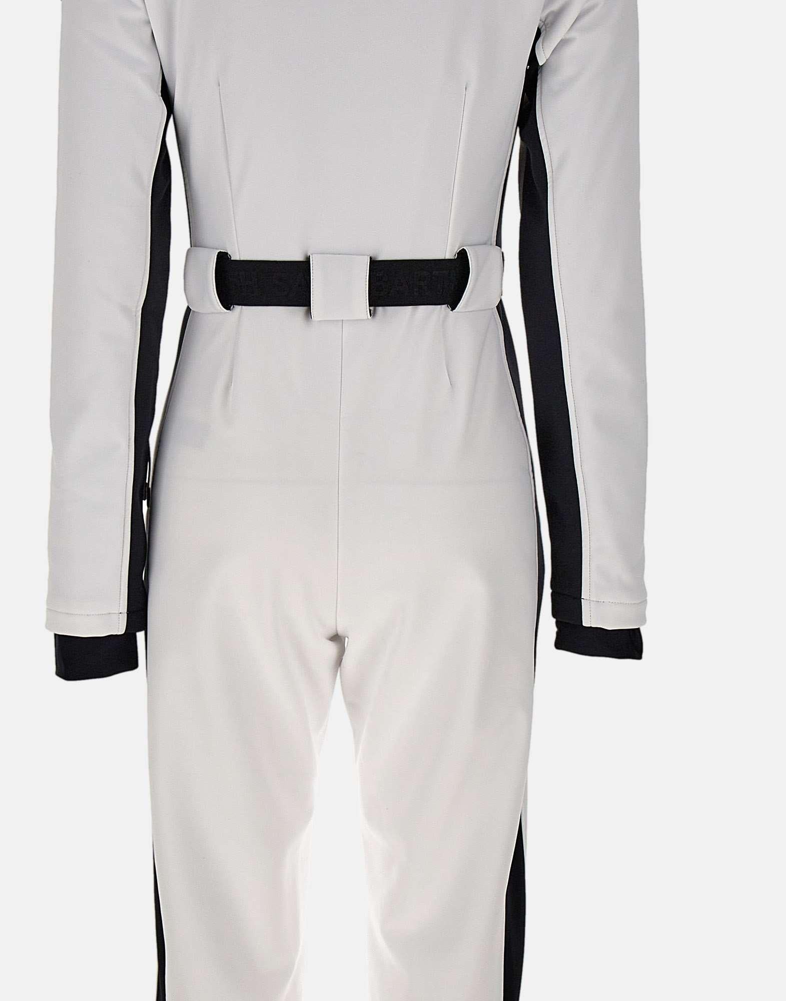 Tuta da sci "Garmisch" Mc2 Saint Barth da donna, colore bianco con dettagli neri, unisce prestazioni tecniche e stile sofisticato. Realizzata in materiali impermeabili e traspiranti di alta qualità con tecnologia Recco e Primaloft, assicura protezione da freddo, vento e umidità. Il design ergonomico e aderente garantisce libertà di movimento sulle piste.