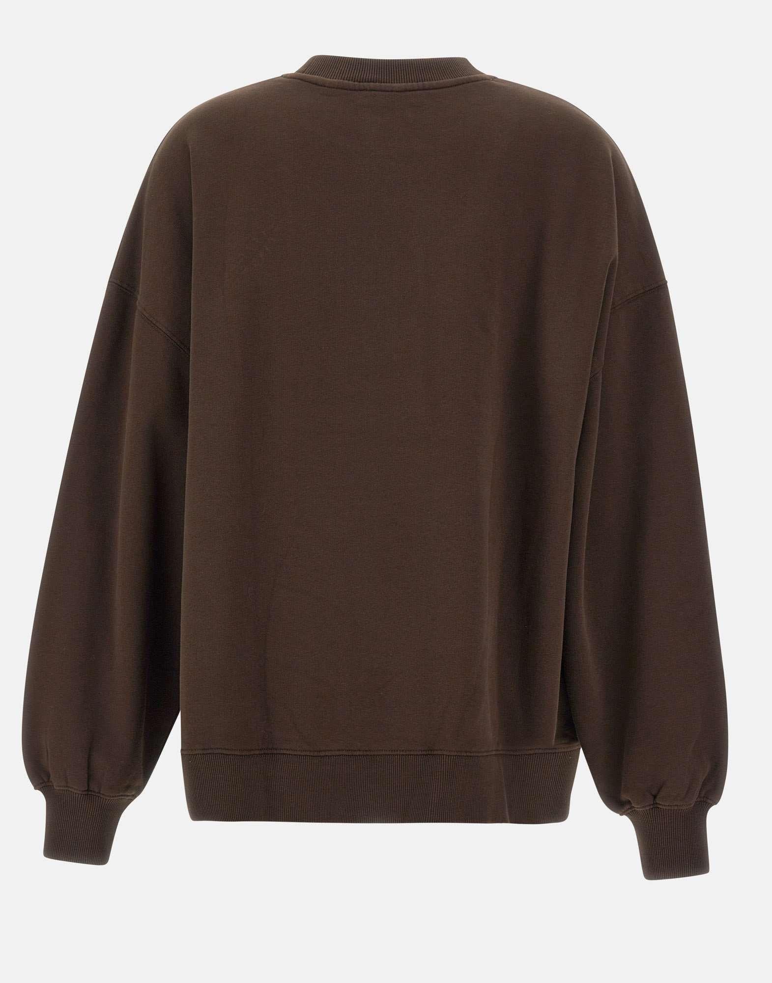 Felpa Rotate Birger Christensen "Heavy Sweat Crewneck" colore cioccolato, Holiday collection, è un capo iconico che unisce comfort e stile contemporaneo. Realizzata in cotone pesante con interno garzato, presenta maniche lunghe, girocollo classico, bordi a costine e spalle scese per un look rilassato. Il maxi logo floccato a contrasto sul davanti aggiunge un tocco deciso e distintivo. Vestibilità oversize fit.