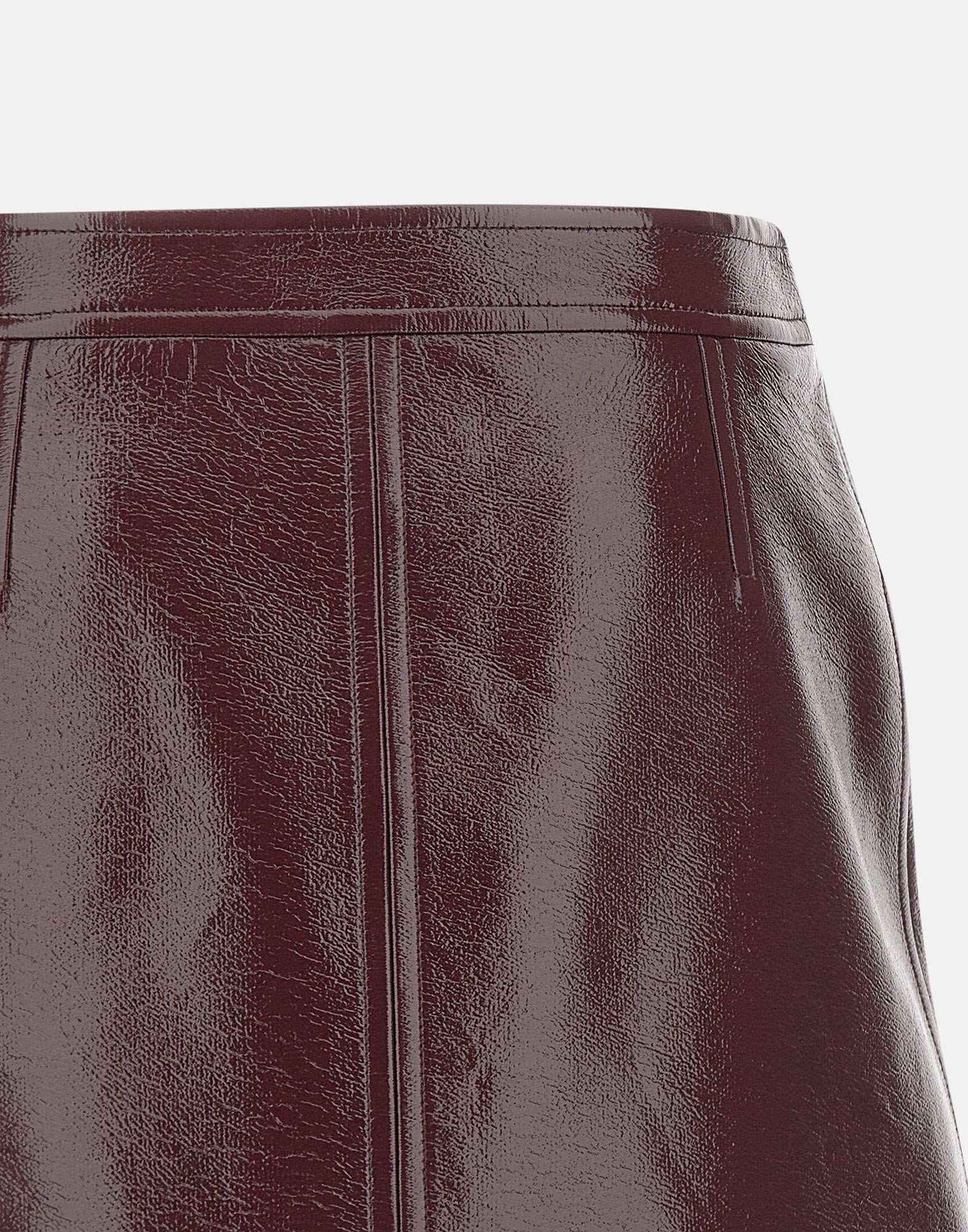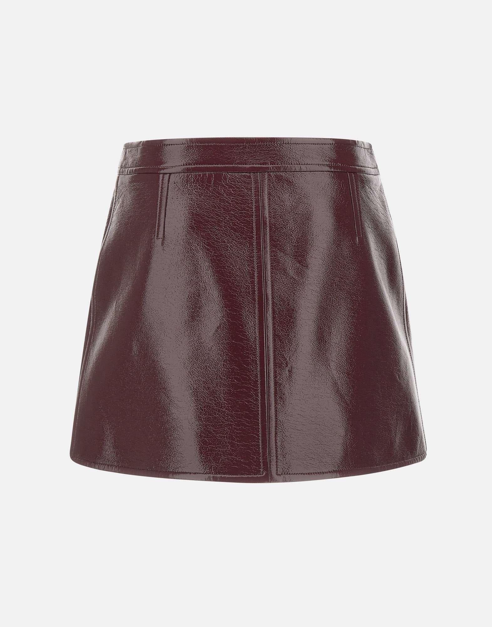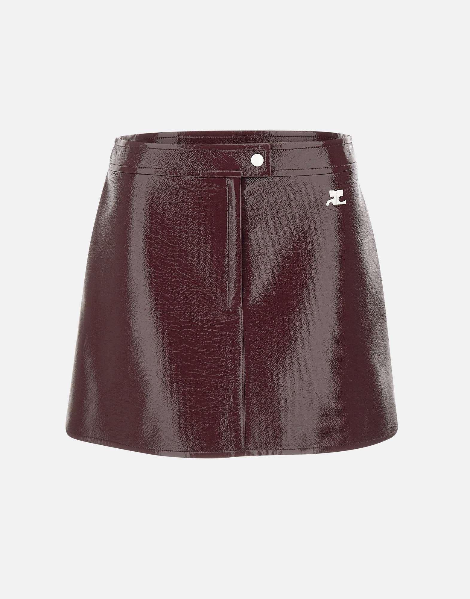 La mini gonna Reedition Vinyl di Courrèges, in elegante color burgundy, è un capo statement che rievoca linconfondibile estetica anni 70 della maison. Realizzata in vinile lucido, si caratterizza per il logo AC bianco applicato sul davanti, la chiusura con zip frontale e una distintiva sgancia bianca laccata, dettaglio iconico del brand. Dalla vestibilità aderente e dal taglio corto, questa gonna è perfetta per valorizzare la silhouette con un tocco rétro futurista, ideale per look decisi e contemporanei.