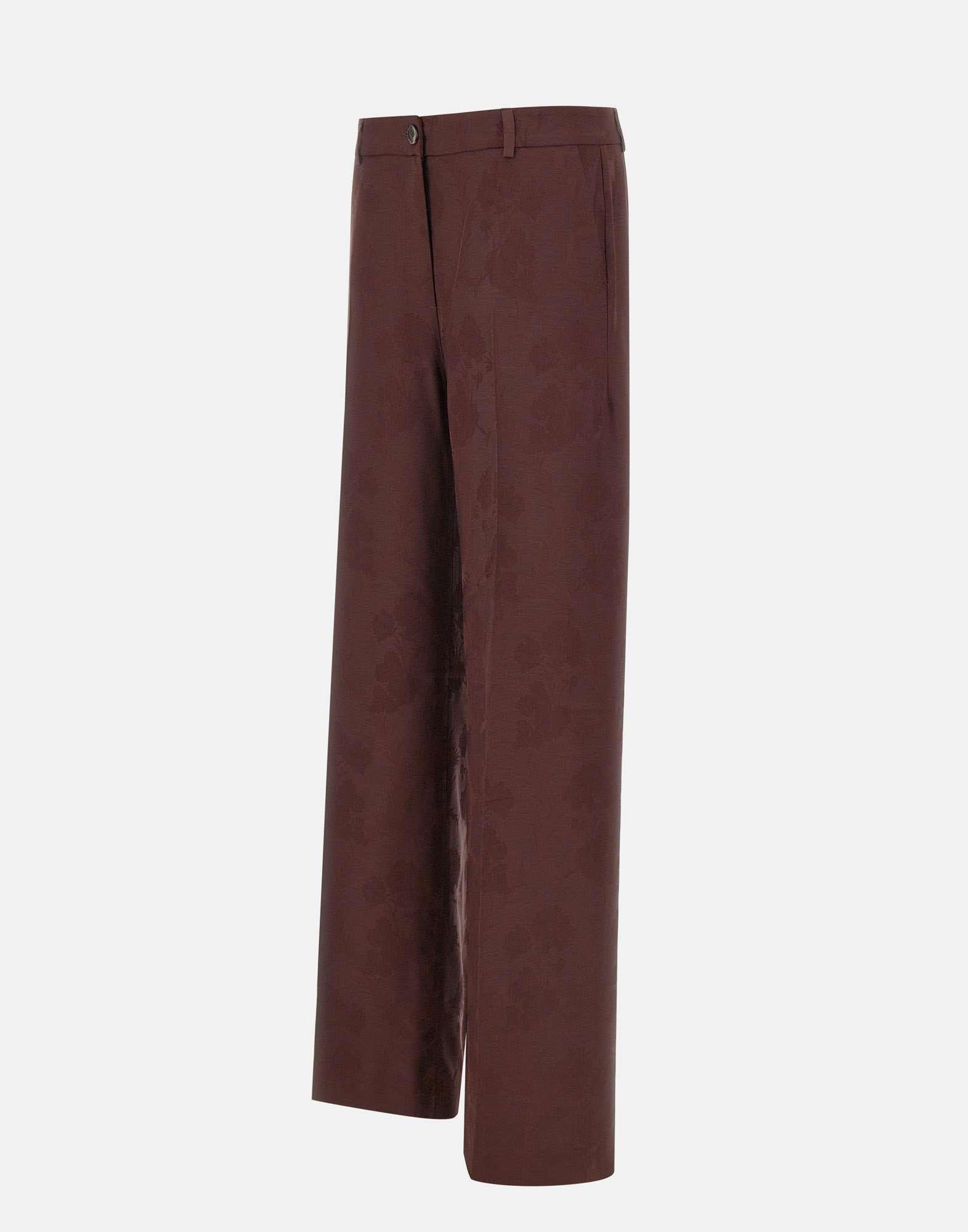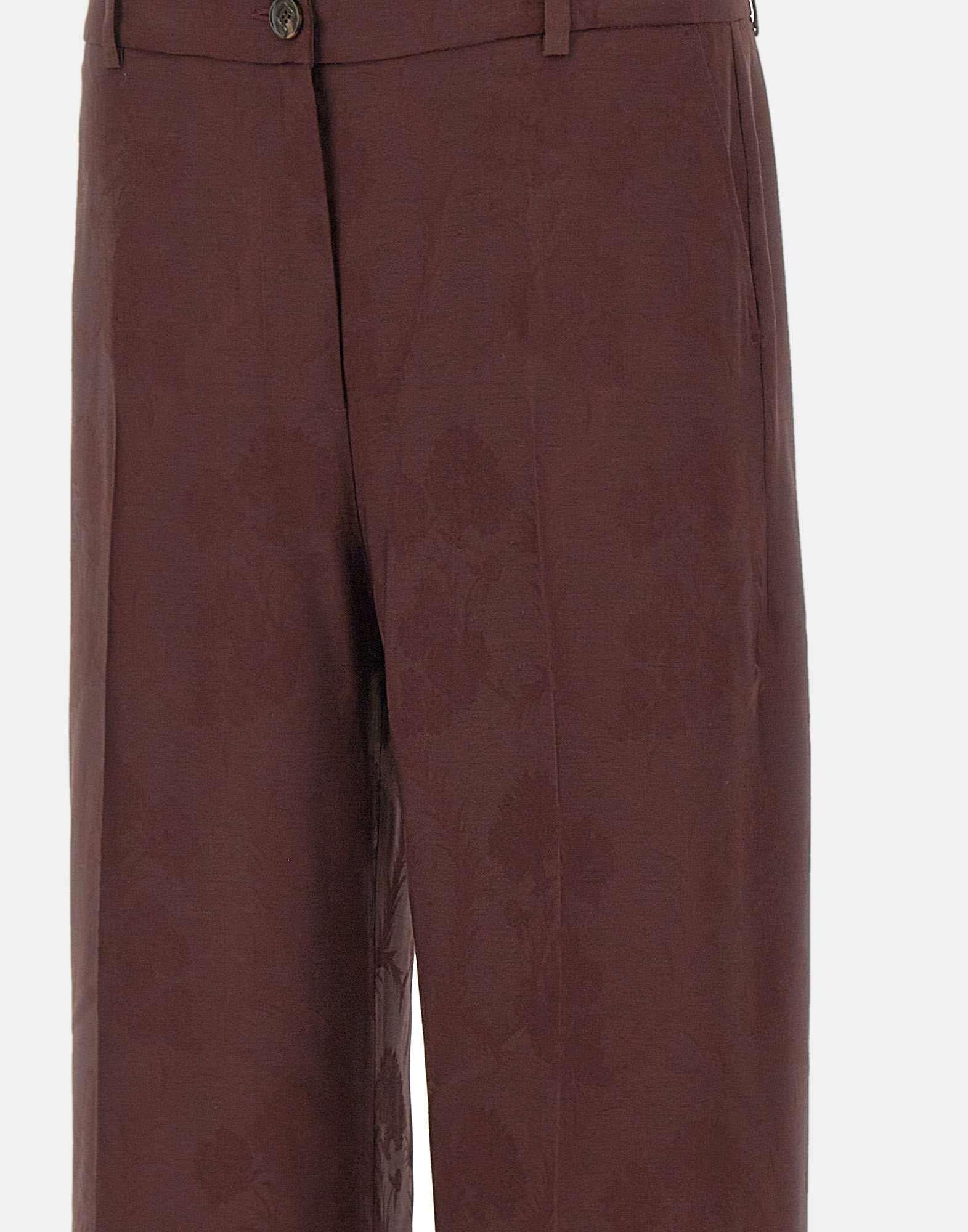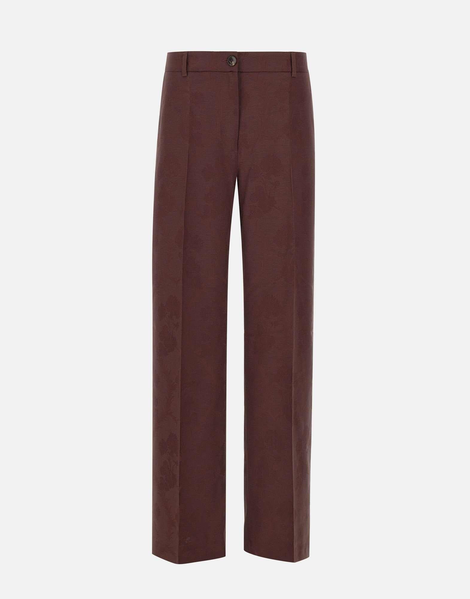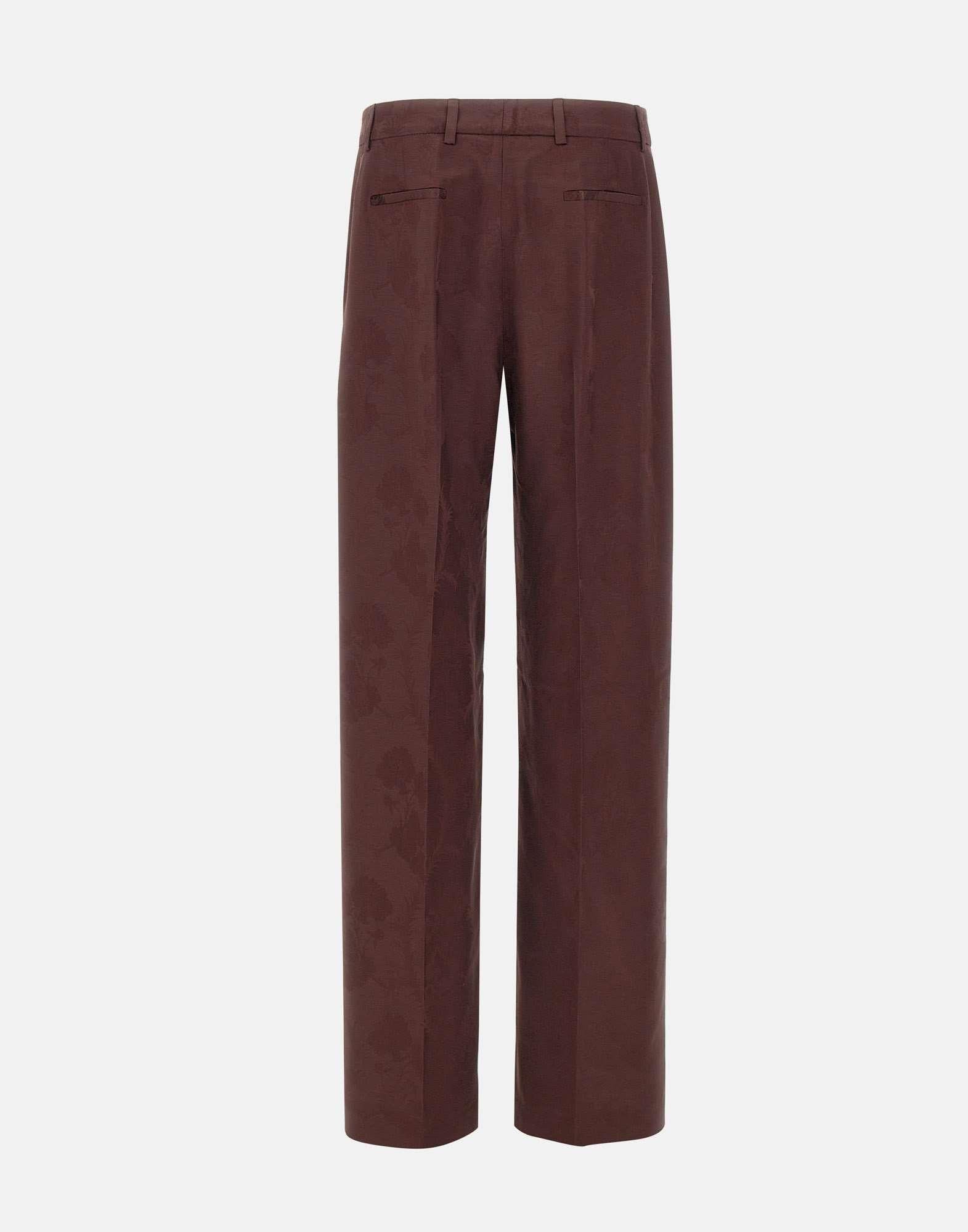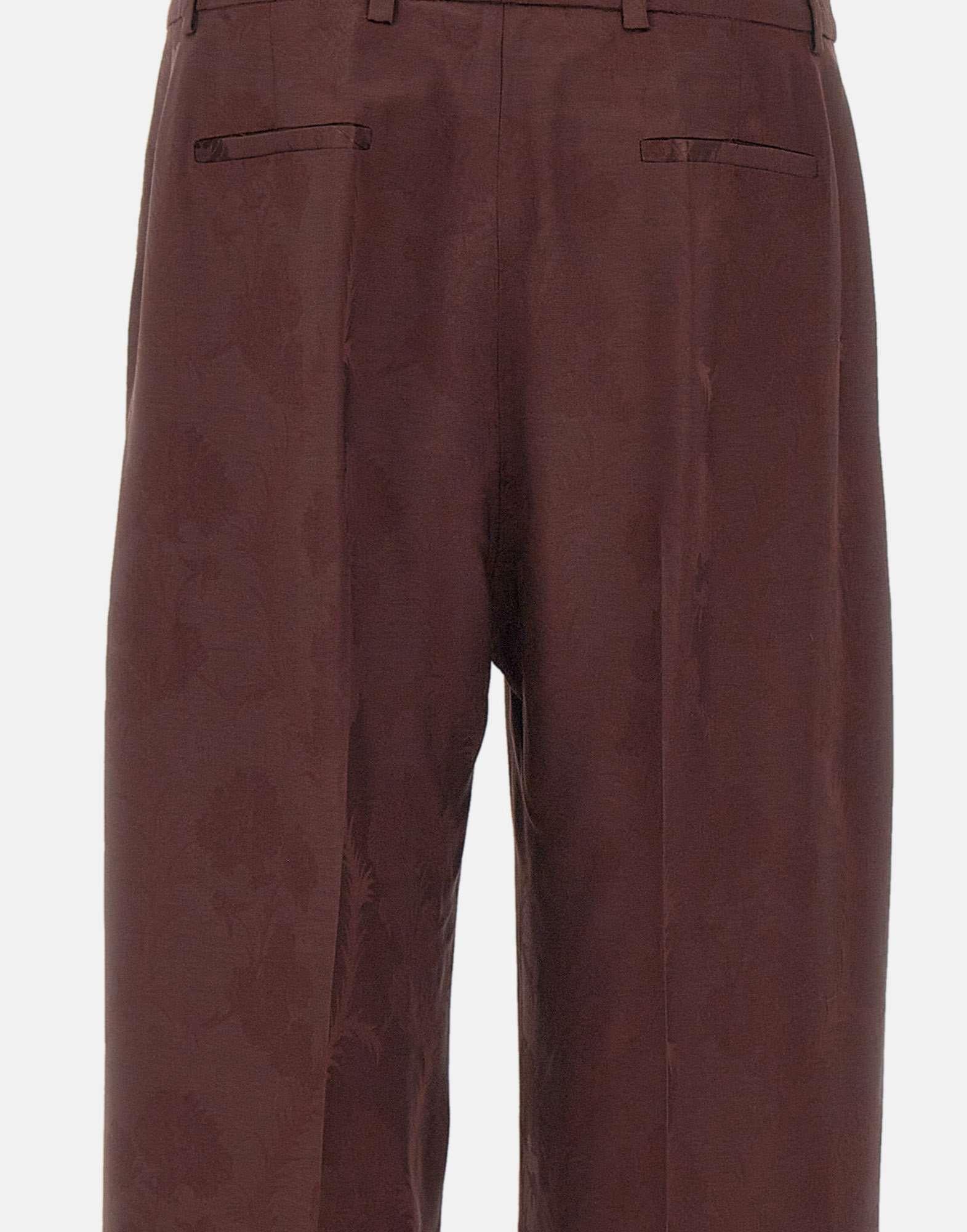 Pantaloni Etro, espressione della sartorialità italiana unita all’estro creativo del brand. Realizzati in un raffinato tessuto jacquard in misto lana e viscosa, si distinguono per l’elegante fantasia tono su tono color borgogna. Il modello presenta una chiusura con zip e bottone, passanti per cintura, tasche laterali a filo, tasche posteriori e una piega stirata che ne valorizza la linea. La gamba extra large con fondo da 30 cm dona volume e movimento, mantenendo una vestibilità regular fit confortevole e versatile. Un capo ricercato e distintivo, interamente made in Italy.