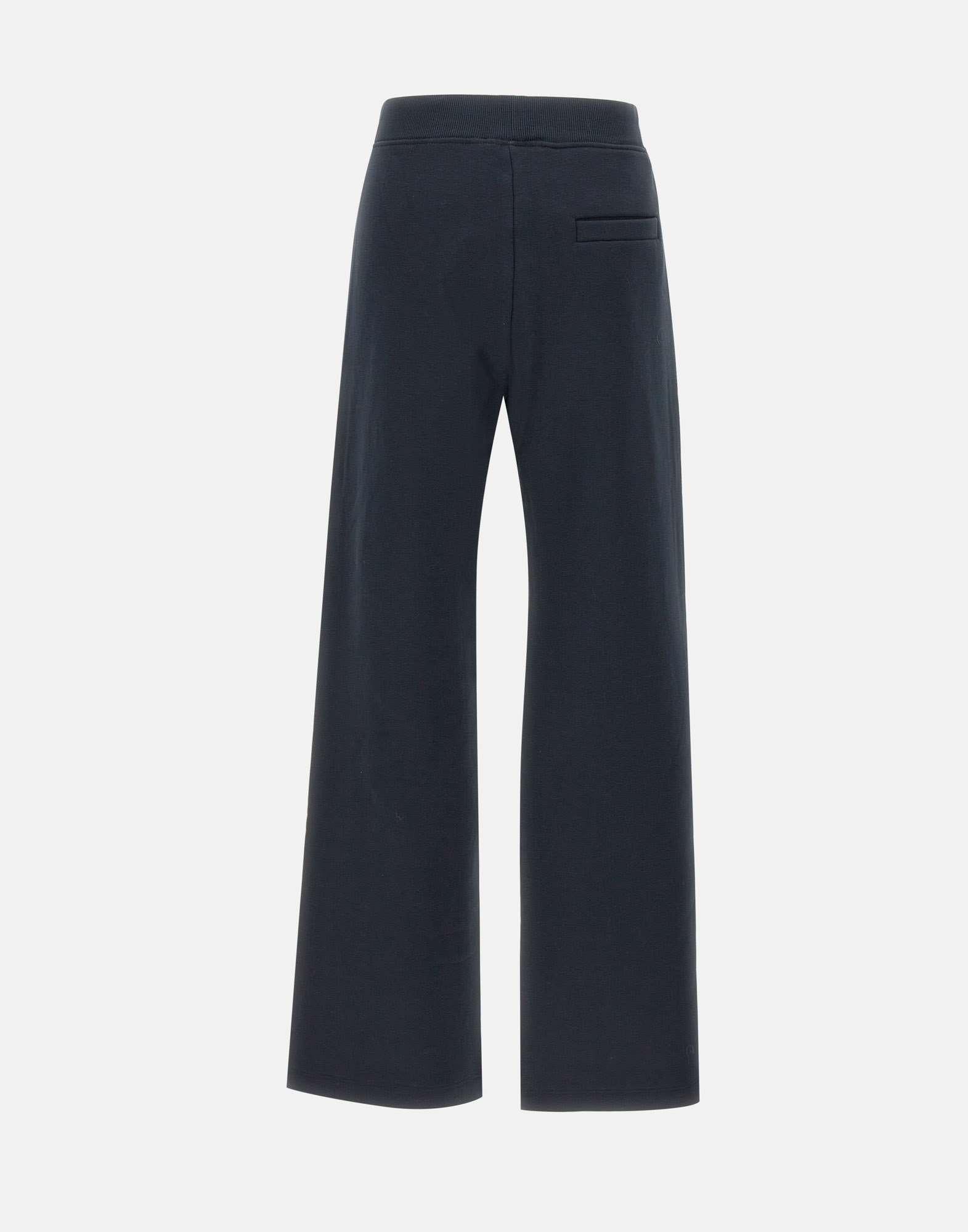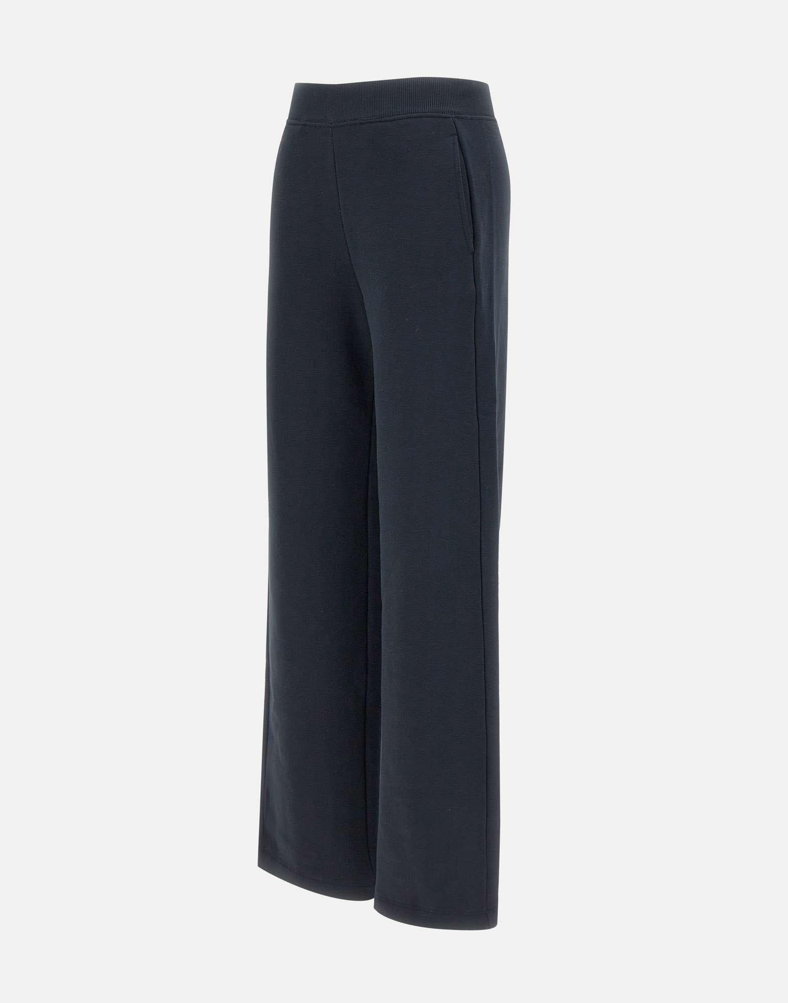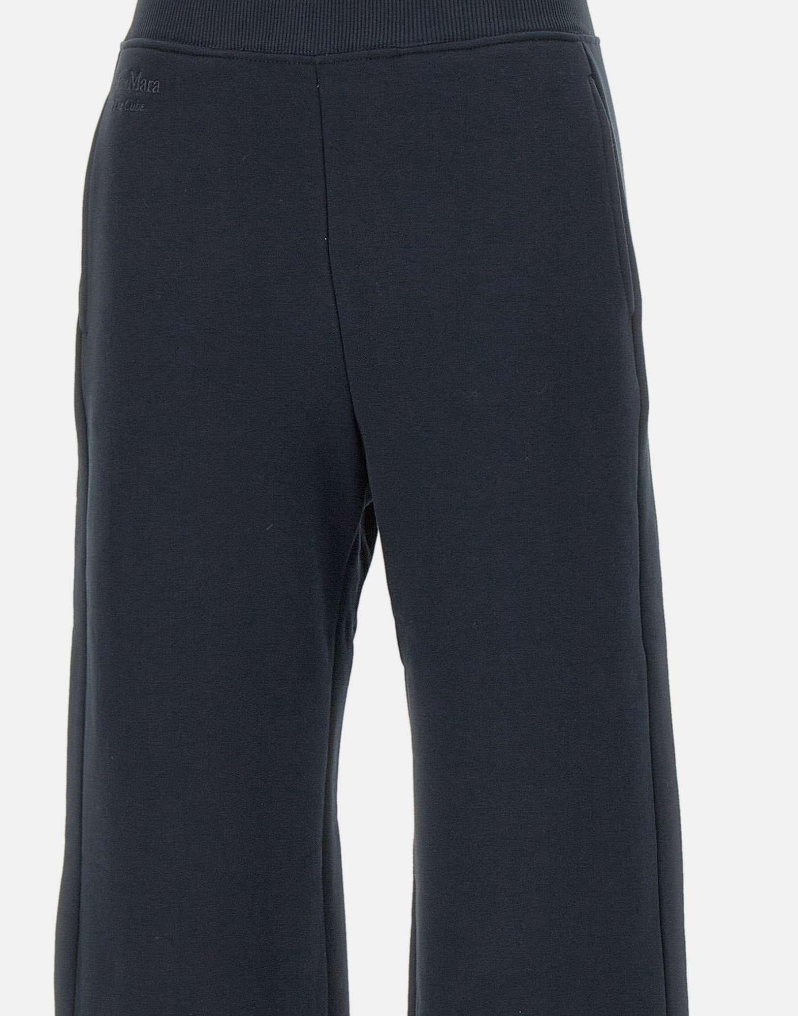 Pantaloni "Pompeo" 'S Max Mara, blu, realizzati in morbido jersey di cotone garzato. Vita elasticizzata a costine per un comfort superiore, tasche laterali e taschino a filetto sul retro con piccolo logo ricamato sopra. Linea wide leg con fondo 26 cm per un look rilassato e contemporaneo. Regular fit, perfetti per outfit casual e chic.