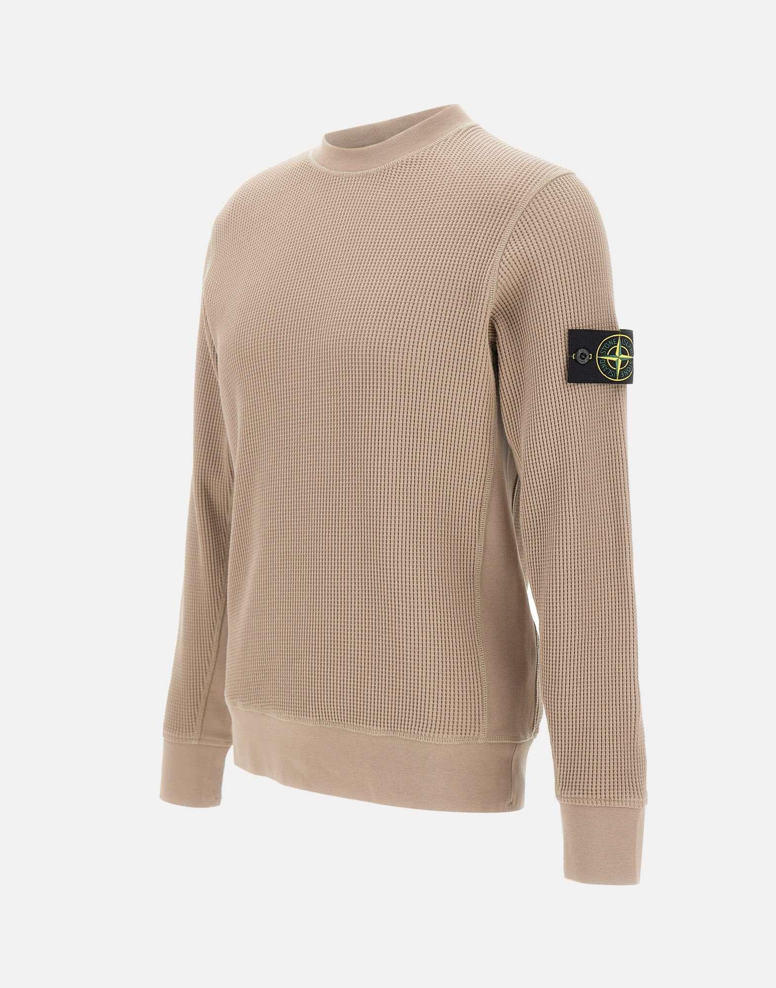 Felpa uomo Stone Island in cotone biologico a nido d'ape color beige, modello a girocollo dal design tecnico e contemporaneo. La costruzione è valorizzata da maniche raglan sul retro, inserti a costine laterali e sul sottomanica e cuciture overlock che definiscono i dettagli con un look pulito e funzionale. Rifinita da bordi a costine, offre una pesantezza elevata ideale per la stagione fredda e per il layering. Badge Stone Island applicato sulla manica sinistra. Vestibilità regular.