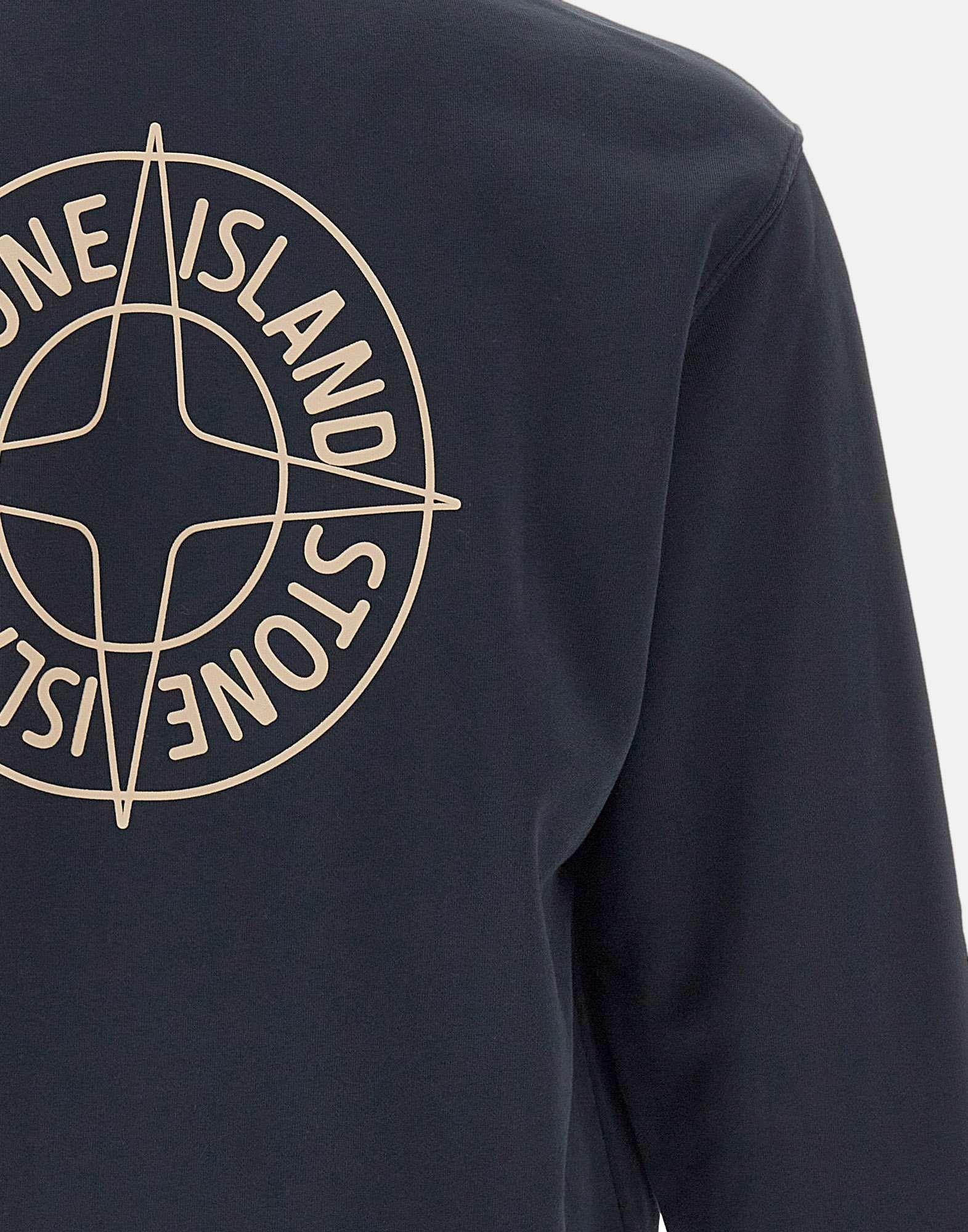 Felpa uomo Stone Island in cotone color blu scuro, modello tinto in capo, pensata per un look essenziale e contemporaneo. La felpa presenta girocollo e bordi a costine che definiscono la linea, con pesantezza intermedia ideale per il layering di stagione. Sul petto spicca il logo Compass stampato in rilievo, ripreso in una versione piu grande sul retro per un dettaglio distintivo e riconoscibile. Vestibilità over, perfetta per uno stile urbano e rilassato.