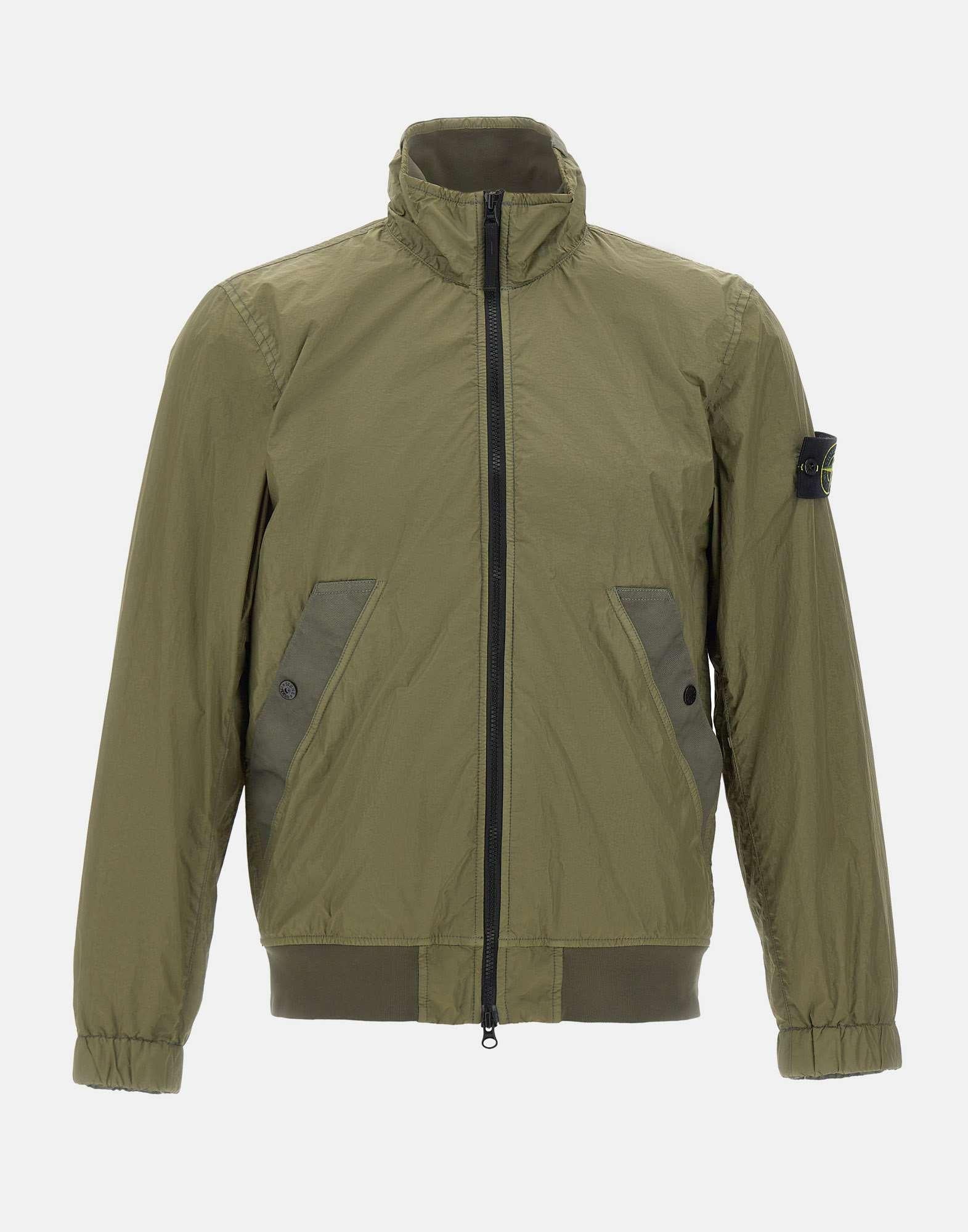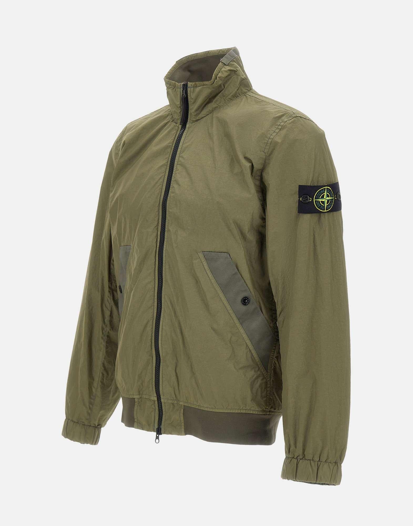 Giacca uomo Stone Island "Crinkle Reps NY" in reps di nylon leggero riciclato color verde militare, caratterizzata dal tipico aspetto stropicciato per un look tecnico e distintivo. Il capo è tinto in capo con trattamento antigoccia, ideale per la mezza stagione e per uno styling urbano funzionale. Presenta tasche diagonali con bottoni automatici, polsini elasticizzati e chiusura frontale con zip a doppio cursore per una vestibilità pratica. Completa il design la patch logo applicata con bottoni sulla manica sinistra, firma iconica Stone Island. Vestibilità regolare.