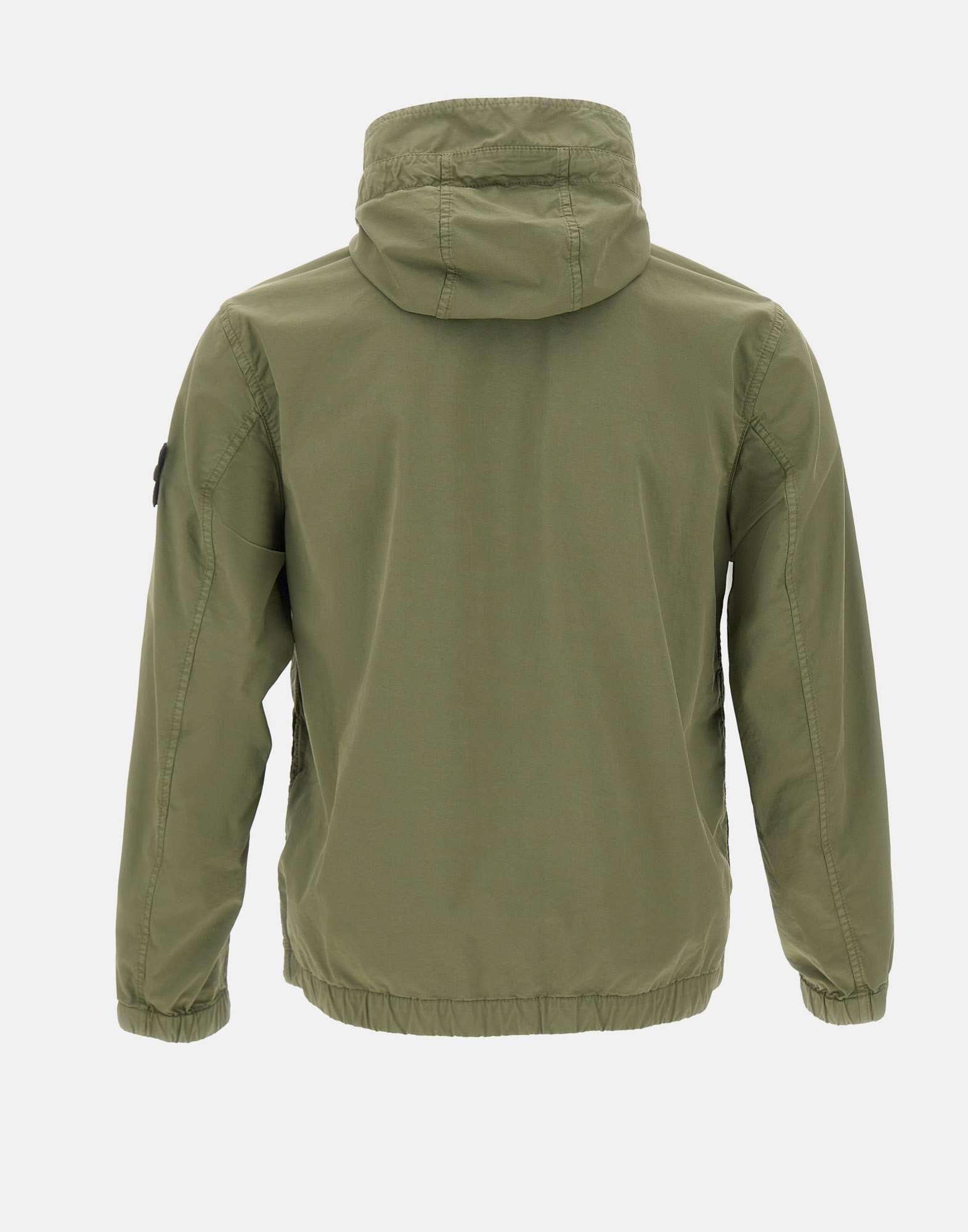 Giacca uomo Stone Island in twill di cotone stretch color verde militare, pensata per un look tecnico e contemporaneo. Il capo è tinto in capo con trattamento antigoccia, ideale per l'uso quotidiano nelle mezze stagioni. Presenta cappuccio, tasche sul petto a doppio scomparto e tasche laterali per una funzionalità completa. I bordi elasticizzati definiscono la linea, mentre la chiusura con zip a scomparsa a doppio cursore mantiene il design pulito e pratico. Completa il capo la patch logo applicata sul braccio sinistro con bottoni, dettaglio iconico Stone Island. Vestibilità regolare.