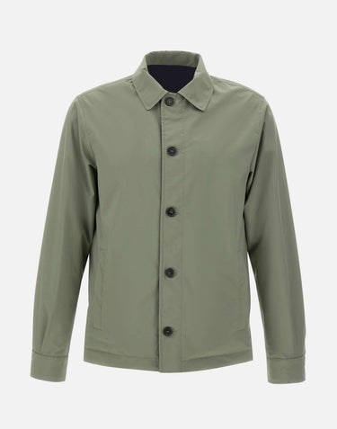 Giacca uomo Paul&Shark in tessuto tecnico color verde salvia, modello overshirt reversibile con interno color blu navy. Pensata per un guardaroba funzionale e contemporaneo, offre due look in un solo capo mantenendo una linea essenziale. La chiusura frontale con bottoni logati definisce lo stile, mentre le tasche laterali con bottone a pressione sono presenti su entrambi i lati per praticità e versatilità. Vestibilità regolare, ideale come giacca uomo in tessuto tecnico per layering di stagione.