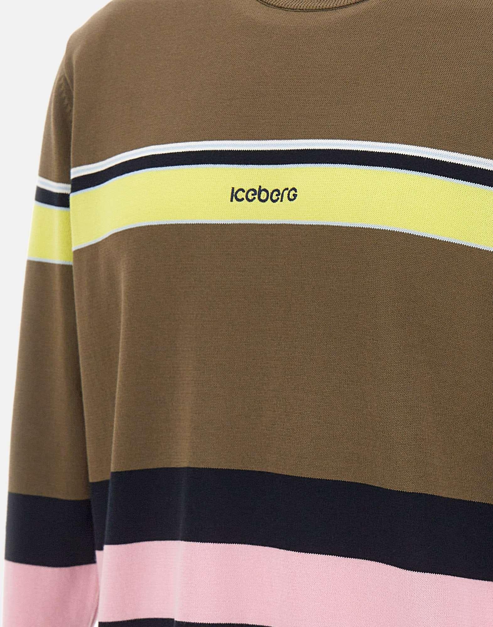 Maglia uomo Iceberg realizzata in cotone, caratterizzata da righe multicolor che attraversano busto e maniche creando un effetto grafico dinamico e distintivo. Al centro, il logo ricamato firma il capo con un accento identitario riconoscibile. Il design unisce comfort e personalità, mantenendo una linea pulita e contemporanea. Girocollo e orli a costine completano la struttura, mentre la vestibilità rilassata assicura un fit confortevole, ideale per il casual quotidiano.