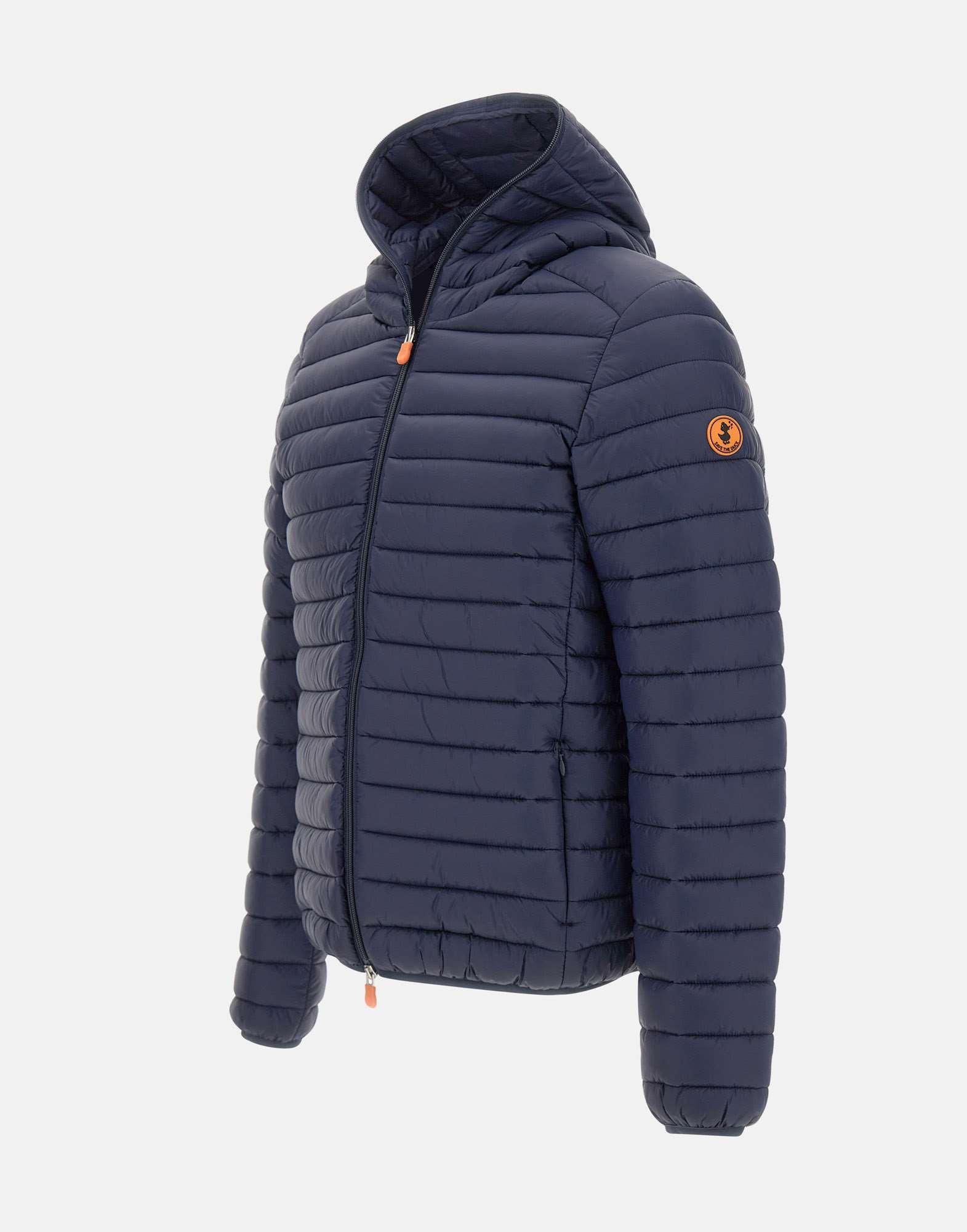 Piumino uomo Save The Duck "Donald" realizzato in nylon color blu, estremamente leggero e morbido con aspetto fashion e leggermente lucente. Sottile ma resistente, offre protezione dall'acqua e dall'aria, assorbe l'umidita e asciuga rapidamente, garantendo comfort e praticità nell'uso quotidiano. L'imbottitura animal-free in Plumtech assicura calore senza compromettere la leggerezza. Il modello è dotato di cappuccio, chiusura con zip a doppio cursore e tasche laterali con zip invisibili. Polsi e fondo in Lycra completano la linea con una vestibilità confortevole. Il tirazip personalizzato e il badge gommato sulla manica sinistra, entrambi color arancio, aggiungono un dettaglio distintivo e riconoscibile. arancio. Vestibilità regolare.