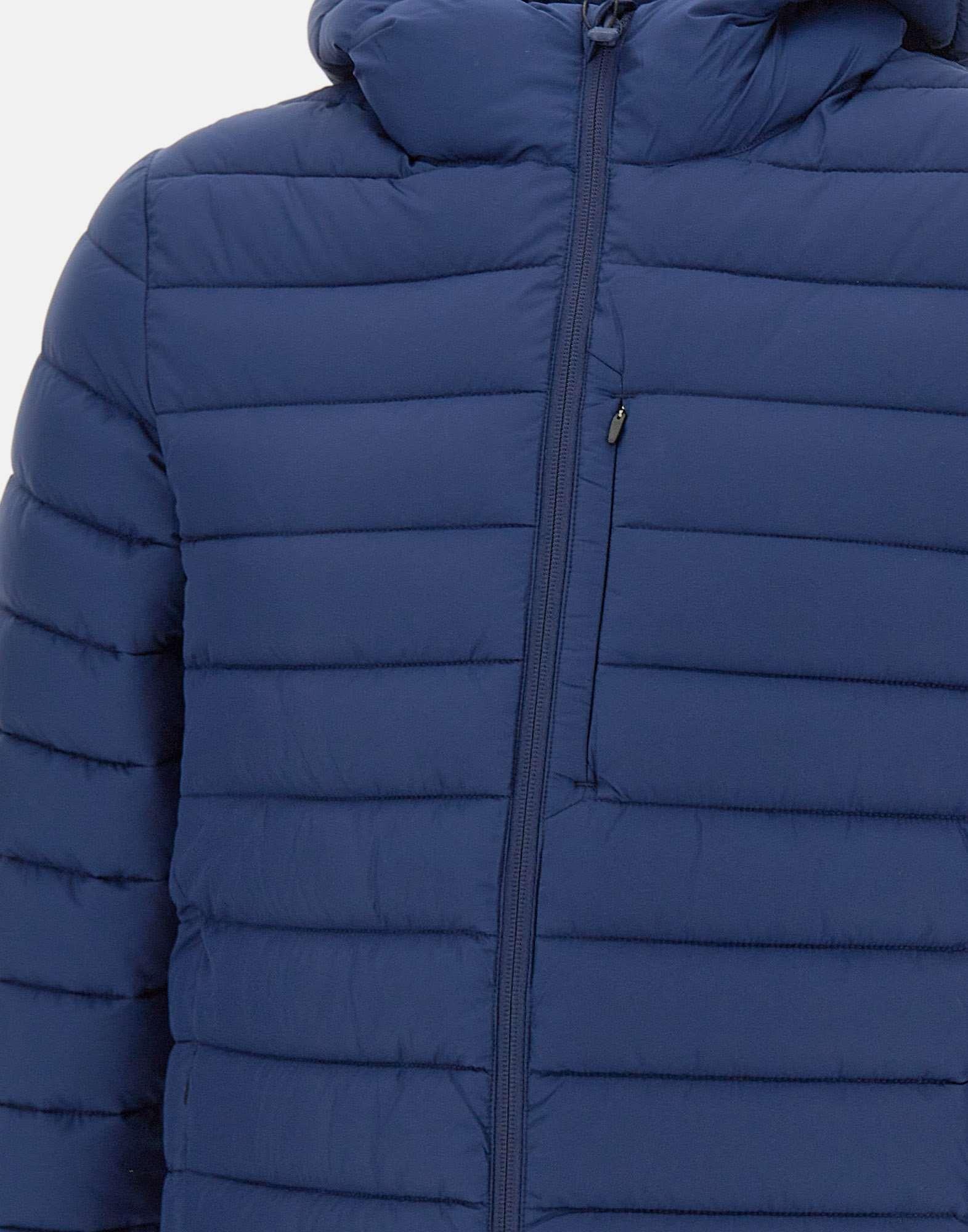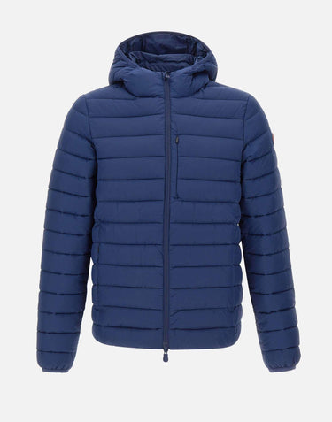 Piumino uomo Save The Duck modello "Miro21Juncus", colore blu, con cappuccio fisso e chiusura frontale full zip. Presenta due tasche laterali con zip e una tasca sul petto per la massima funzionalità. Iconico patch logo gommato sulla manica sinistra. Imbottitura esclusiva Plumtech, 100% animal free, calda e leggera, perfetta per affrontare la stagione fredda con comfort. Coulisse regolabile sul fondo per un fit ancora più comodo. Slim fit e sacchetto incluso come custodia.
