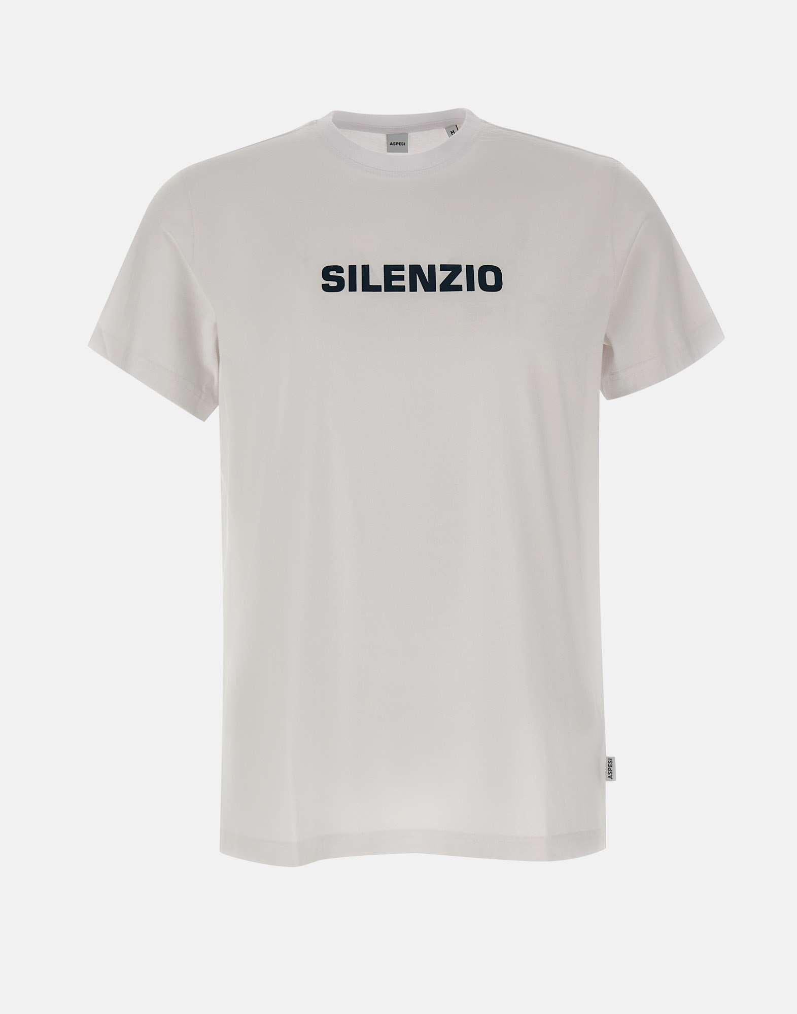 T-shirt uomo Aspesi "Silenzio" realizzata in jersey di puro cotone bianco, pensata per un look essenziale con un dettaglio grafico distintivo. Il capo e caratterizzato dalla stampa "SILENZIO" sul davanti, che aggiunge carattere mantenendo uno stile pulito e contemporaneo. A completare il design l'etichetta Aspesi a bandierina sul fianco, firma discreta del brand. Girocollo e maniche corte definiscono una linea versatile, mentre la vestibilità regolare assicura comfort e praticità nell'uso quotidiano.