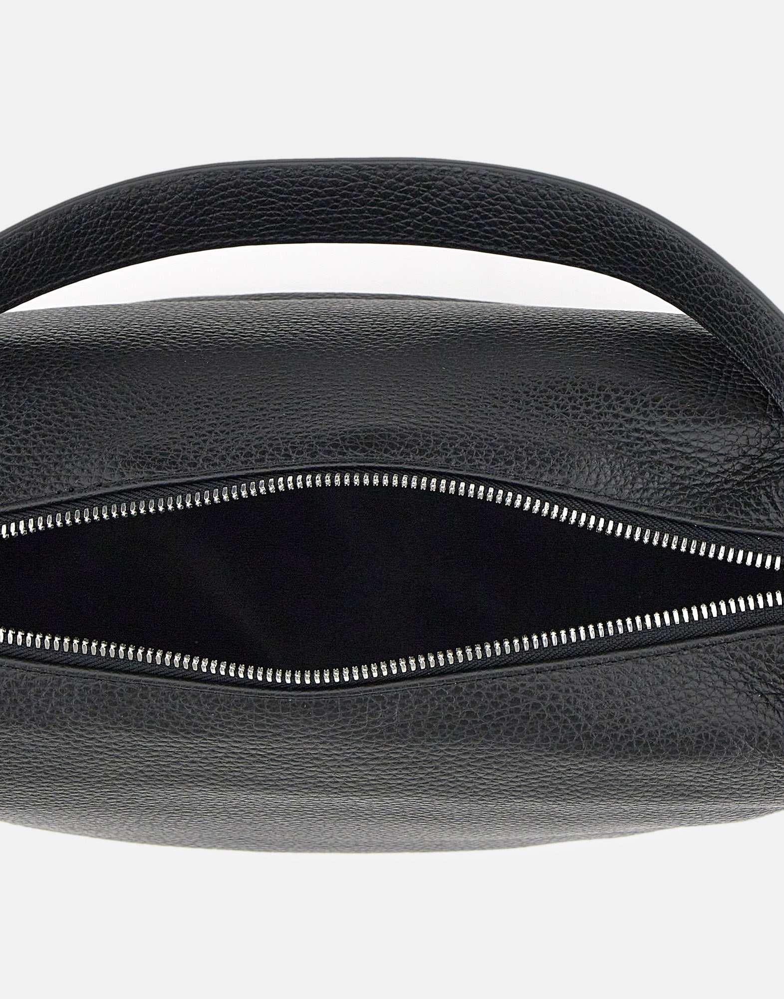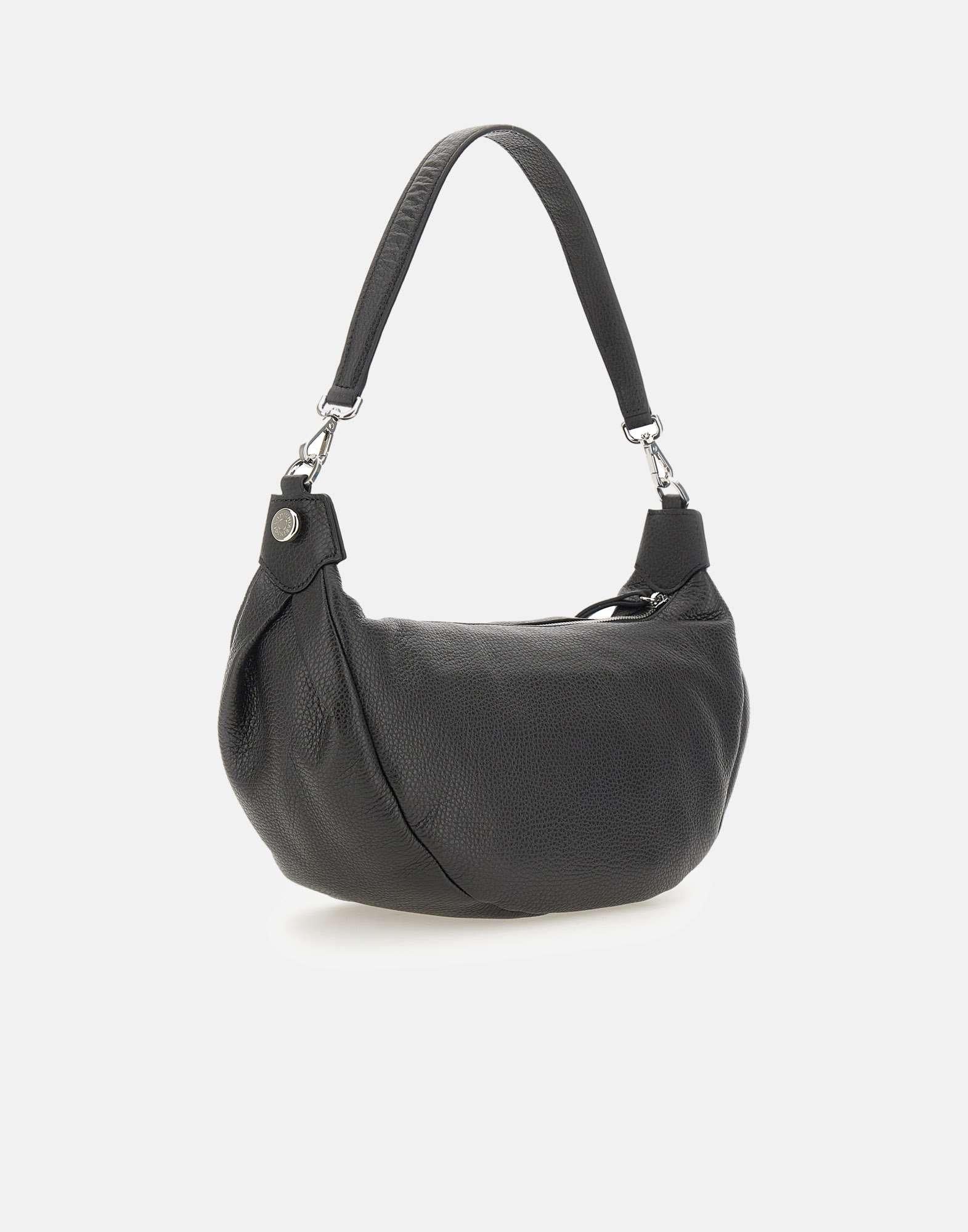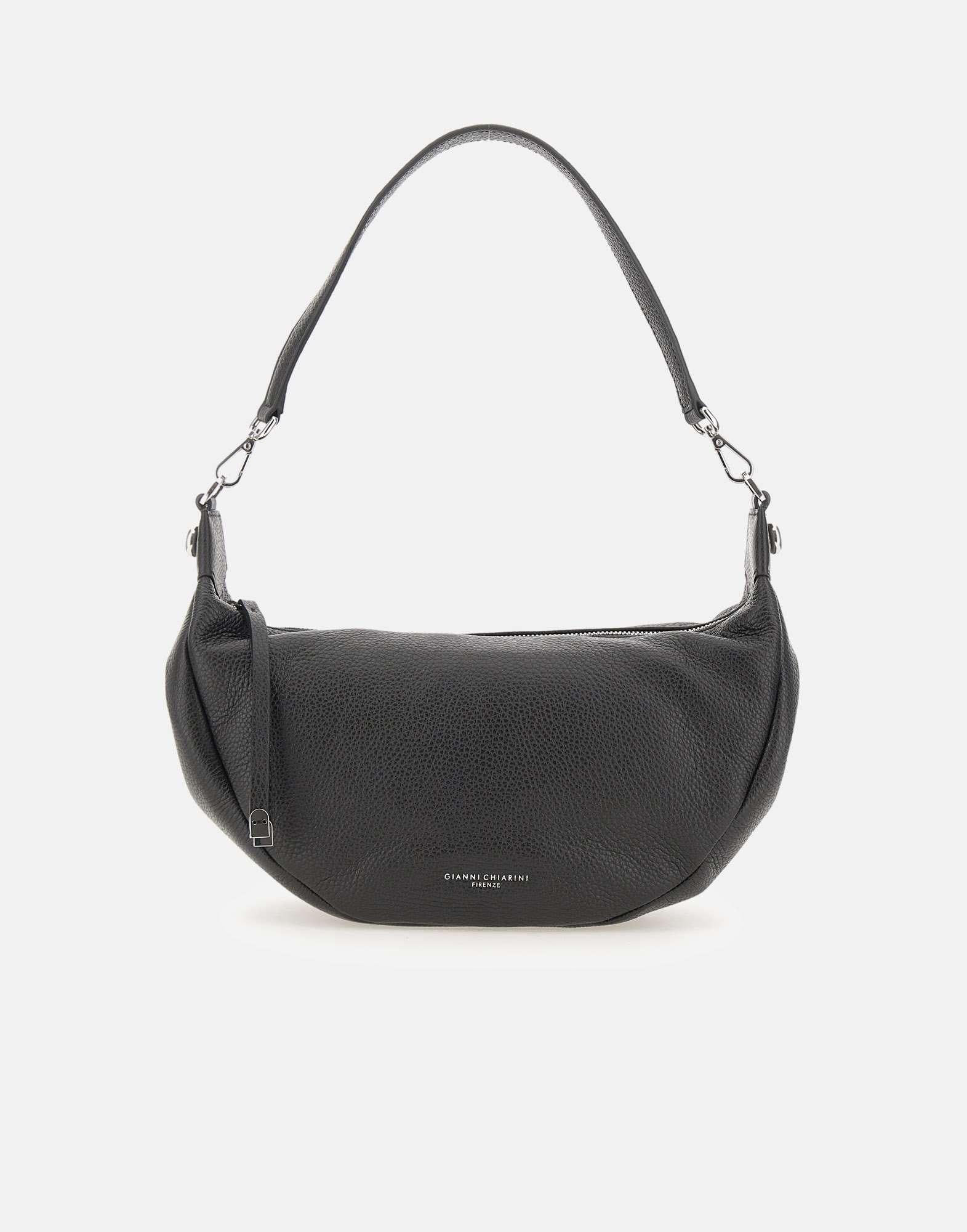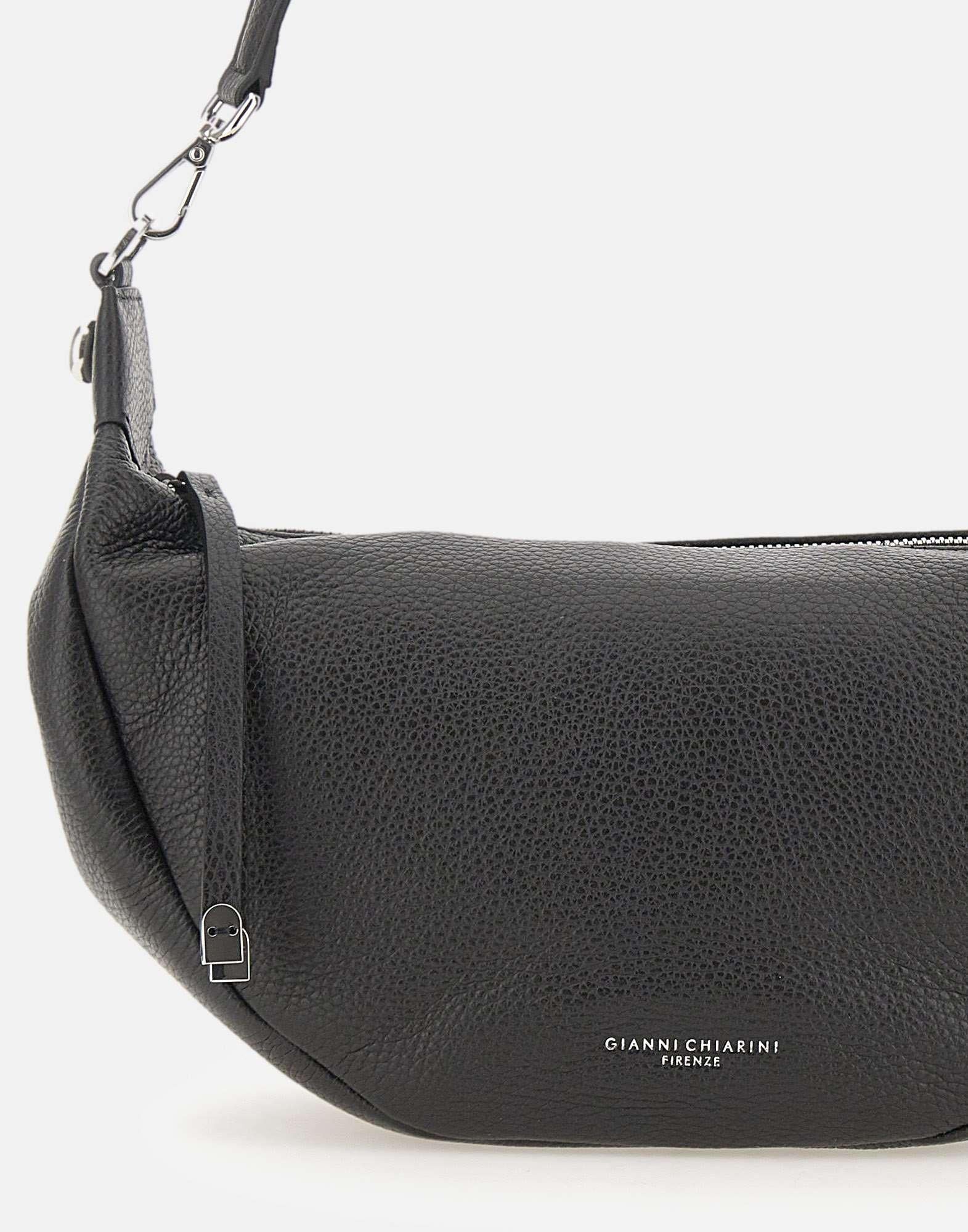 Borsa a spalla Gianni Chiarini "Aisha" in pelle, colore nero, chiusura con zip, tracolla removibile e regolabile in tessuto lunga 90cm, logo silver impresso sul fronte, forma a mezzaluna, due tasche interne di cui una con zip e patch logo. Fodera interna. Dustbag inclusa.
