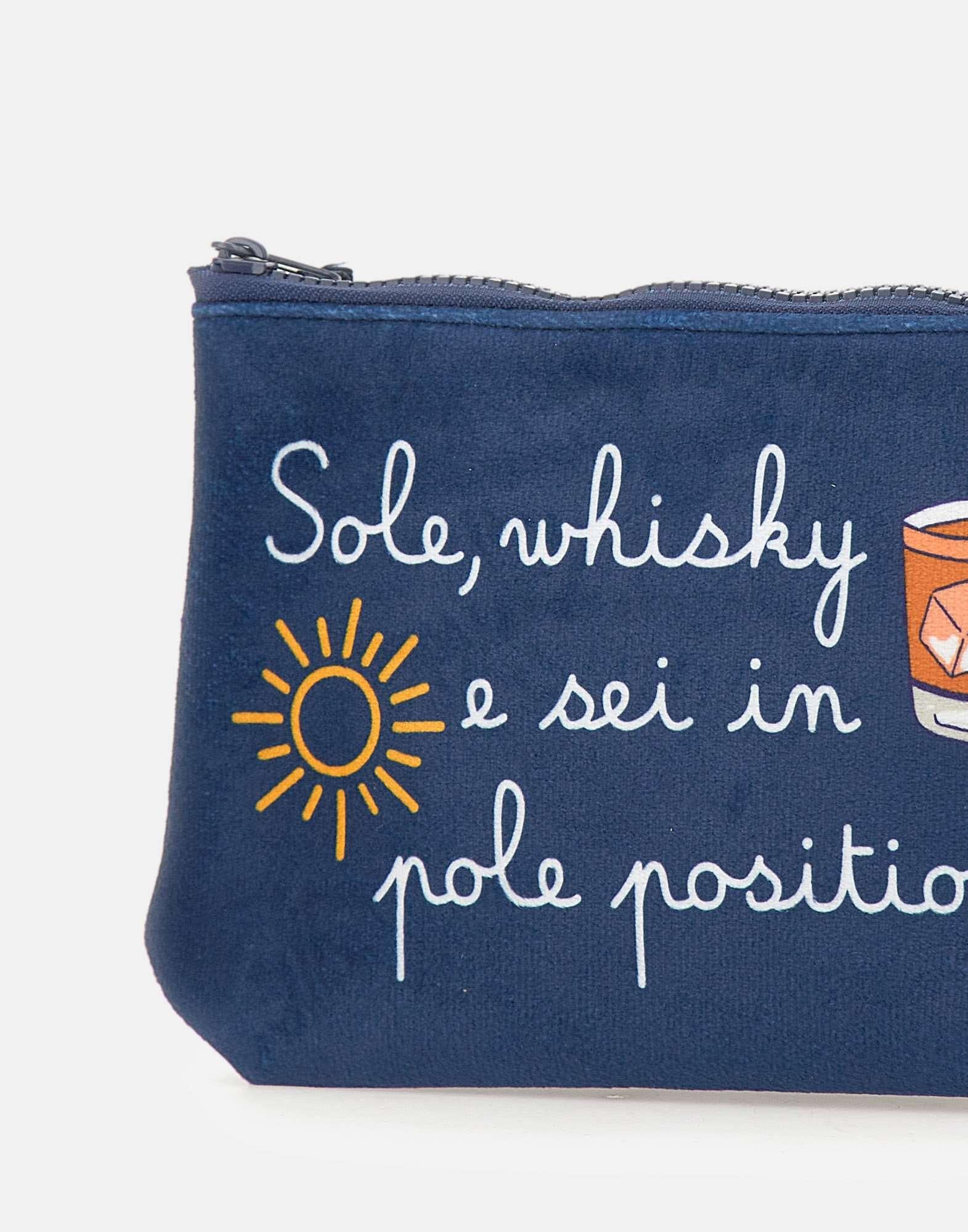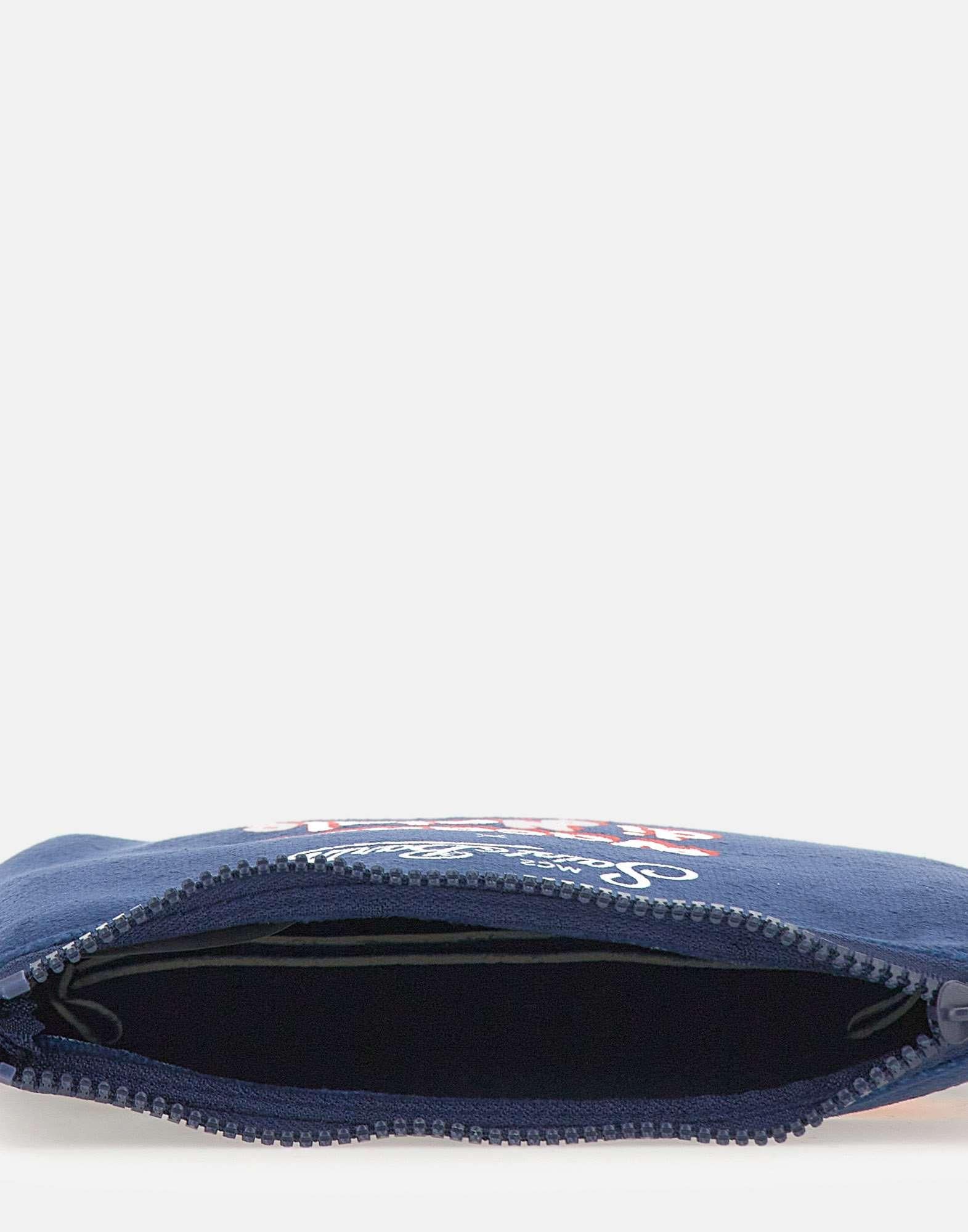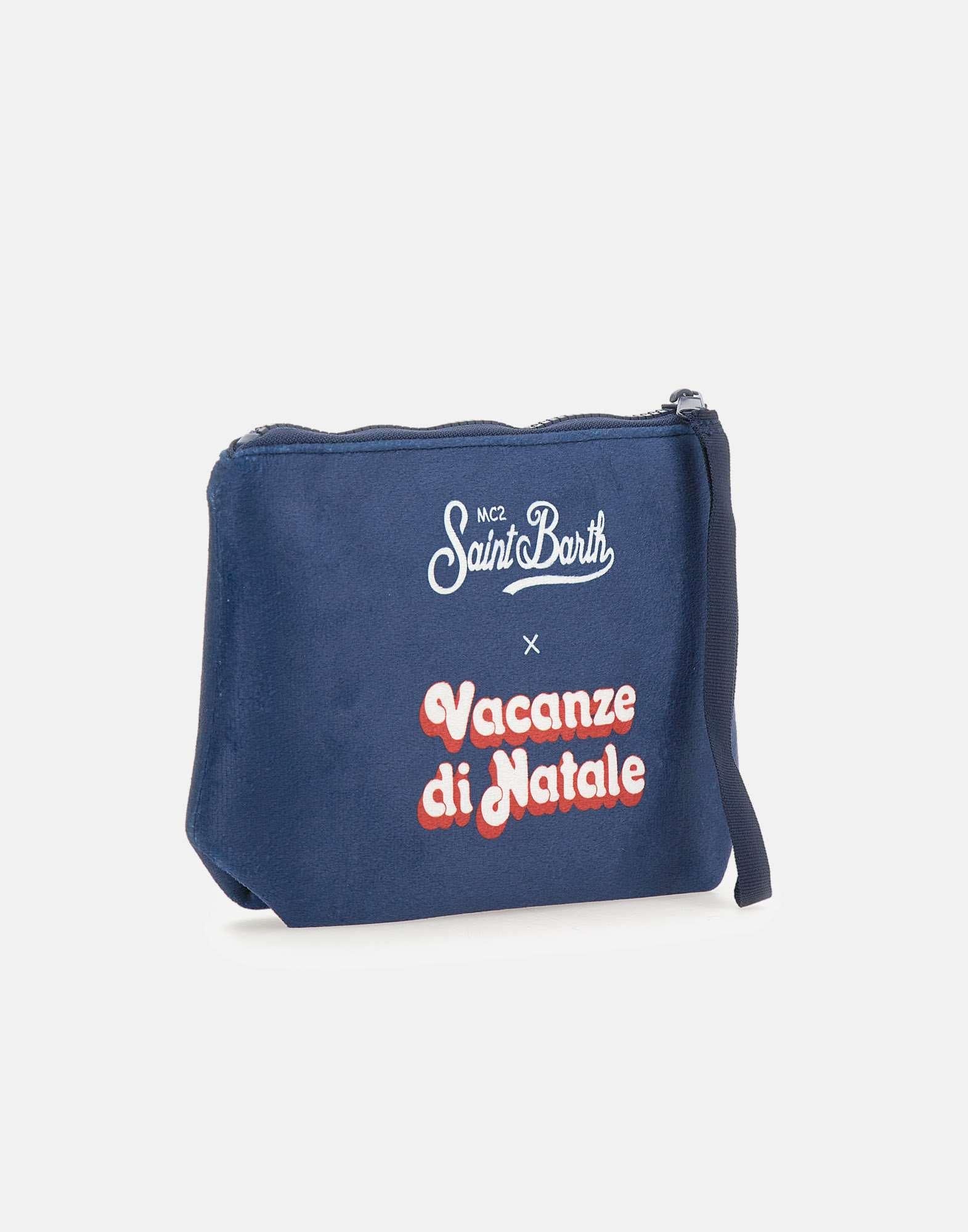 Pochette "Aline Vacanze Pole Position" Vacanze Di Natale Limited Edition, blu, realizzata in tessuto super morbido effetto velluto. Caratterizzata da loghi a contrasto sul fronte e sul retro e chiusura superiore con zip. Un accessorio iconico e versatile, perfetto per aggiungere un tocco distintivo a ogni look.