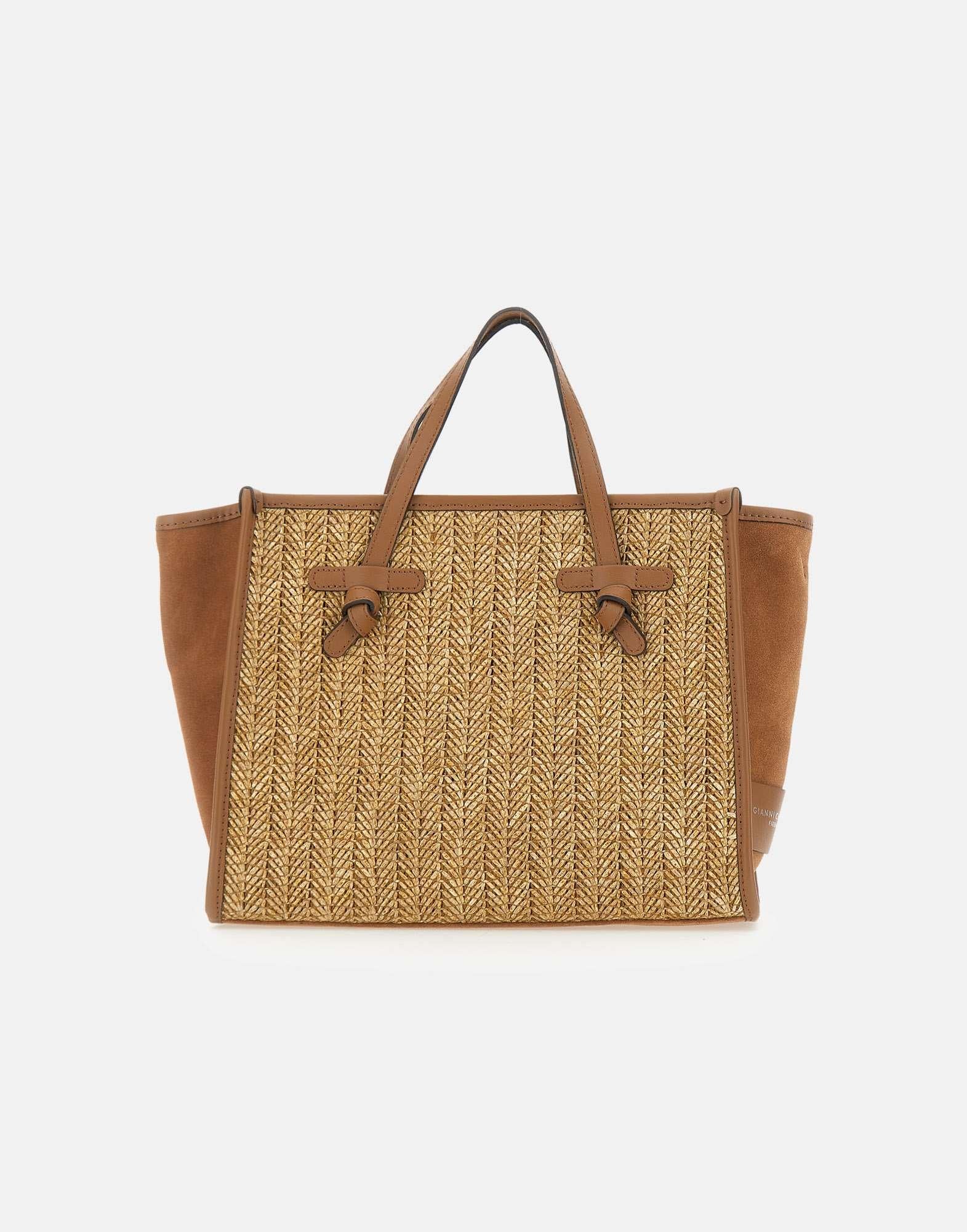 Borsa a mano donna Marcella Club Gianni Chiarini "MissMarcella 32" realizzata in paglia intrecciata beige, con lati e base in pelle scamosciata marrone e dettagli in pelle liscia coordinati. Presenta chiusura superiore con zip, due manici per portarla a mano e tracolla in pelle regolabile e removibile per indossarla a tracolla. Sul lato è applicato un patch logo in pelle, mentre l'interno è organizzato con due tasche applicate e una tasca con zip. Include dust bag. Made in Italy. Dimensioni: 32x25x11 cm.