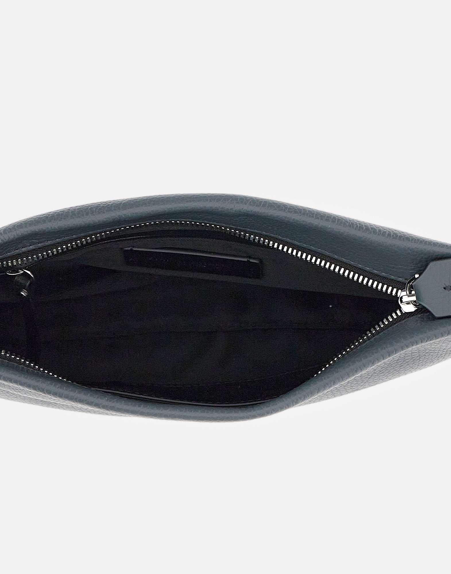 Borsa a mano Gianni Chiarini "Brenda" in pelle martellata, grigio blu notte, chiusura con zip, galvanica silver, tracolla regolabile e removibile 90cm circa,manico a catena per la portabilità a spalla, tasche interne, misure altezza 20cm, lunghezza 30cm, 5cm profondità, dustbag inclusa.