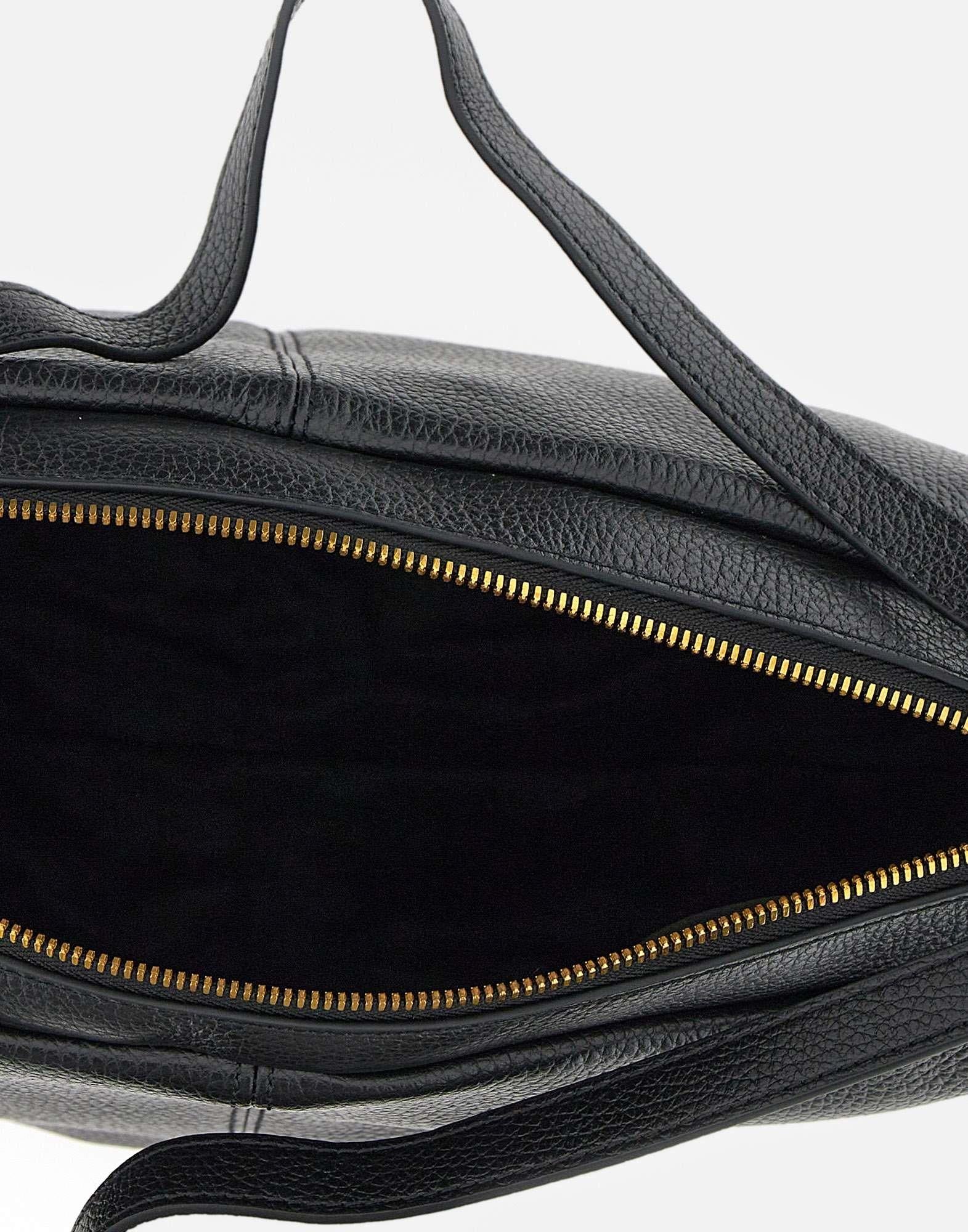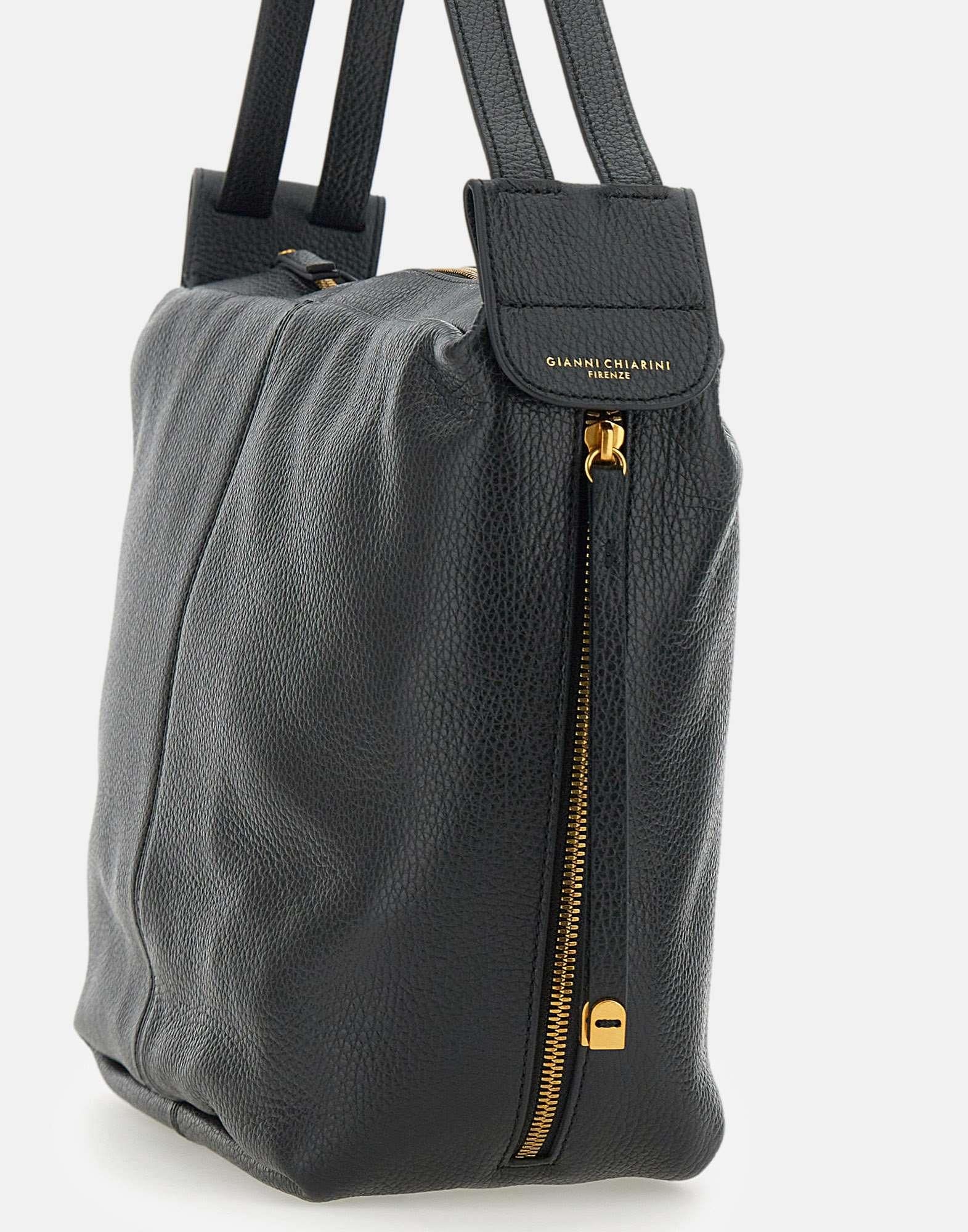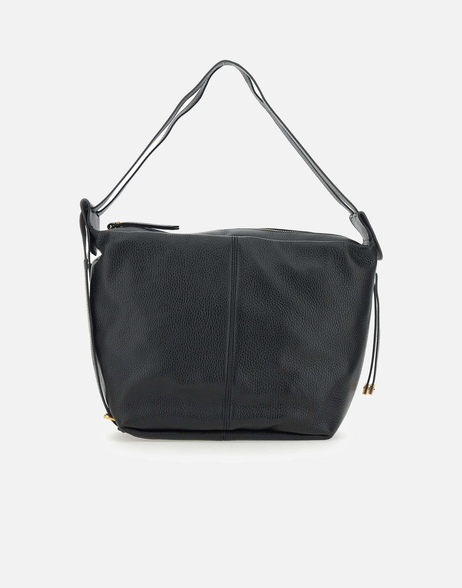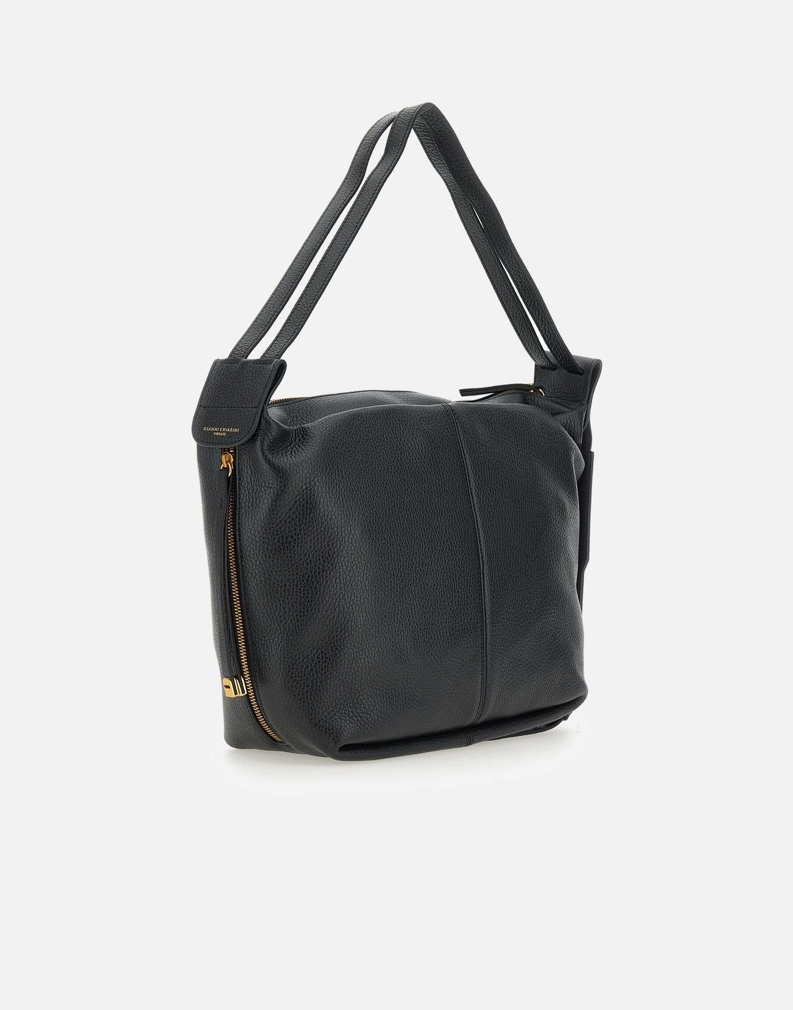 Borsa a spalla "Guia" Gianni Chiarini in pelle grana maxi, colore nero, doppio manico superiore, chiusura con zip, galvanica oro, cinturini decorativi con fibbie gold, scomparto unico, tasca interna con zip, misure: altezza 27cm, lunghezza 26cm alla base, 13cm profondità , made in Italy.