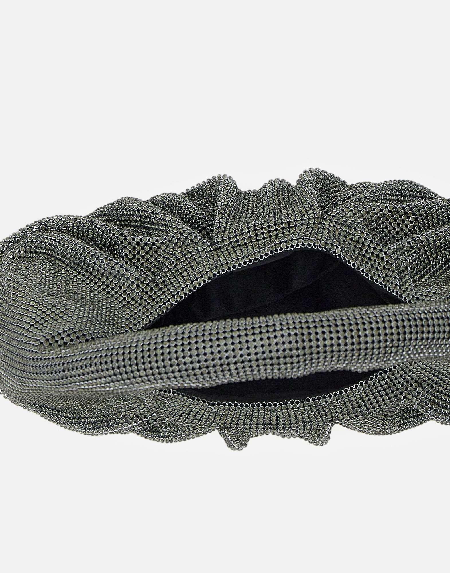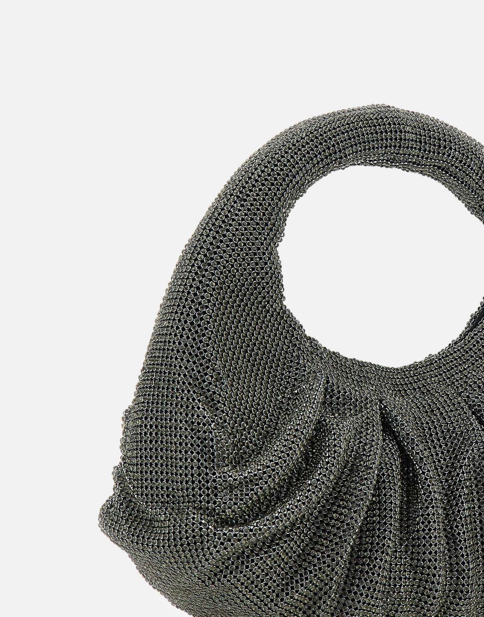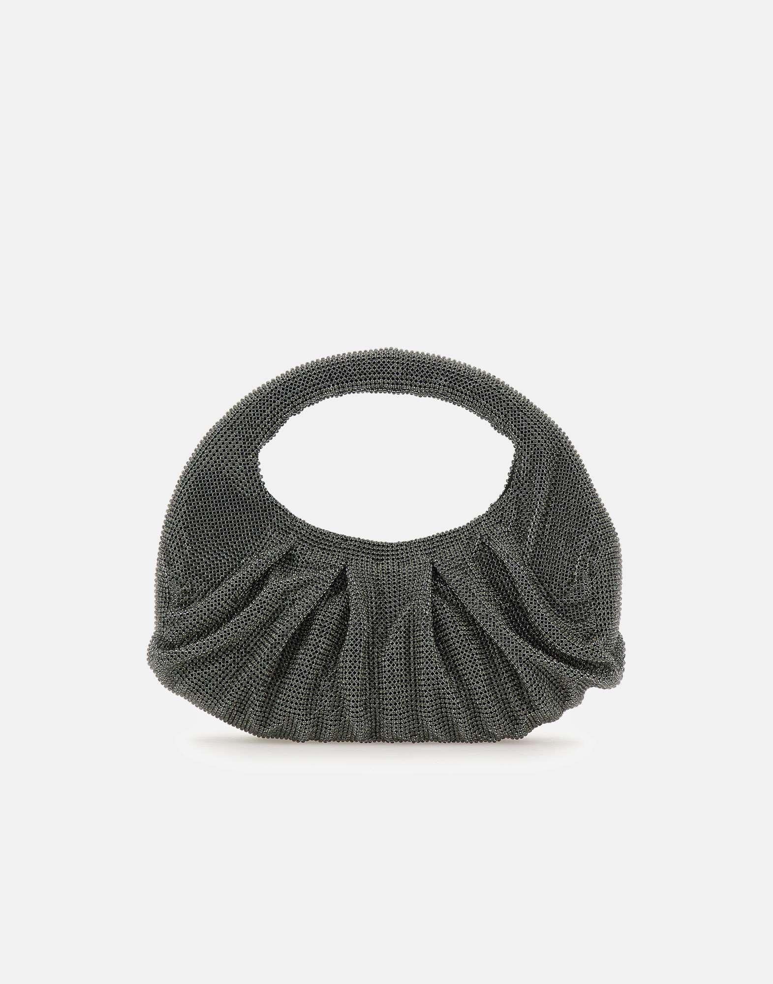 Borsa a mano Twentyfourhaitch "Joan", realizzata in maglia di strass grigio dal design brillante e sofisticato.