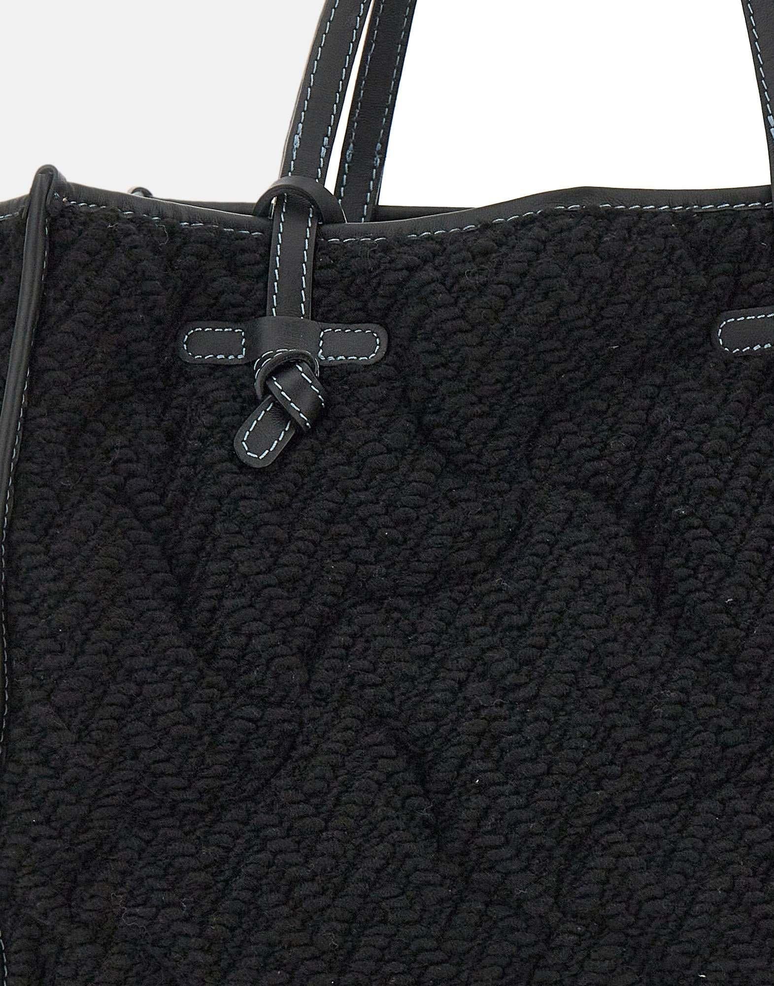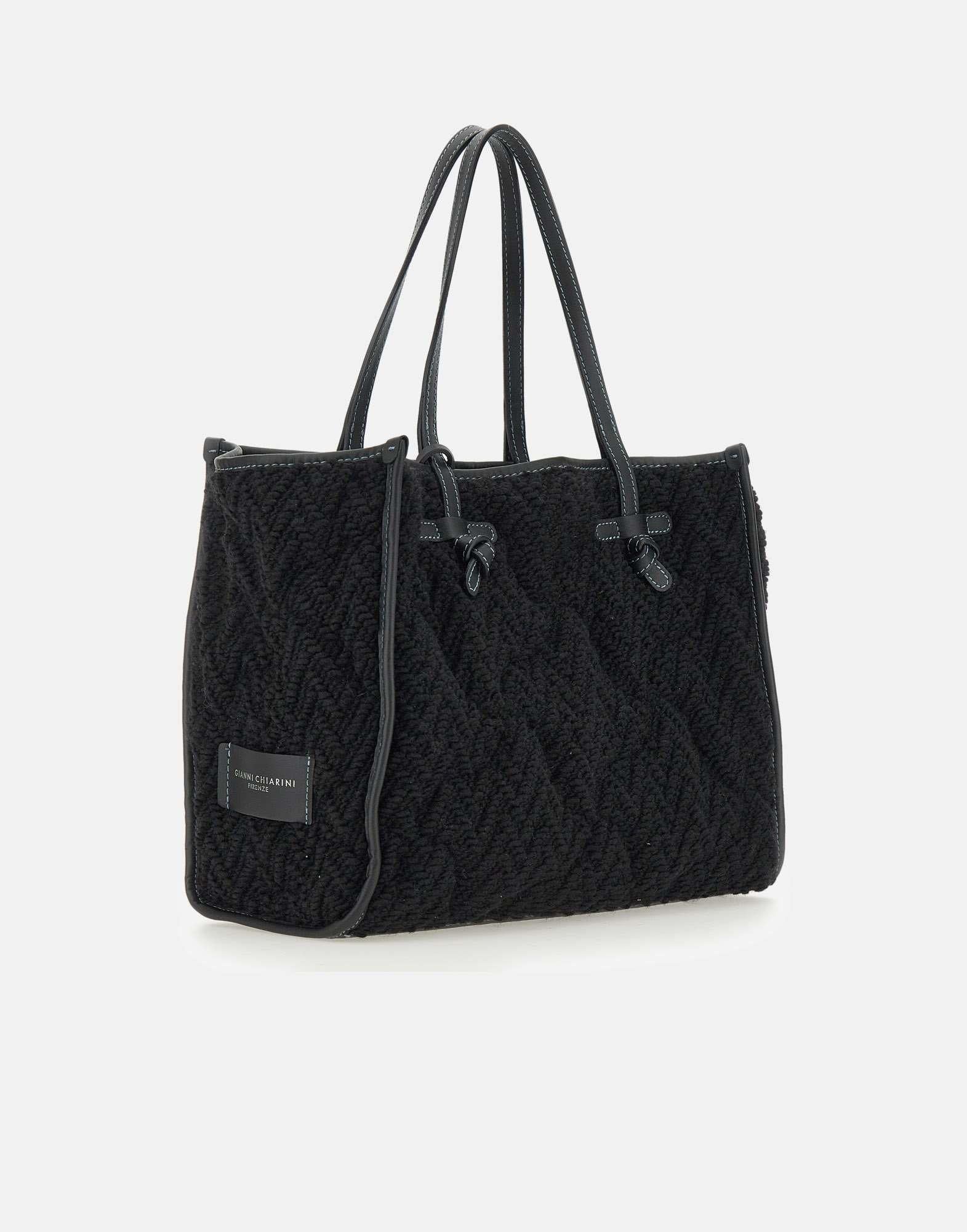 Borsa a spalla "Marcella" Marcella Club Gianni Chiarini , colore nero, in tessuto effetto lana operata, profili in pelle tono su tono, super capiente e comoda, interno con fodera trapuntata, pochette inclusa, doppio manico superiore, logo esterno laterale, dustbag inclusa. Dimensioni: 30cm altezza, 38cm lunghezza, profondità max 16cm. Made in Italy. Dustbag inclusa