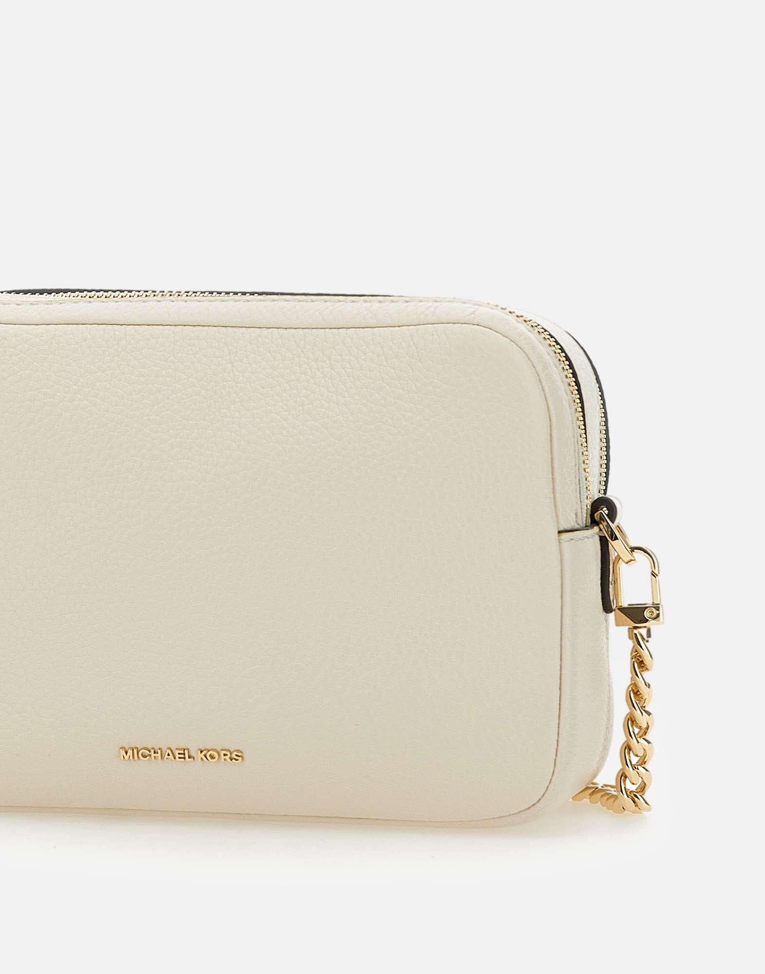 "Bryant camera bag" Michael Michael Kors, burro, in pelle martellata, doppio scomparto chiuso da zip, galvanica oro, logo frontale, tracolla regolabile e removibile, tracolla a catena, tasca esterna a bustina, misure: lunghezza 21cm, altezza 14 cm, profondità 8 cm