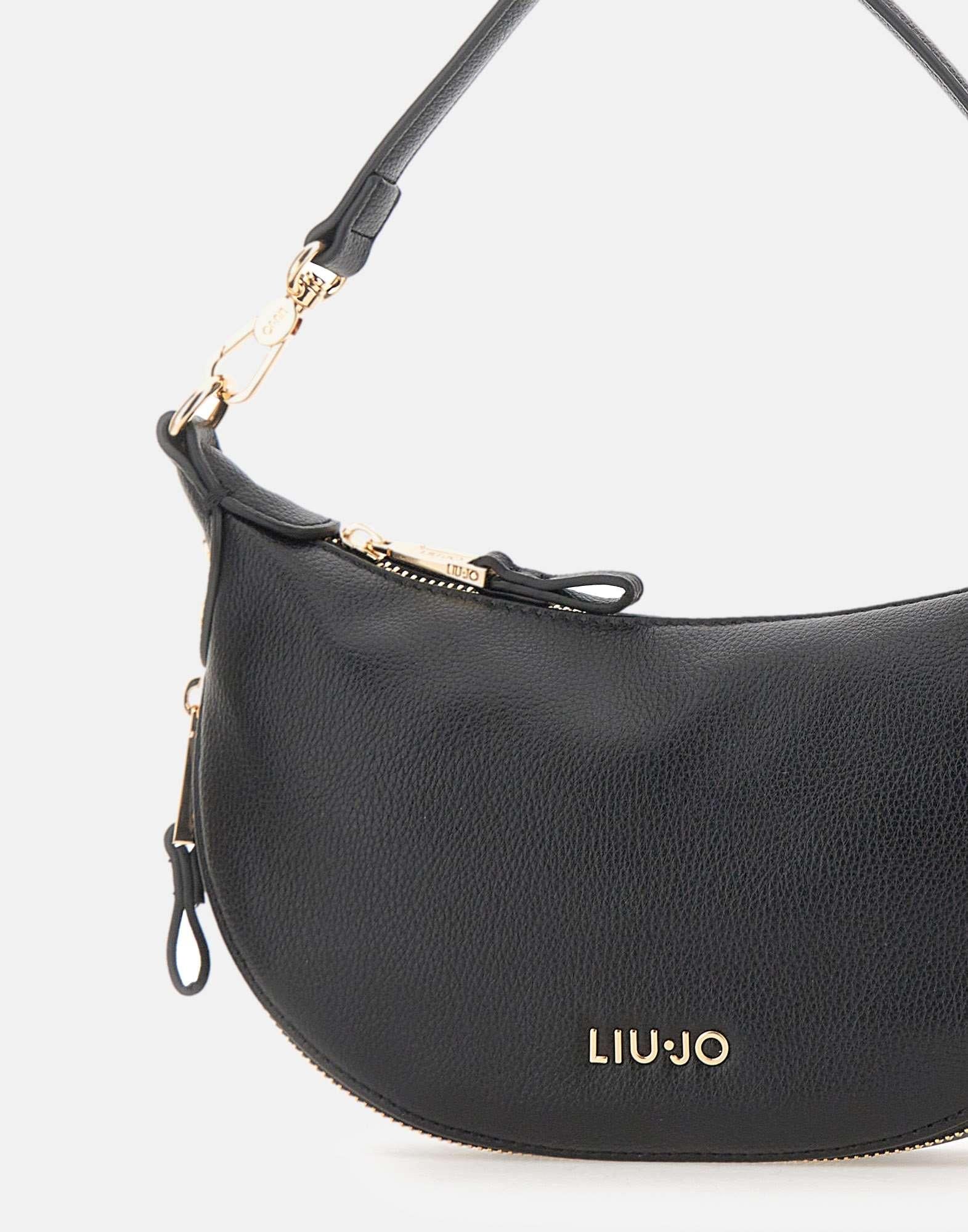 Borsa a spalla Liu-Jo "Kaliska", colore nero, realizzata in materiale sintetico effetto pelle super morbida. Caratterizzata da un design versatile ed espandibile, presenta manico superiore removibile e tracolla a nastro regolabile e staccabile. La chiusura superiore con zip è completata da dettagli in metalleria dorata e logo frontale. Linterno è foderato in tessuto e dotato di pratiche tasche. Fornita di dustbag logata. Dimensioni: 25x7x15 cm.