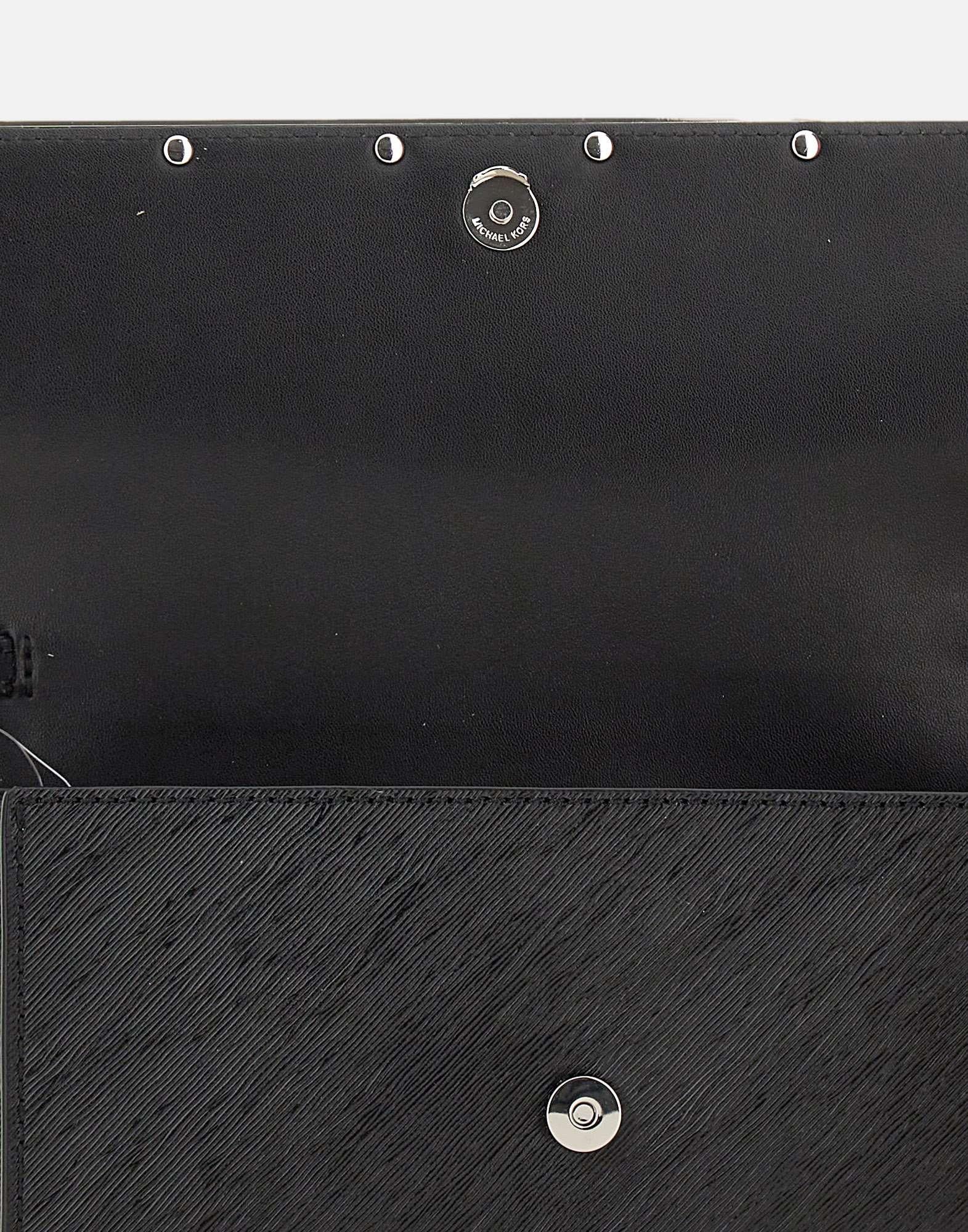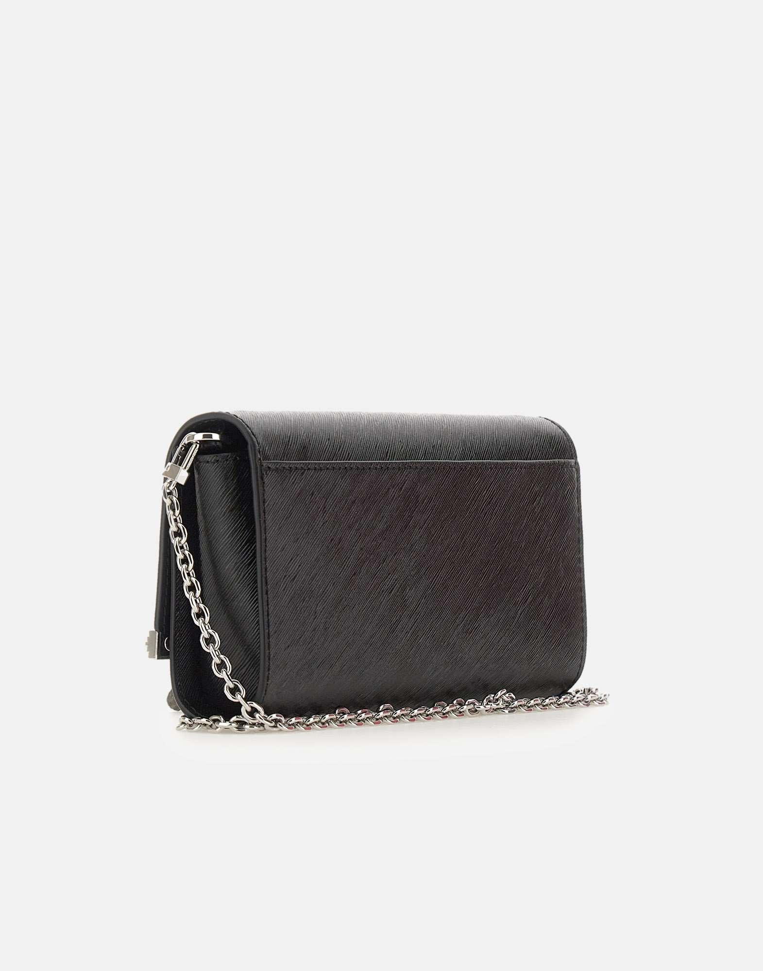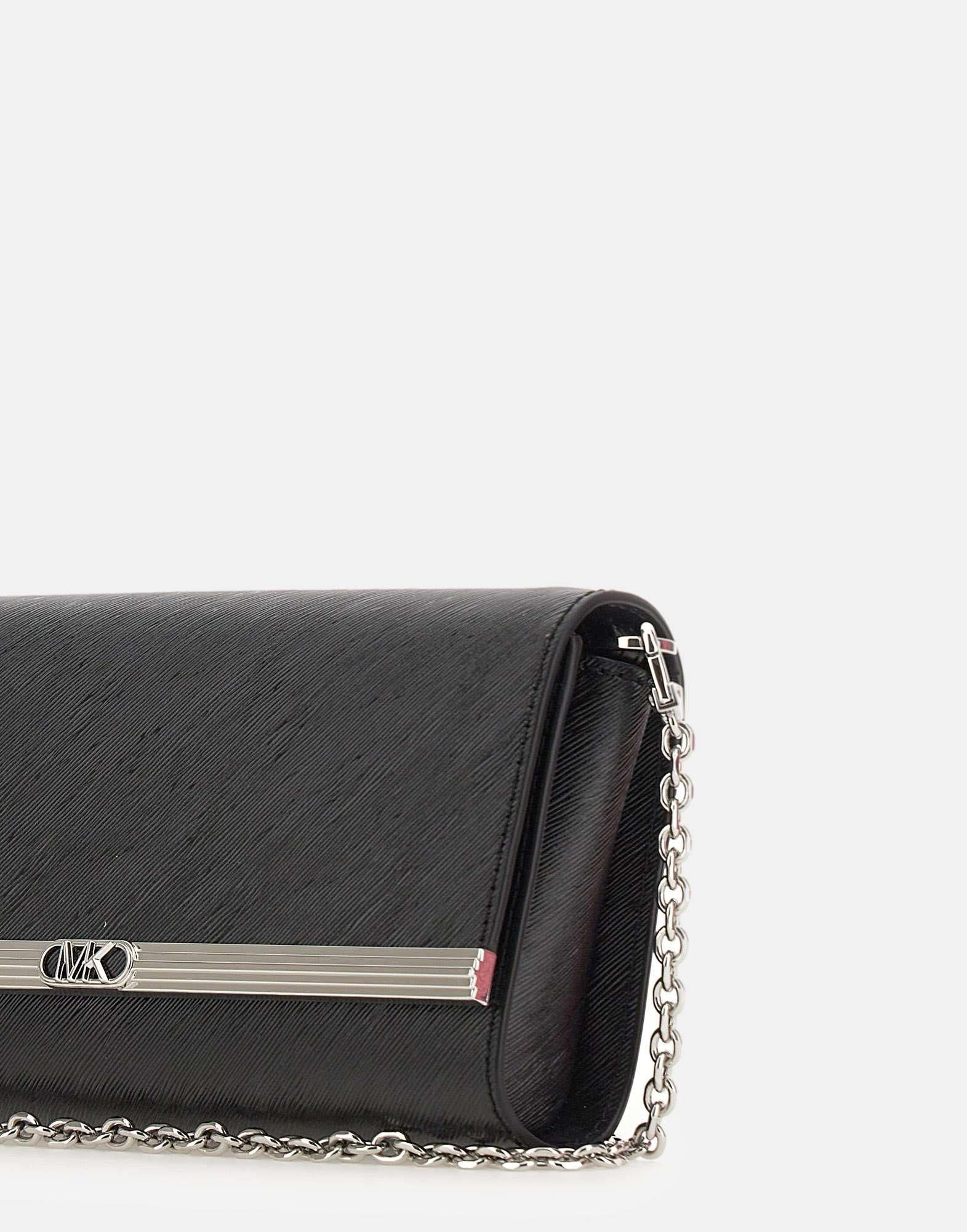 Borsa Michael Michael Kors "Mona" in materiale effetto pelle colore nero, dal design elegante e compatto. Dotata di tasca aperta sul retro, chiusura con patta e calamita e tracolla removibile in metallo dorato lucido (lunghezza circa 110 cm). L’interno in poliestere logato presenta uno scomparto principale e una tasca interna. Rifinita con dettagli metallici dorati, aggiunge un tocco sofisticato a ogni look. Dimensioni: 22x12x4 cm. Peso: 0,4 kg.