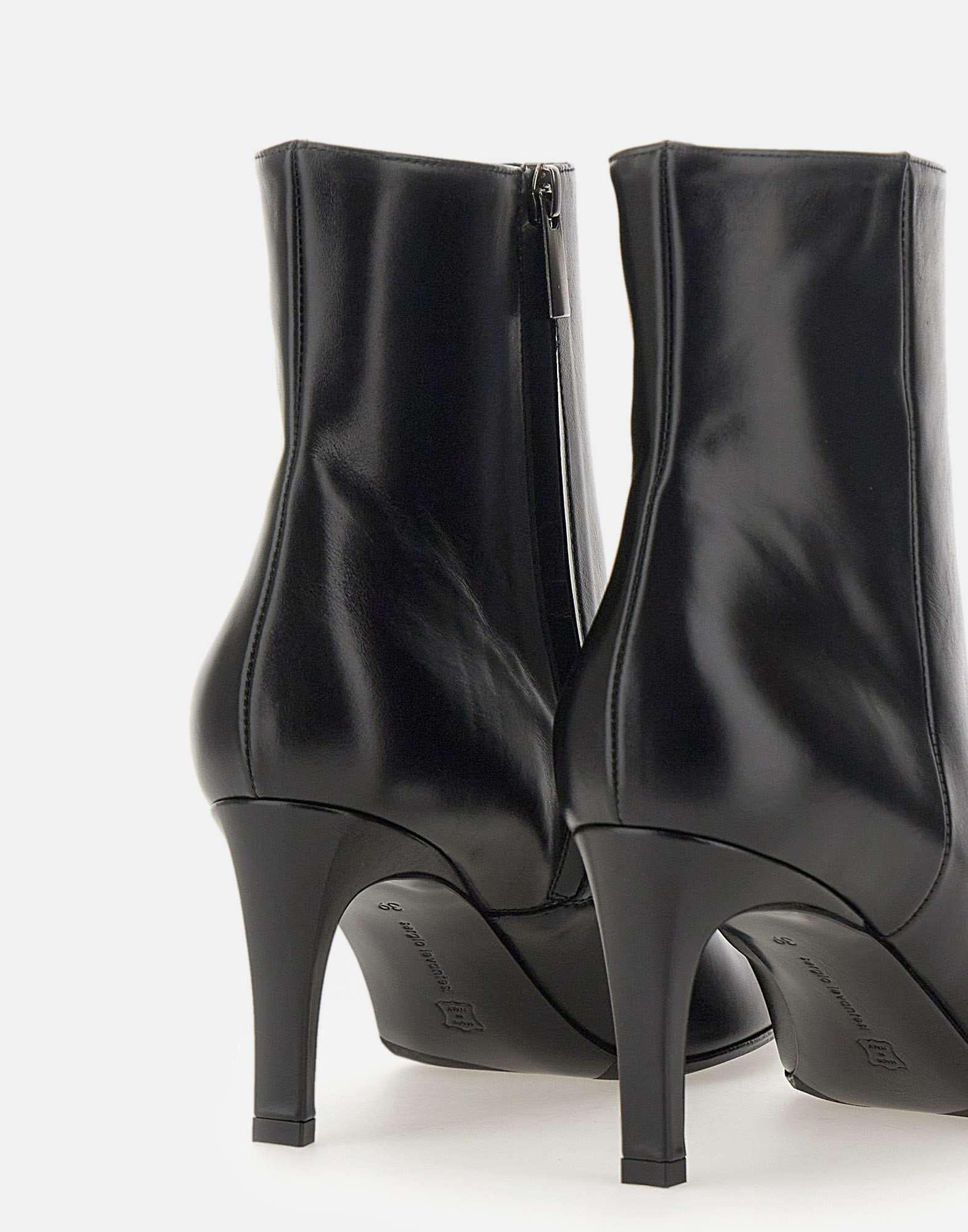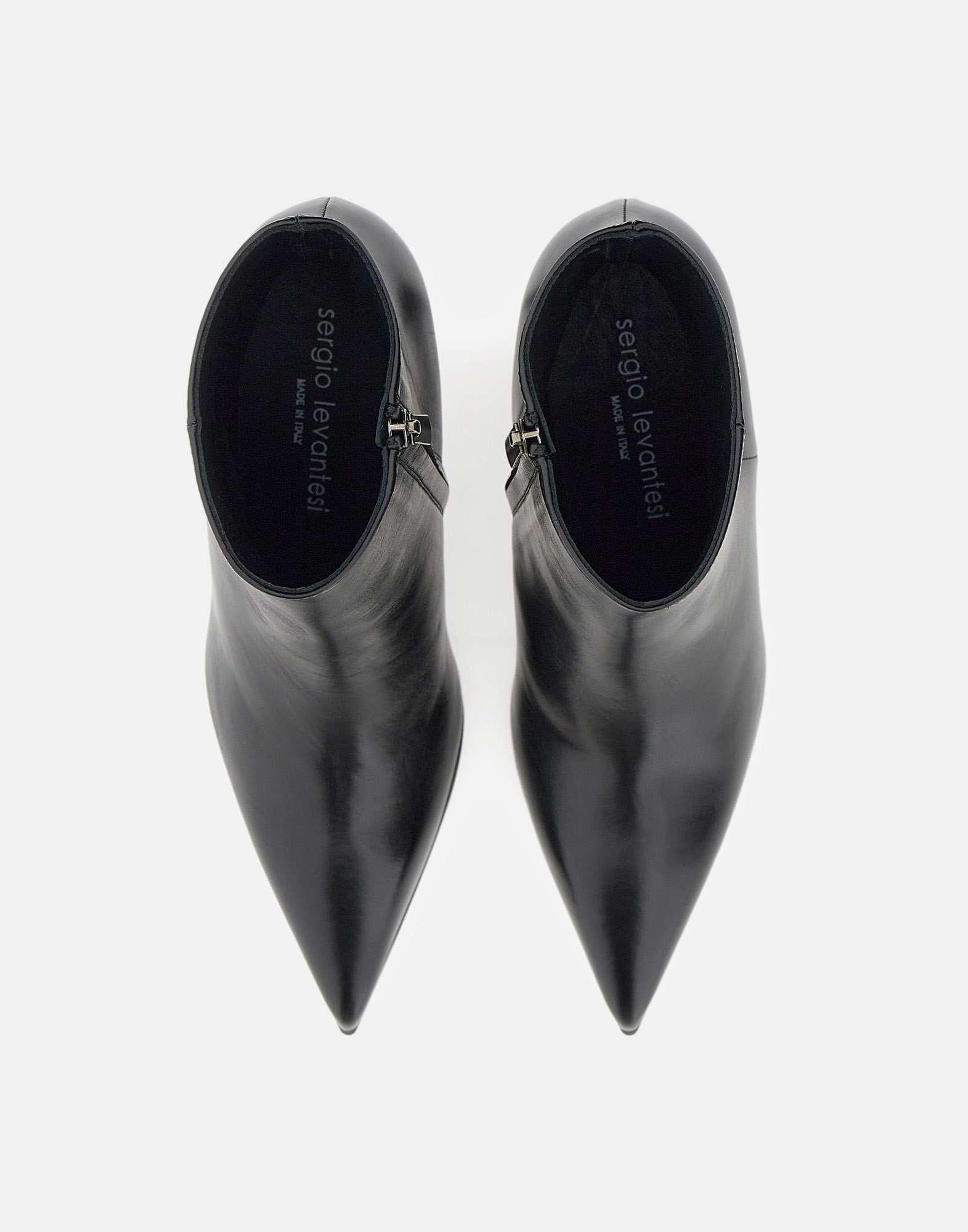 Stivali "Giusta56" Sergio Levantesi rappresentano l'eleganza senza tempo del Made in Italy. Realizzati in pregiata pelle buffalo nera, questi tronchetti a punta sono perfetti per completare con stile qualsiasi outfit, dal casual chic al più formale. Dotati di zip laterale per una calzata facile e veloce, presentano una linea affusolata che slancia la figura. Il tacco da 8 cm garantisce il giusto equilibrio tra femminilità e comfort, mentre linterno in pelle assicura una sensazione di qualità e morbidezza a ogni passo. Calzata regolare