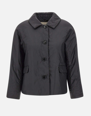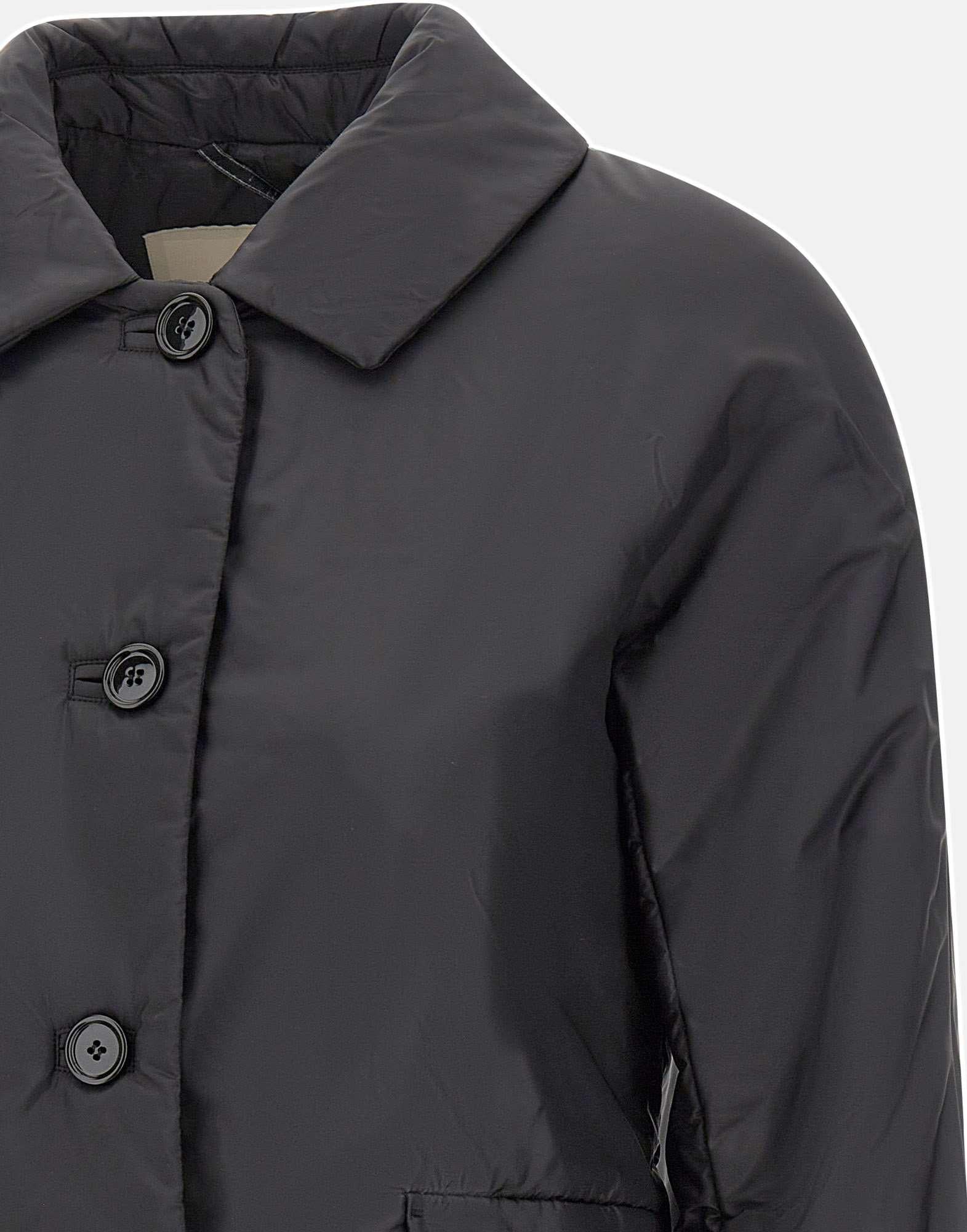 Giacca "Greens" Max Mara The Cube, colore nero, in tela antigoccia, linea leggermente svasata, colletto classico, maniche a kimono, imbottitura Cameluxe con seta,chiusura frontale con bottoni, tasche anteriori con patta, inclusa shopping bag da viaggio con logo "Max Mara The Cube", regular fit