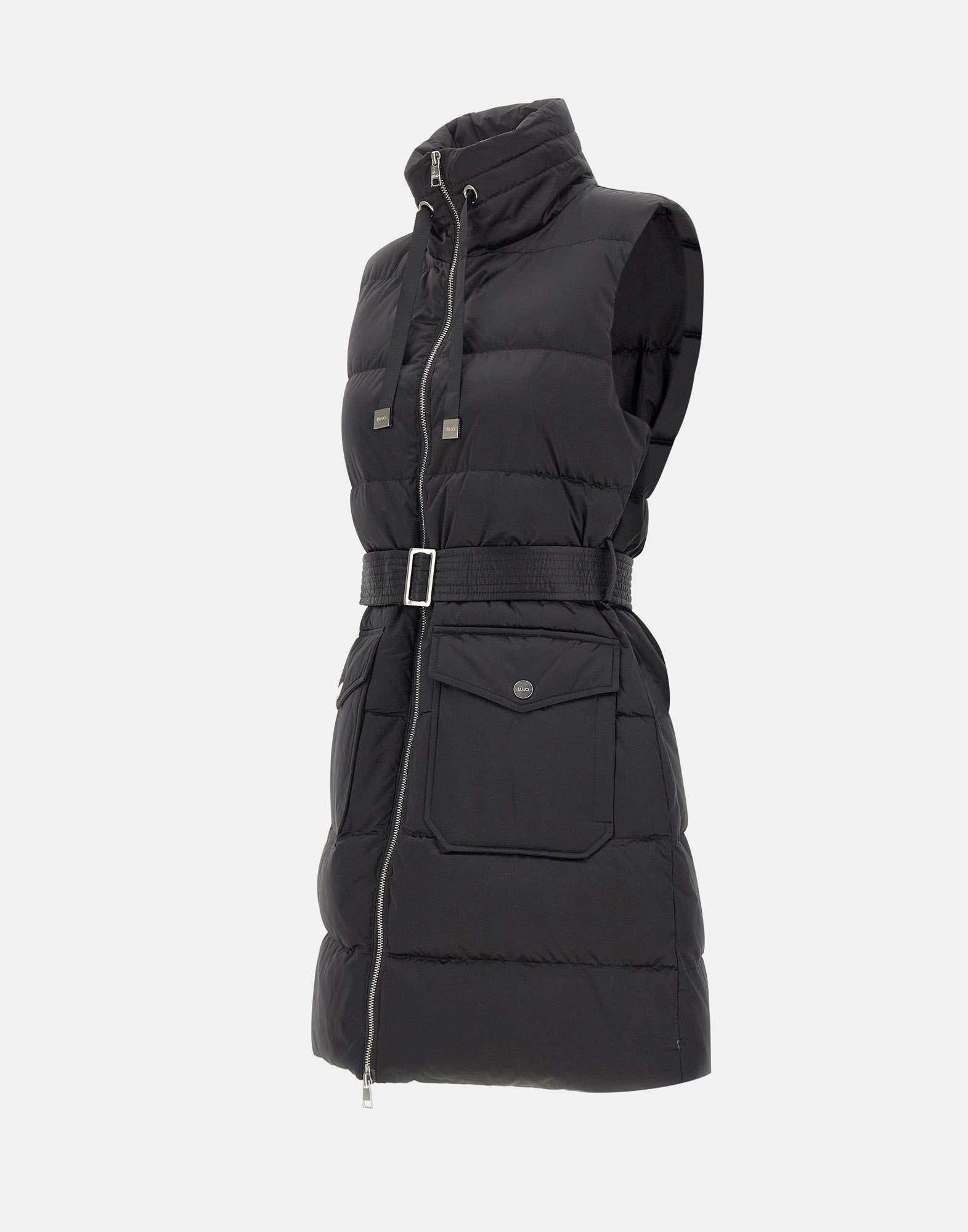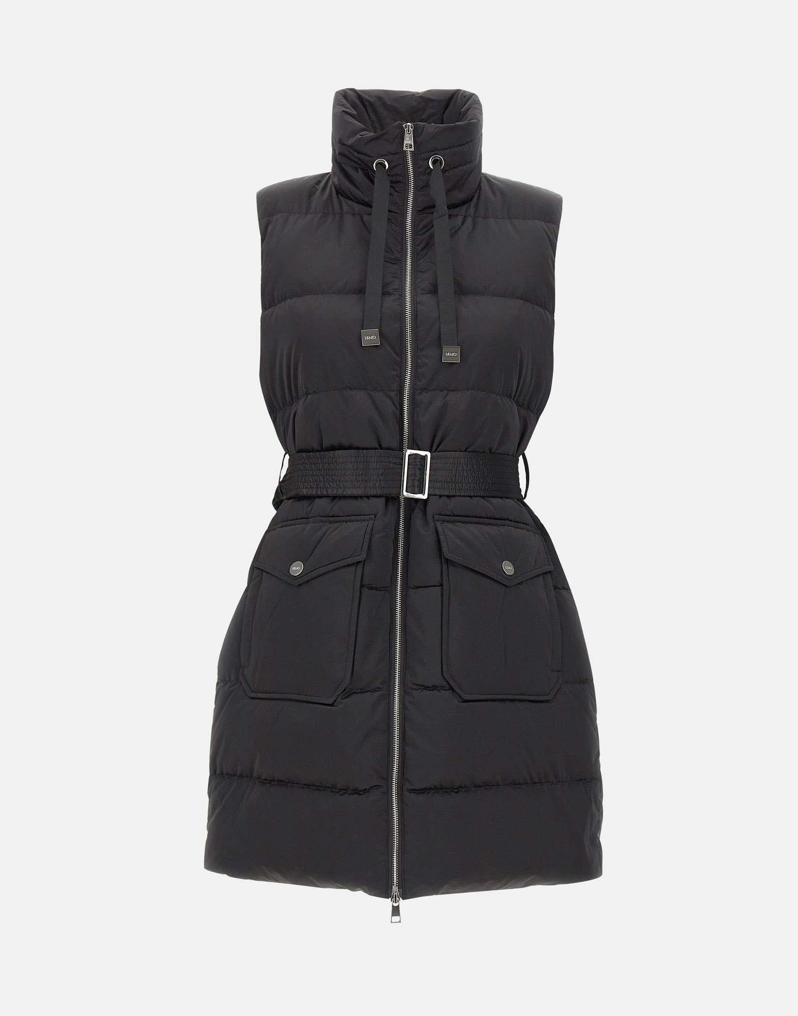 Gilet imbottito donna LiuJo, in nylon nero trapuntato, proposto in un modello lungo che unisce praticità e stile contemporaneo. Presenta colletto con coulisse logata, ampie tasche frontali con patta e cintura elastica in vita che definisce la silhouette. La chiusura con zip a doppio cursore a contrasto aggiunge un dettaglio moderno e funzionale. Un outerwear versatile, ideale per la stagione fredda.