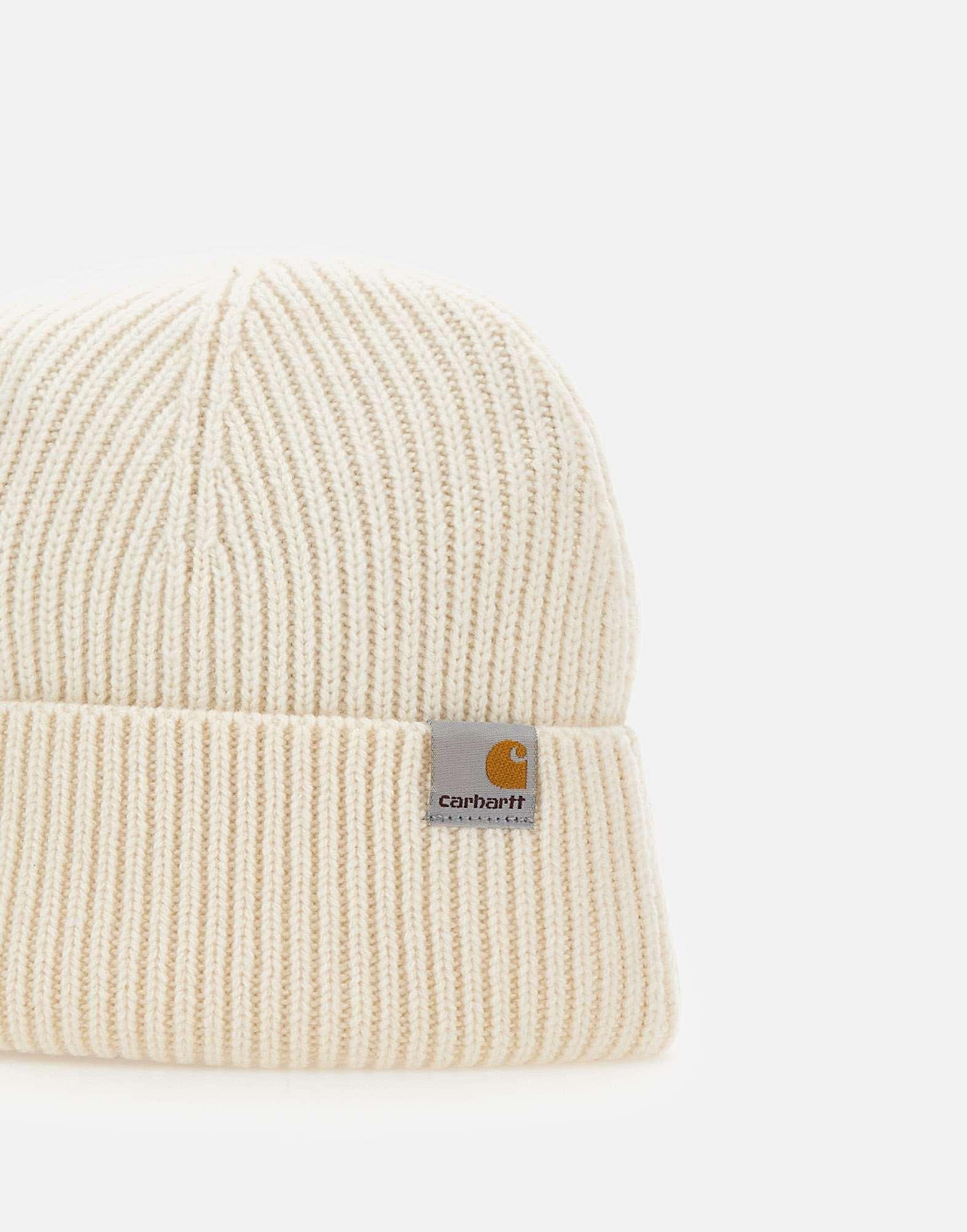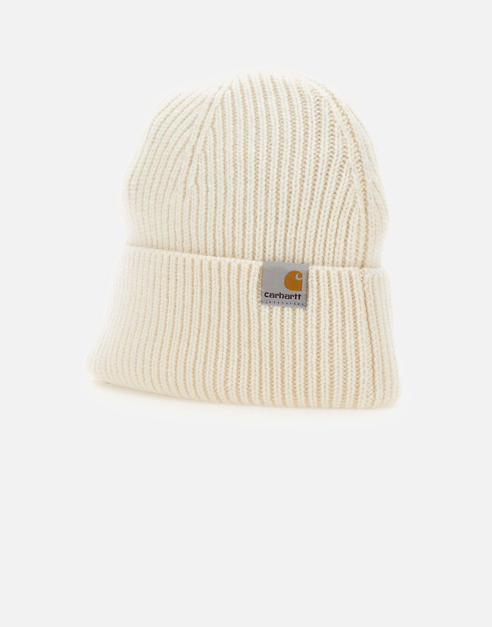Beanie Carhartt WIP "Gabe" panna è realizzato in morbido misto lana-cashmere a finezza 5, con lavorazione a coste elasticizzata che assicura comfort e vestibilità. Il design con risvolto è rifinito dall’etichetta in tessuto logata, dettaglio iconico del brand. Un accessorio taglia unica che unisce calore, essenzialità e stile contemporaneo.