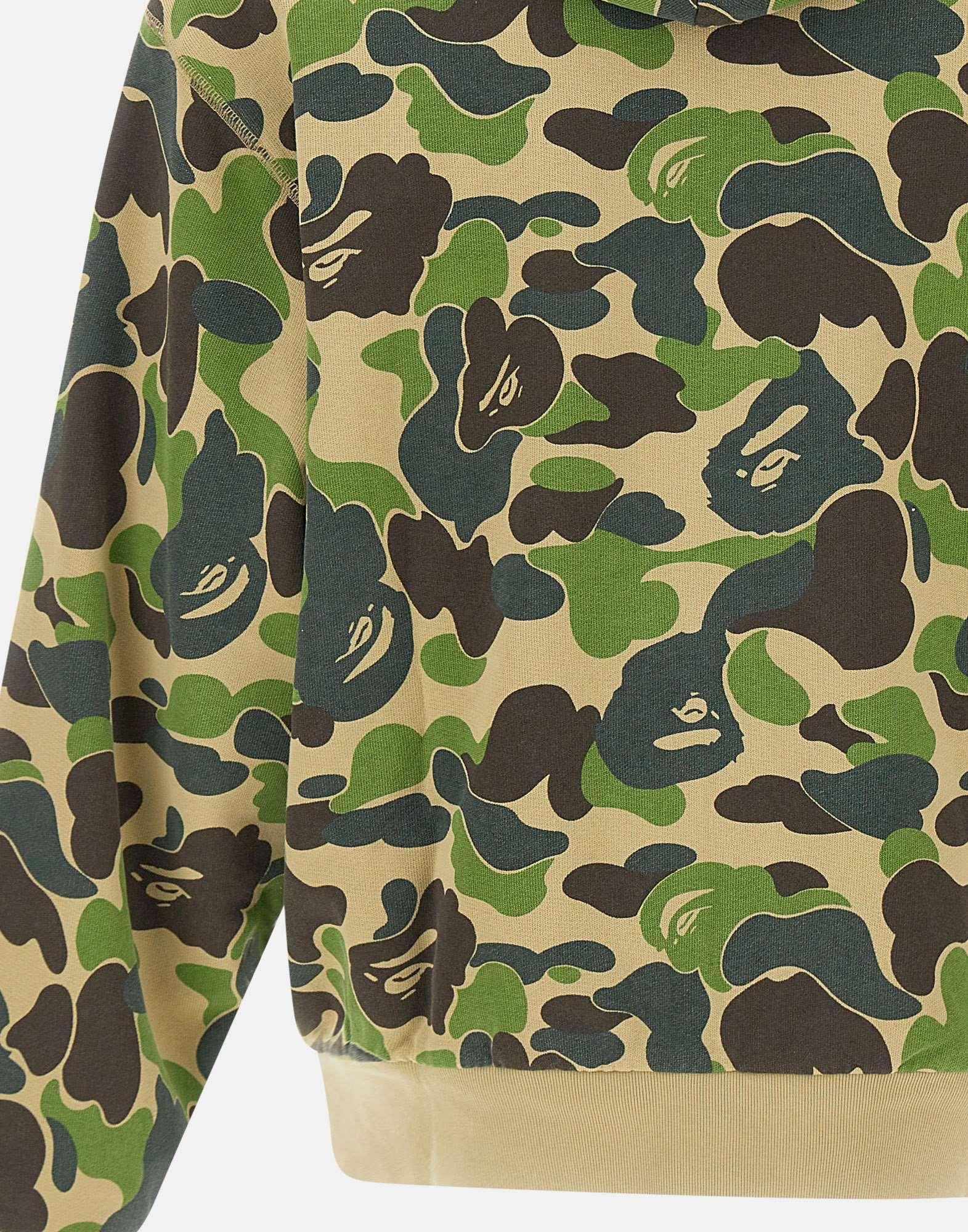 Felpa uomo Bape "ABC Camo Heavy Wash" realizzata in una pregiata miscela di cotone e poliestere, caratterizzata dal distintivo motivo mimetico ABC nei toni del verde che definisce l'estetica iconica del capo. Il modello presenta cappuccio e chiusura con zip a doppio cursore, pensati per unire funzionalità e stile contemporaneo. La silhouette corta dona un taglio moderno, ideale per look a strati nelle mezze stagioni. Completano il design le tasche laterali a marsupio, i polsini e il fondo a costine, per comfort e praticità quotidiana.