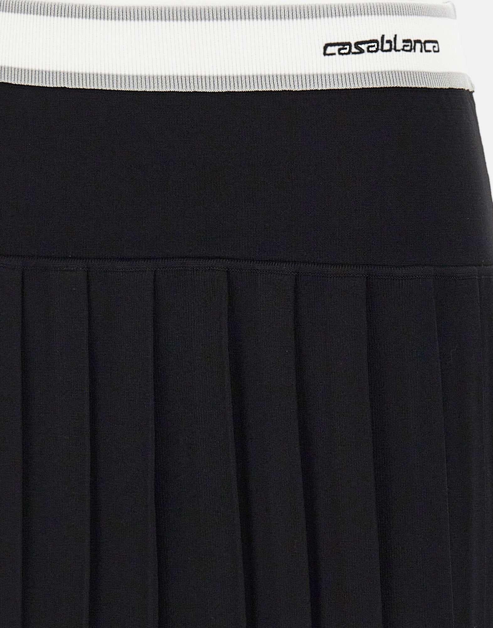 Minigonna Casablanca in tessuto nero con riga verde fluo sull'orlo, caratterizzata da una silhouette strutturata che interpreta con raffinatezza l'approccio sartoriale della maison allo sportswear. Completata da elastico in vita bianco e grigio con logo Casablanca ricamato, carré liscio e pannello plissettato. Un capo che unisce precisione sartoriale e spirito sportivo. Vestibilità slim.