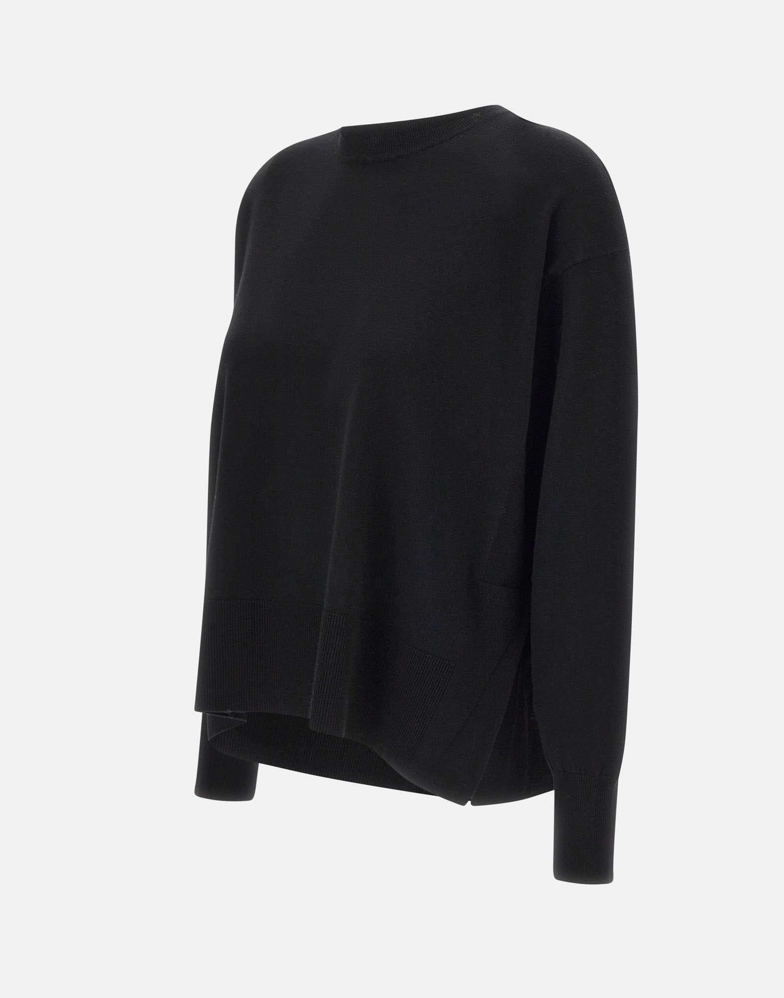 Maglia Kaos colore nero, un capo essenziale per la stagione fredda, realizzato in misto viscosa che assicura comfort senza rinunciare allo stile. Il design pulito e contemporaneo è valorizzato da un girocollo classico, maniche lunghe con spalle scese e dettagli ricercati come i polsini e il fondo a costine. Gli spacchi laterali aggiungono movimento alla silhouette e la vestibilità relaxed fit la rende perfetta da indossare con jeans, pantaloni sartoriali o gonne, per un look versatile e raffinato.