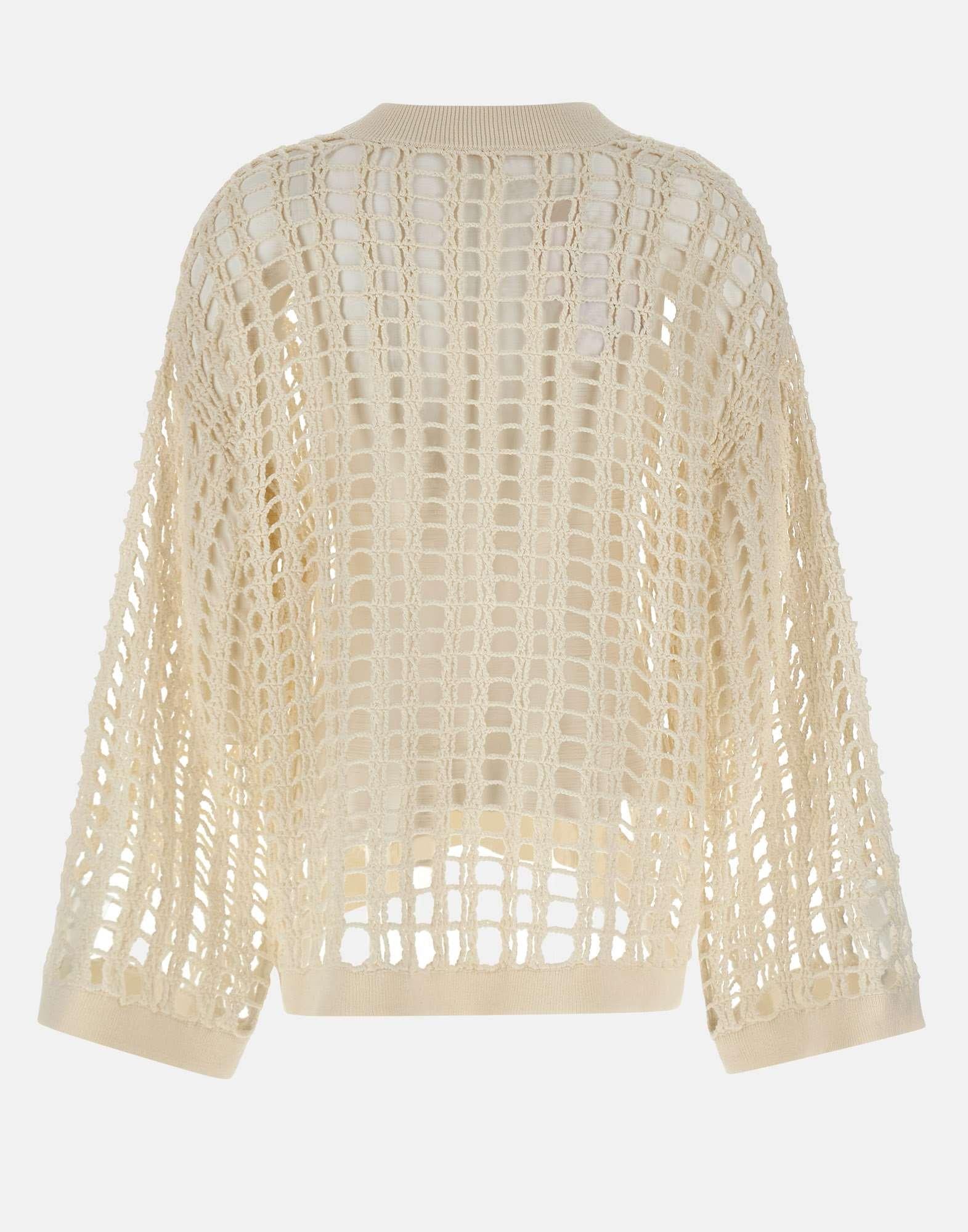 Maglia donna A. Roege Hove "Spider Knit" realizzata in cotone biologico bianco, caratterizzata da un'ampia lavorazione ad intreccio che crea un distintivo effetto ragnatela. Il modello presenta girocollo, orlo e polsini a costine e maniche lunghe e ampie che enfatizzano la linea. La vestibilità over dona un look contemporaneo e di forte personalità, ideale per outfit stratificati e ricercati.