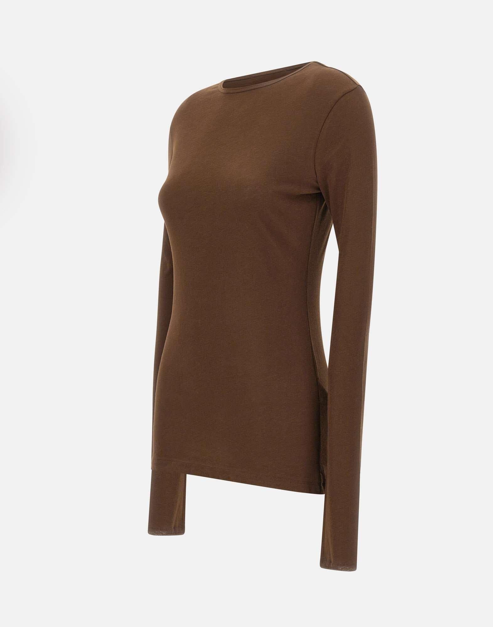 Maglia donna Entire Studios "Sheer Long Sleeve" realizzata in leggero cotone elasticizzato color testa di moro, pensata per un look essenziale e contemporaneo. Il design con maniche lunghe e girocollo mantiene una linea pulita, mentre il taglio lungo aggiunge versatilità nello styling. Vestibilità regular fit per un comfort naturale, ideale per outfit minimal.