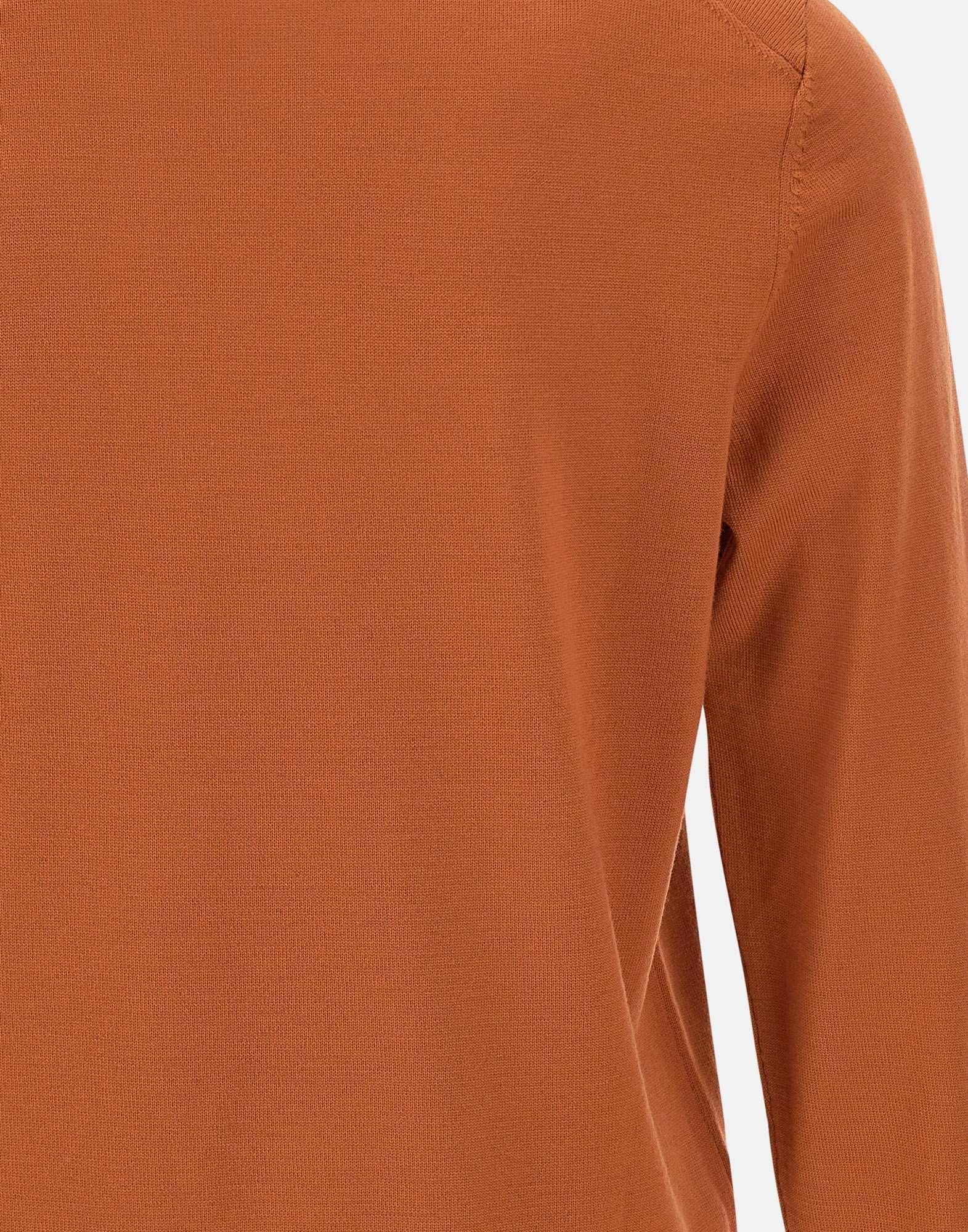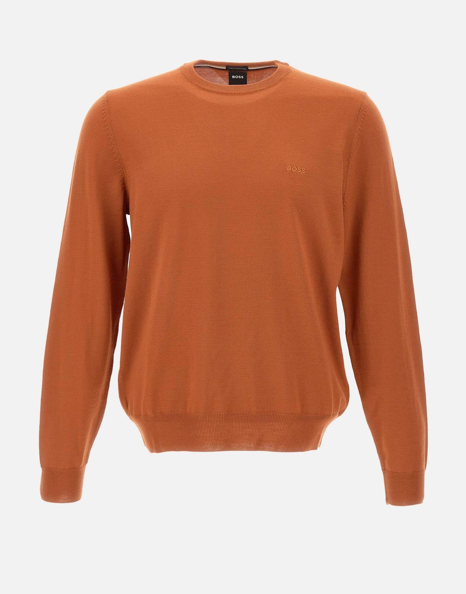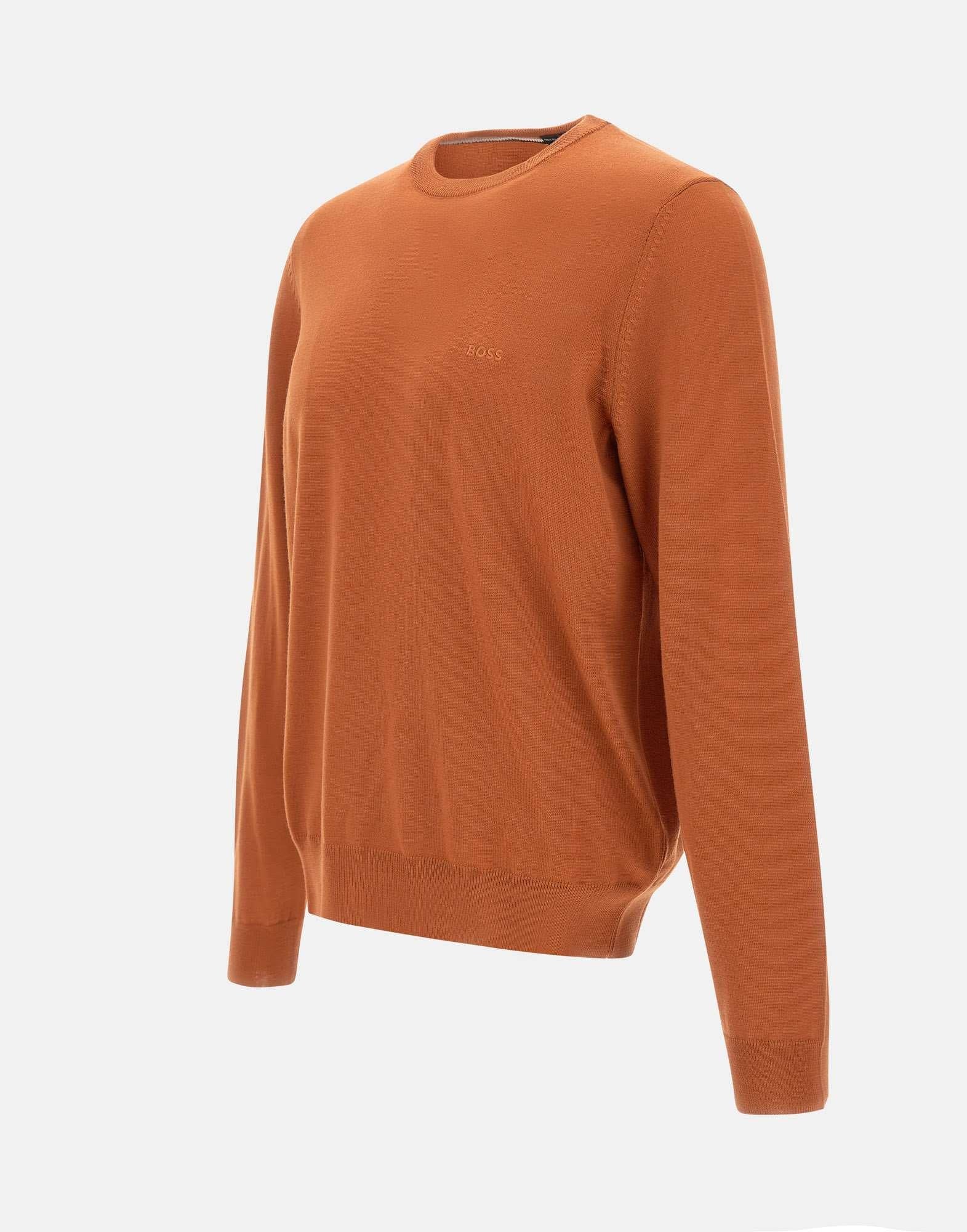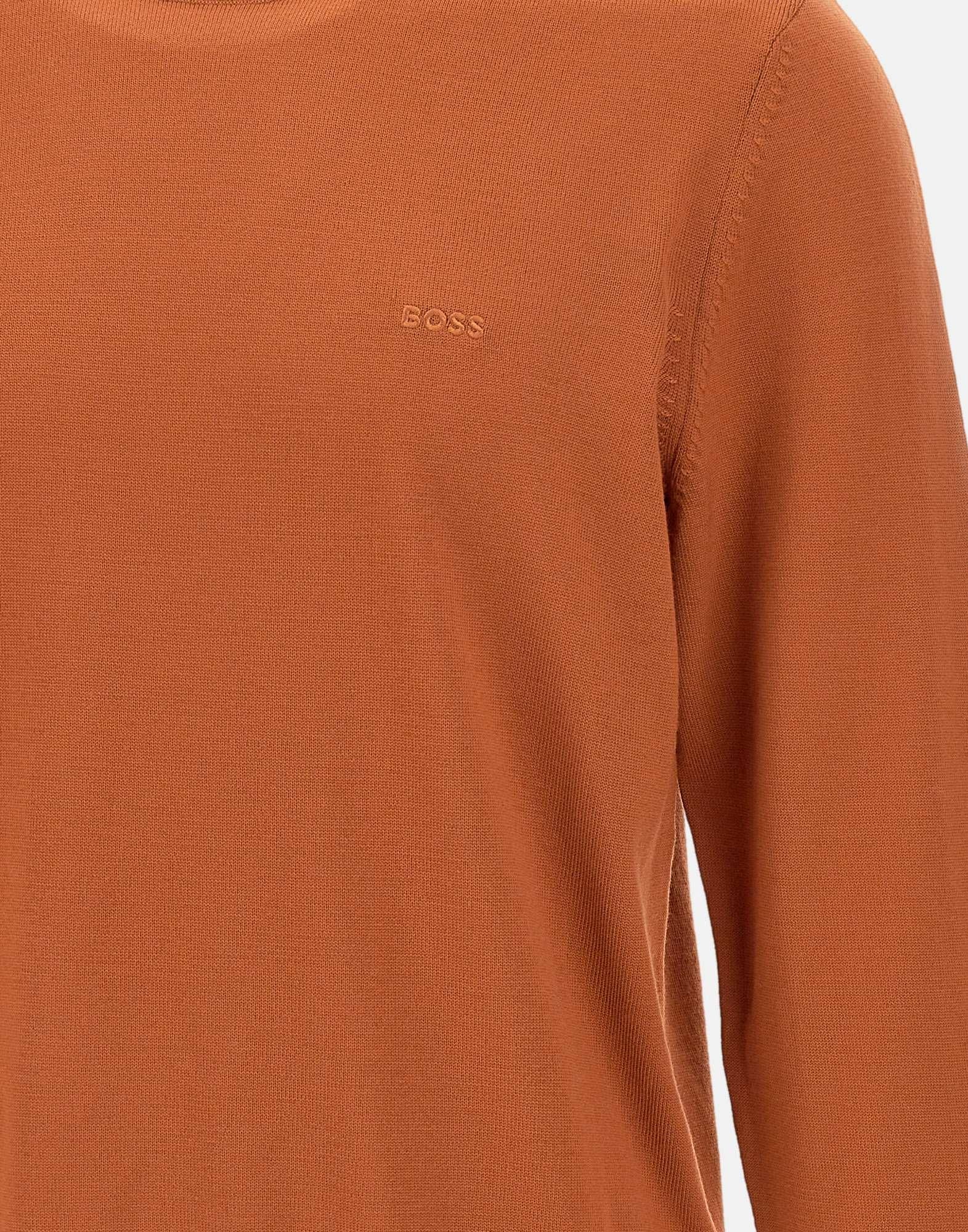 Maglia Boss "Botto L" da uomo in pura lana vergine, color mattone, unisce eleganza e comfort in un design essenziale. Caratterizzata da girocollo con righe iconiche multicolor all’interno, logo ricamato tono su tono sul petto e bordi a costine, è un capo ideale per la stagione autunnale e invernale. Morbida, calda e versatile, rappresenta la perfetta fusione tra stile contemporaneo e qualità premium. Regular fit.