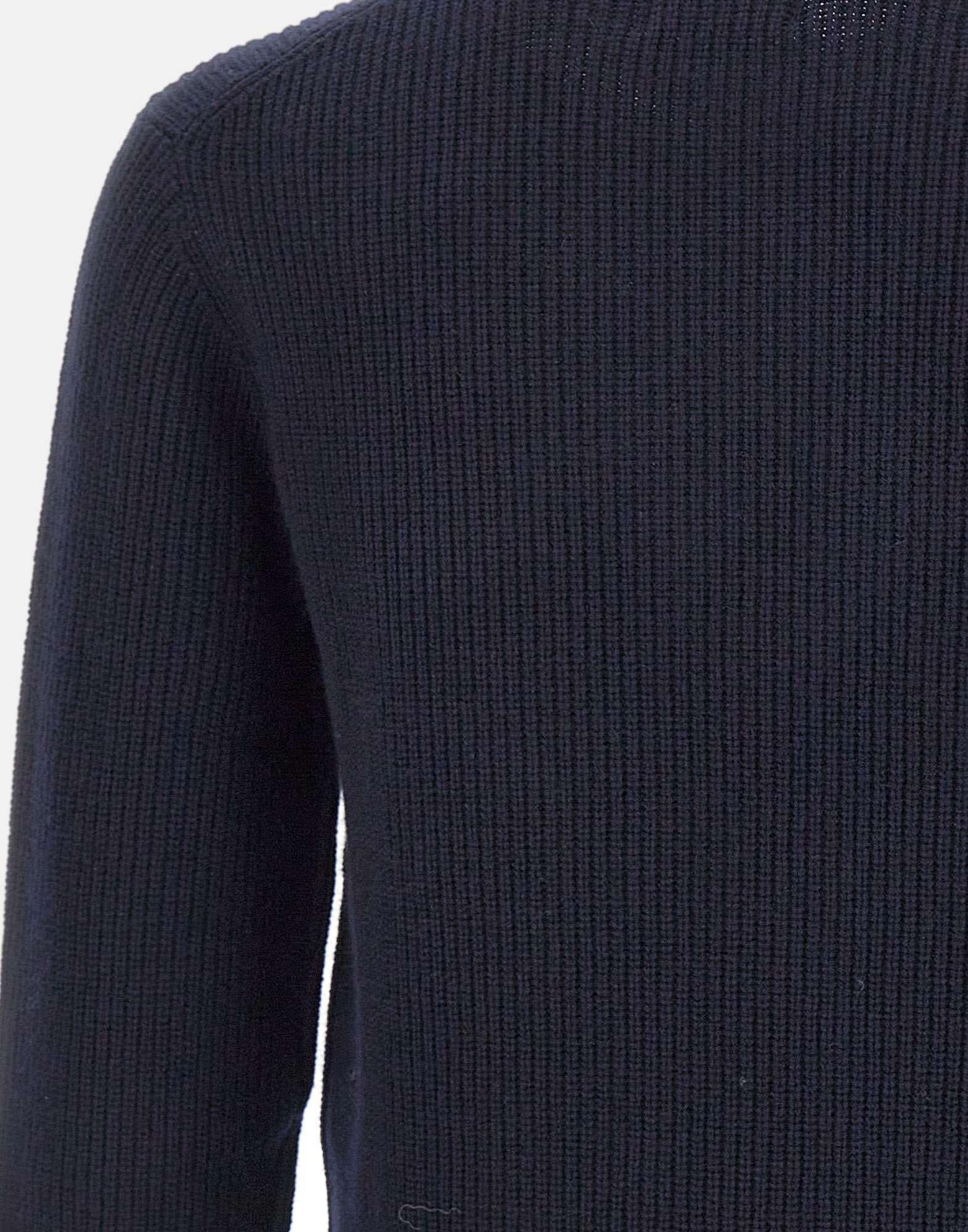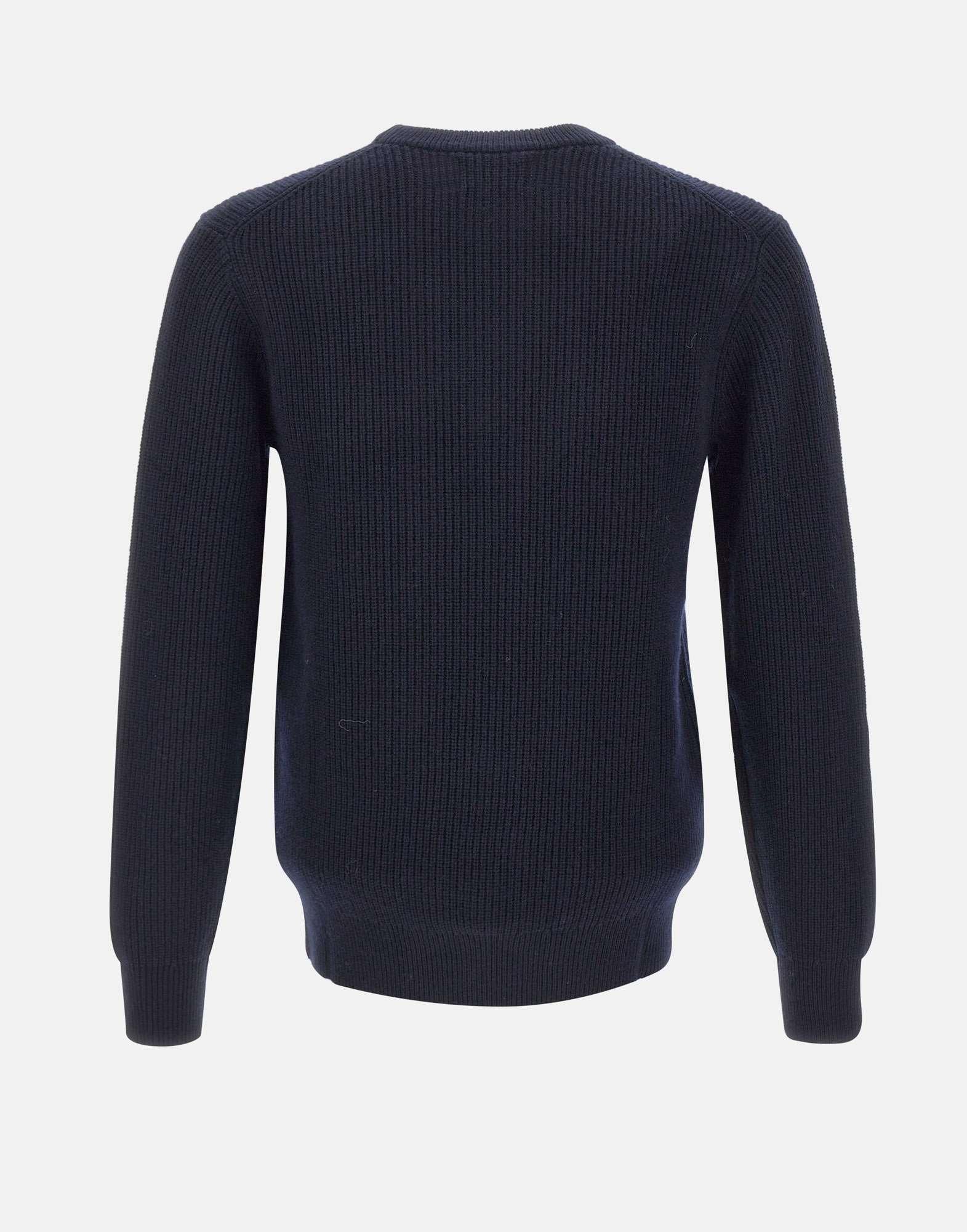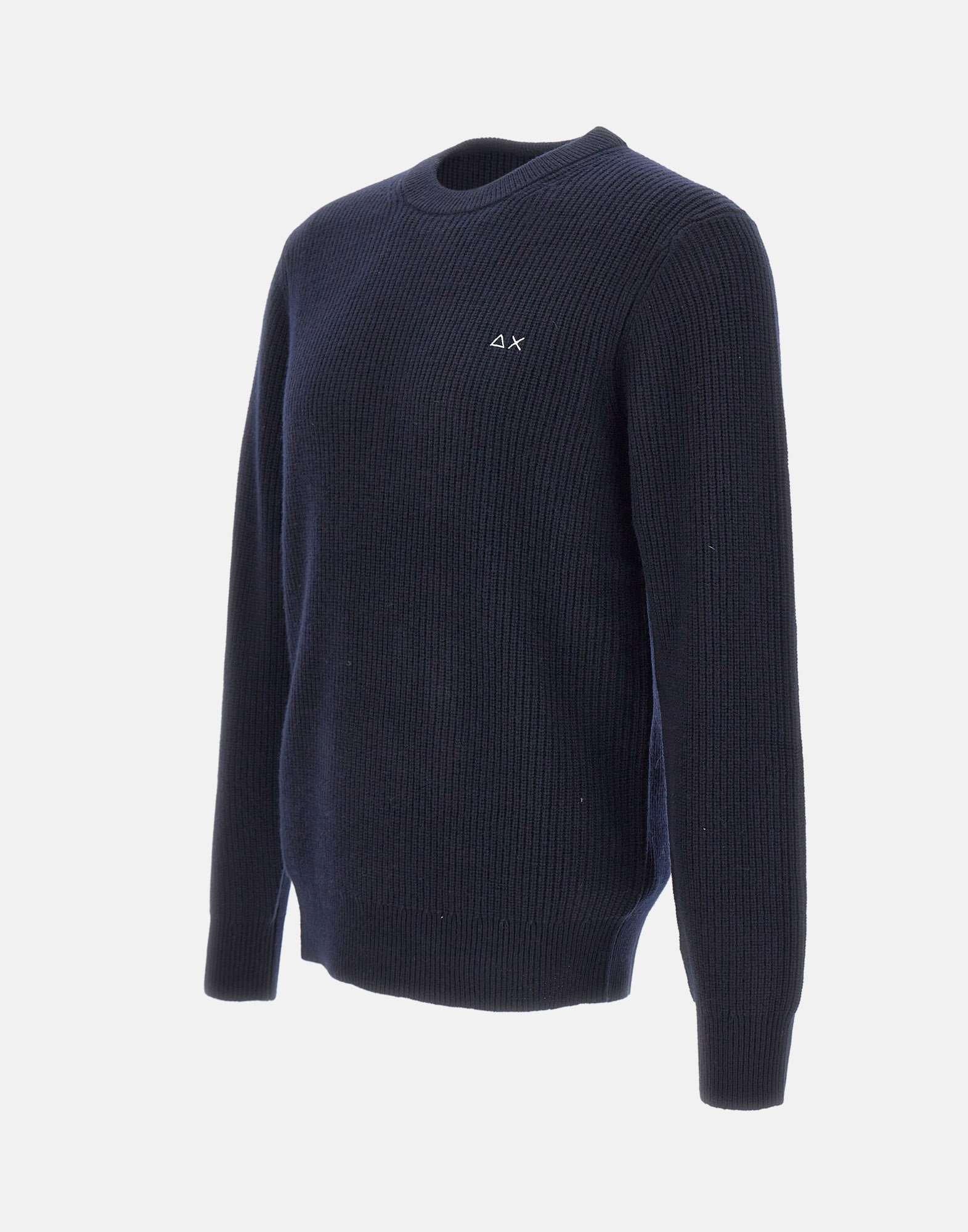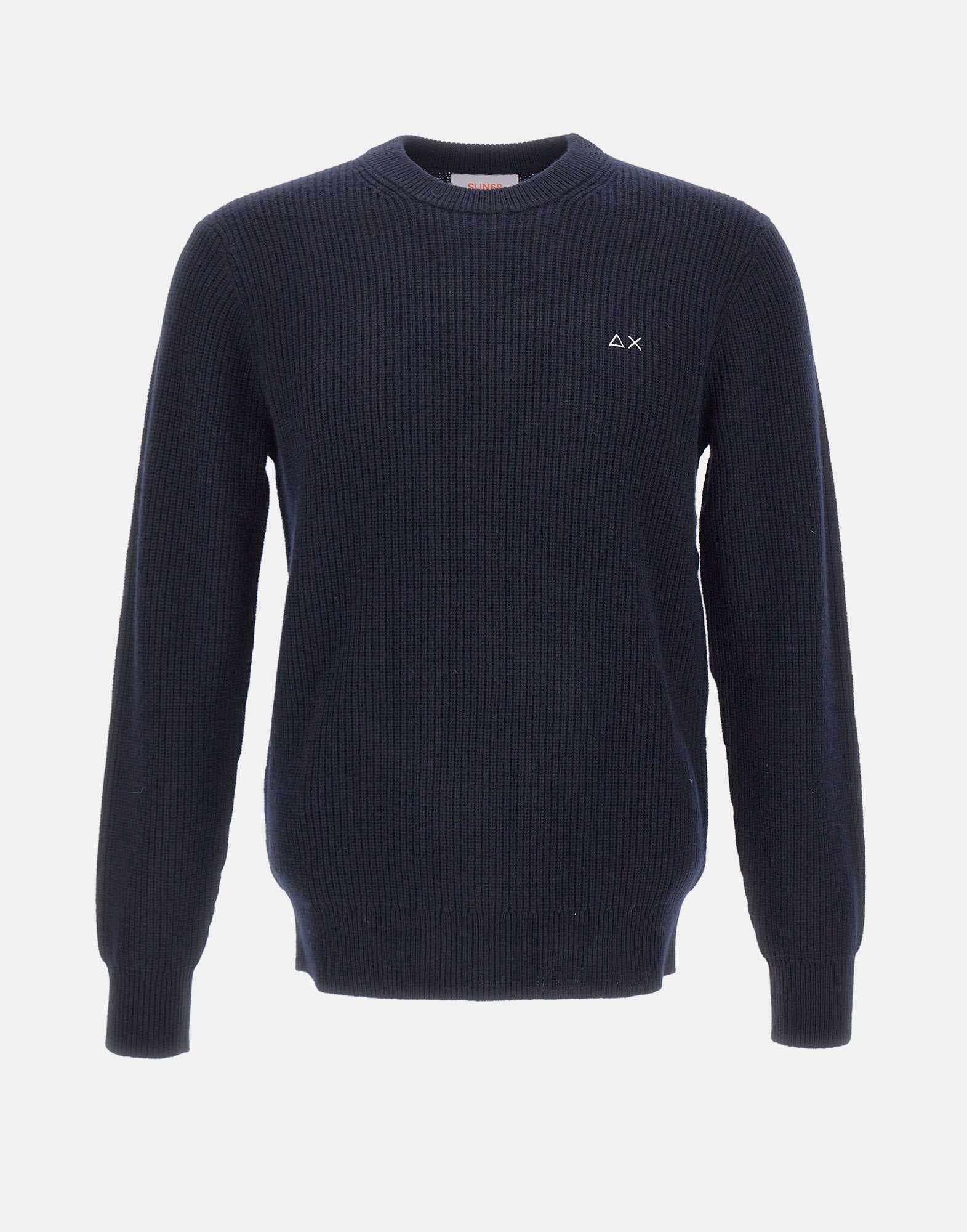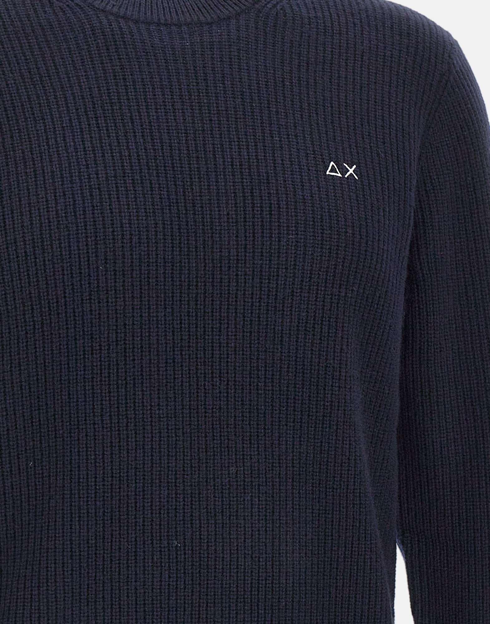Maglia uomo Sun68 "English" in filato di misto lana e cashmere color blu navy, morbida e calda al tatto. Caratterizzata da lavorazione a coste, presenta girocollo, maniche lunghe e logo ricamato sul petto per un tocco iconico del brand. La vestibilità regular fit garantisce comfort e uno stile casual raffinato.