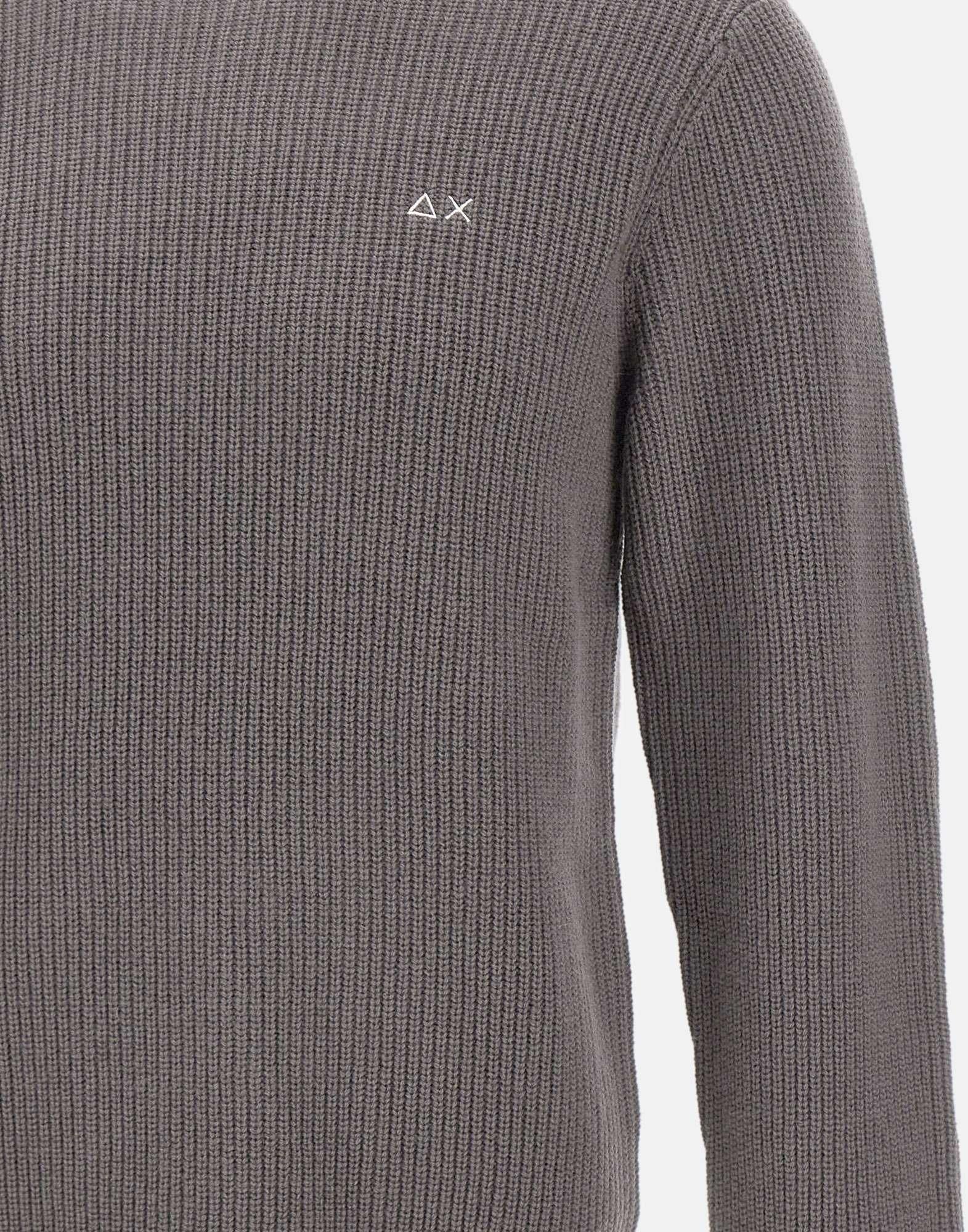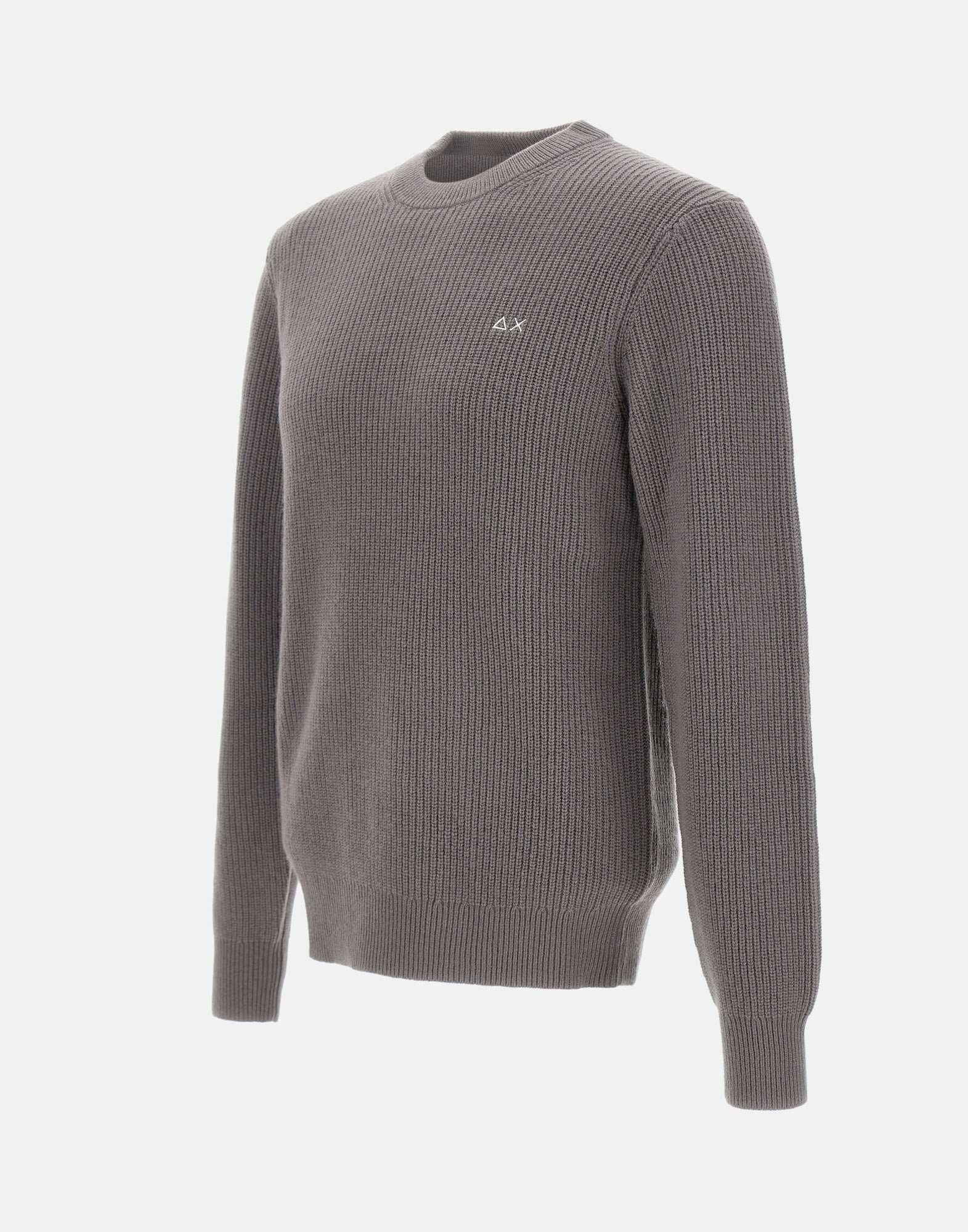 Maglia uomo Sun68 "English" in filato di misto lana e cashmere colore grigio, morbida e calda al tatto. Caratterizzata da lavorazione a coste, presenta girocollo, maniche lunghe e logo ricamato sul petto per un tocco iconico del brand. La vestibilità regular fit garantisce comfort e uno stile casual raffinato.