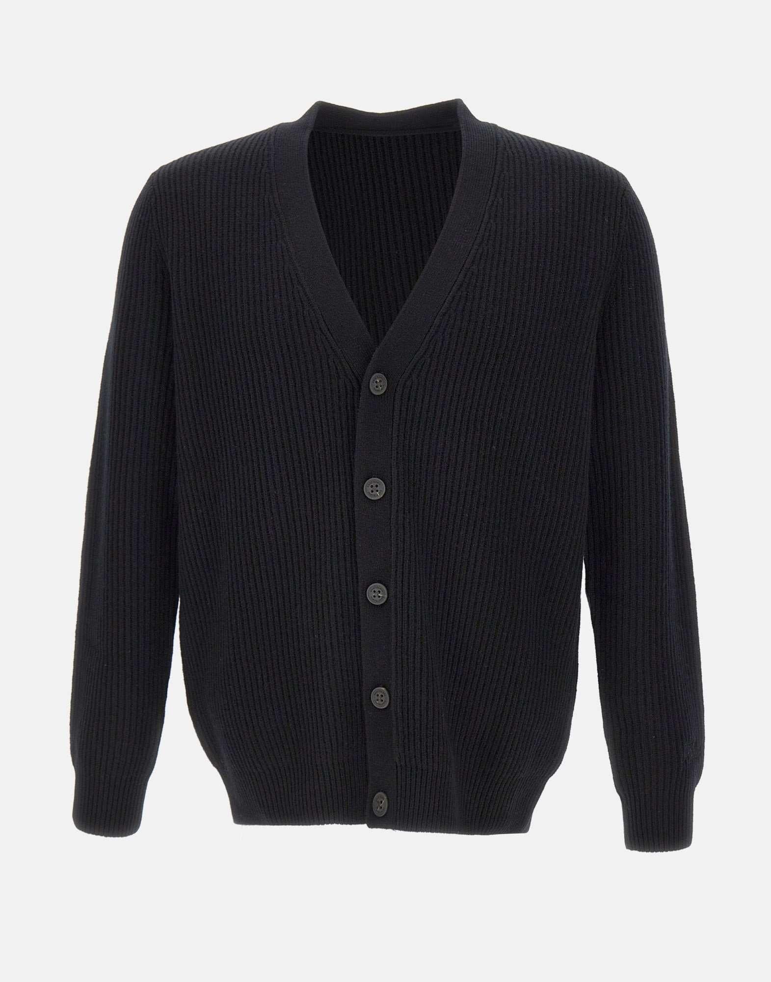 Mc2 Saint Barth "Herrison" cardigan nero realizzato in 100% lana con trama a coste verticali che dona struttura e morbidezza. Presenta maniche lunghe, scollo a V, chiusura con bottoni tono su tono e logo ricamato in tinta sul polso. Un capo essenziale dal fascino contemporaneo, perfetto per completare look casual o raffinati. Regular fit.
