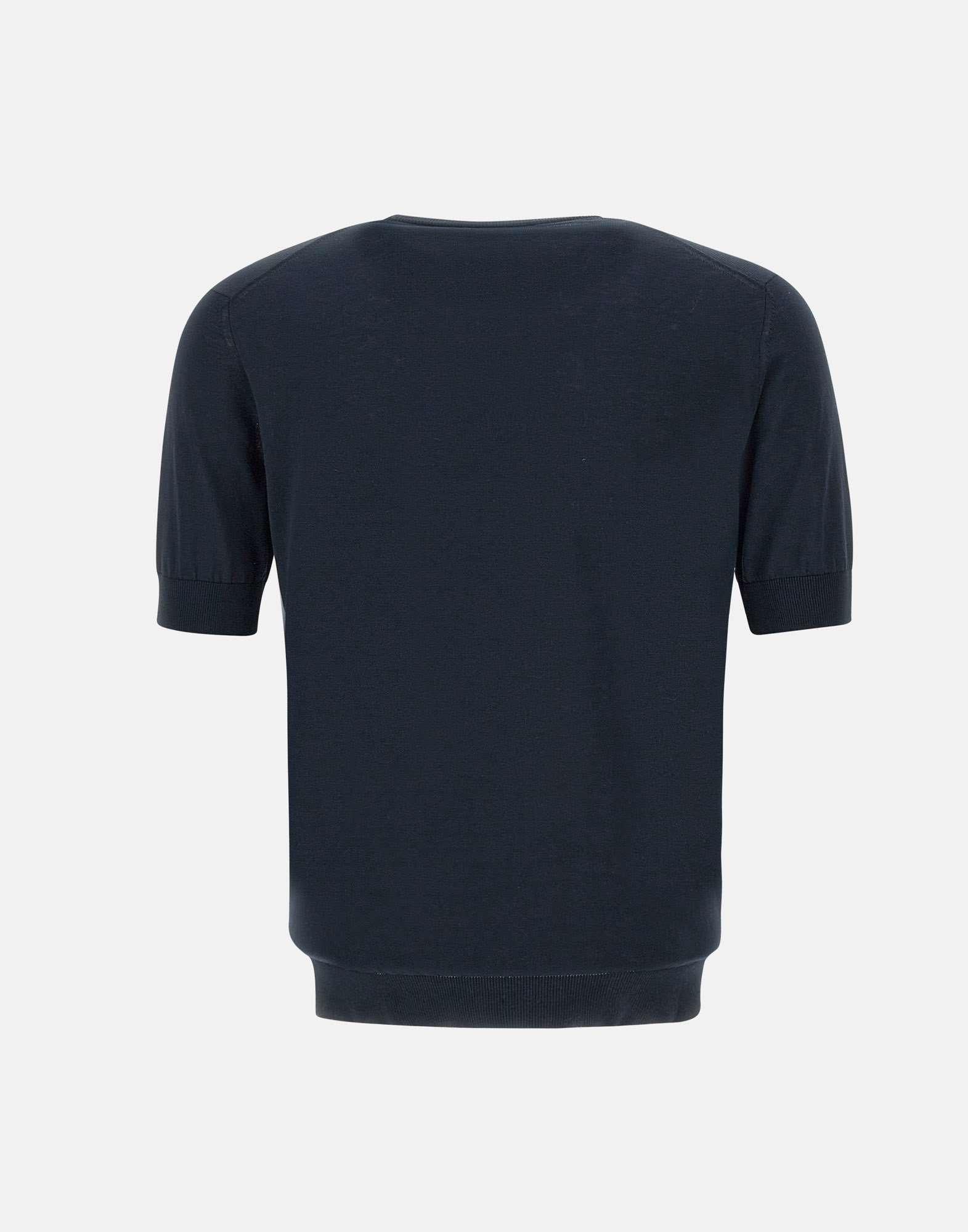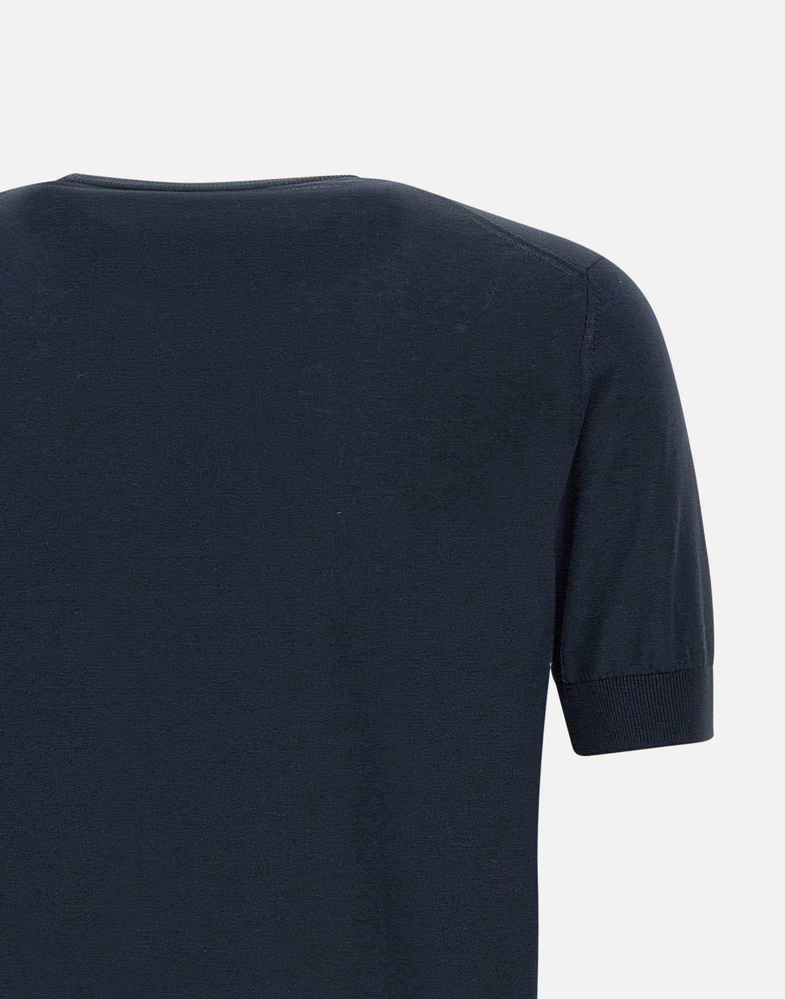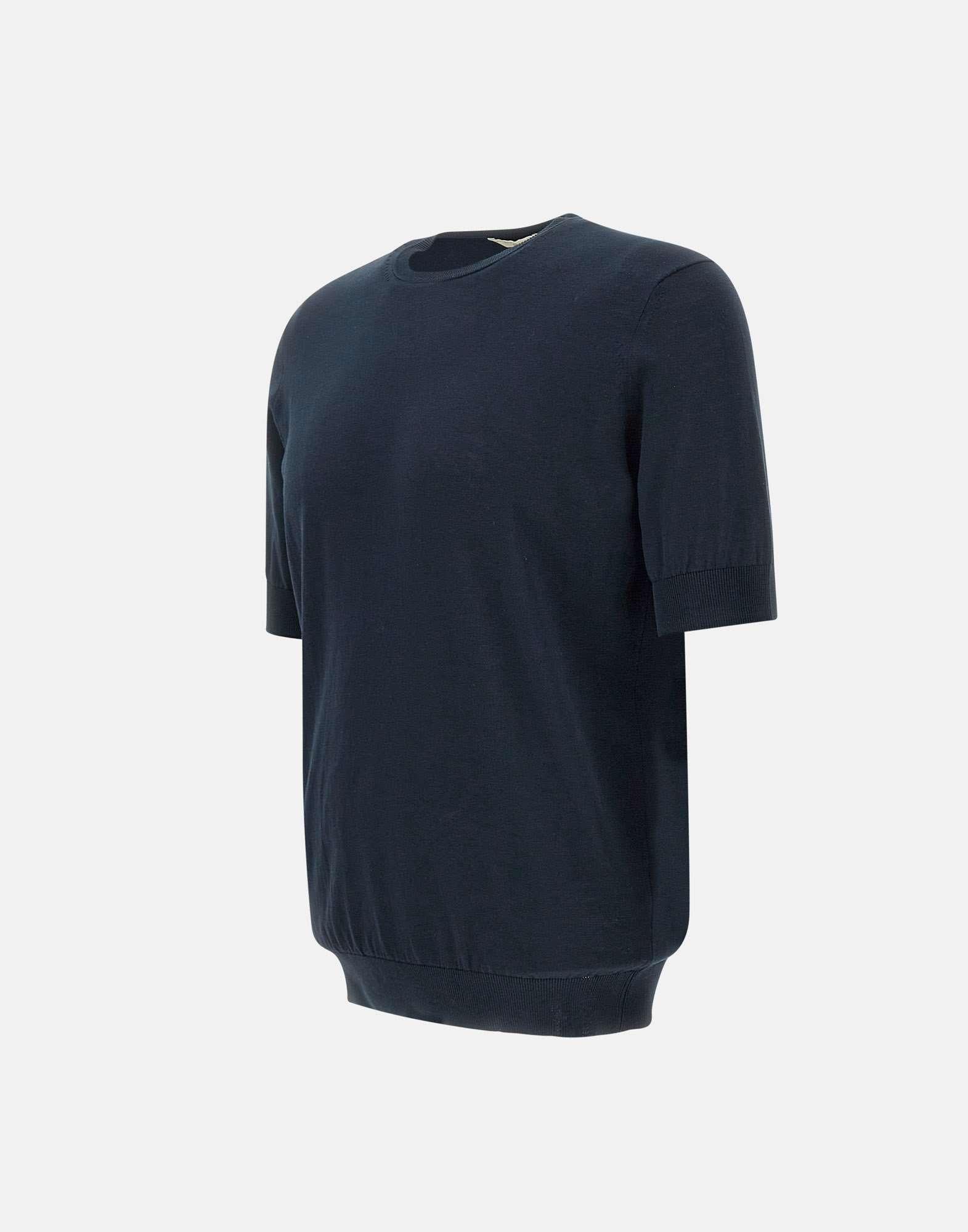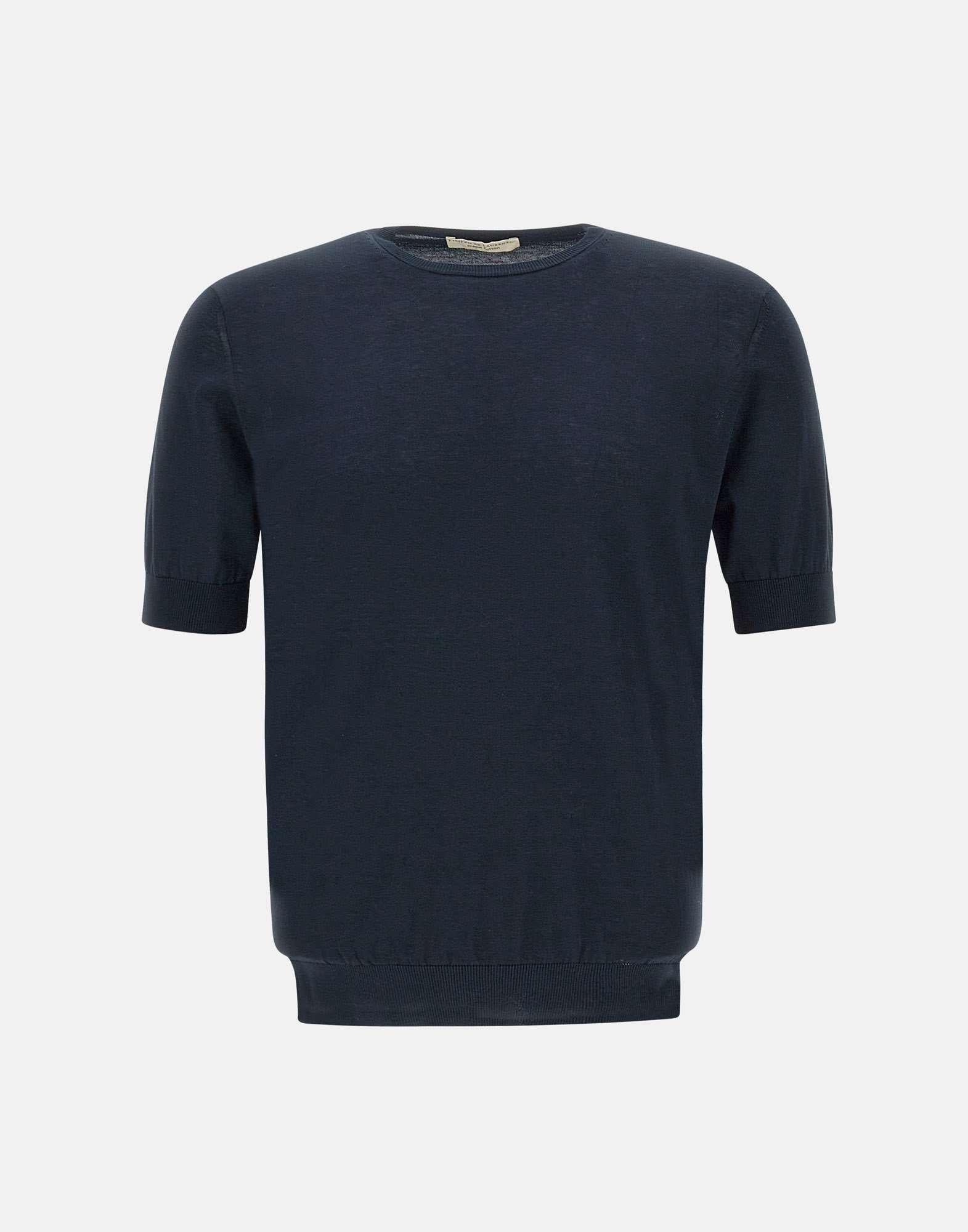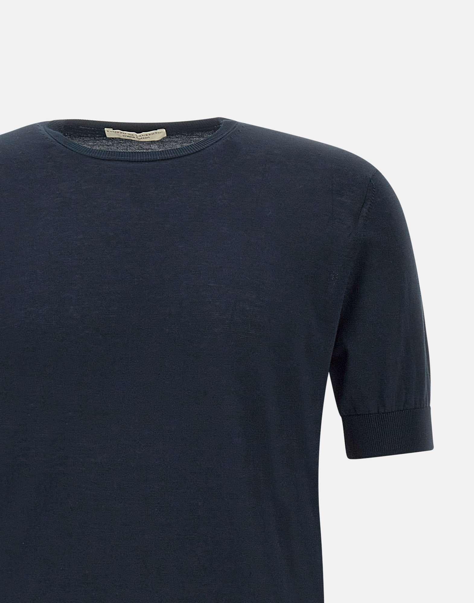 Maglia uomo Filippo De Laurentiis in crêpe di cotone, blu navy, maniche corte, girocollo, orli a costine, regular fit, filato leggero e fresco ideale per la stagione primaverile ed estiva. Made in Italy.